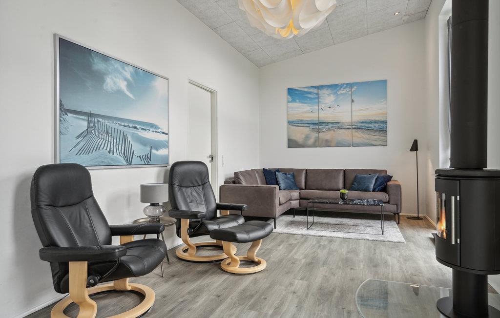 Machen Sie sich mit Ihren Lieben eine unvergessliche Zeit in diesem attraktiven Haus, das Sie in hervorragender Lage zwischen Fjord und Nordseestrand erwartet. Die hellen Räume bezaubern mit einer modernen, wohnlichen Einrichtung und Platz für gemeinsame Aktivitäten, so dass Sie sich hier gleich wohlfühlen werden. Ob gemeinsame Mahlzeiten am langen Esstisch mit schönem Blick ins Freie oder ausgelassenes Tischtennis-Turnier, hier kommt im Urlaub keine Langeweile auf. Sorgen Sie abends mit einem Feuer im Kaminofen für eine besonders behagliche Atmosphäre.