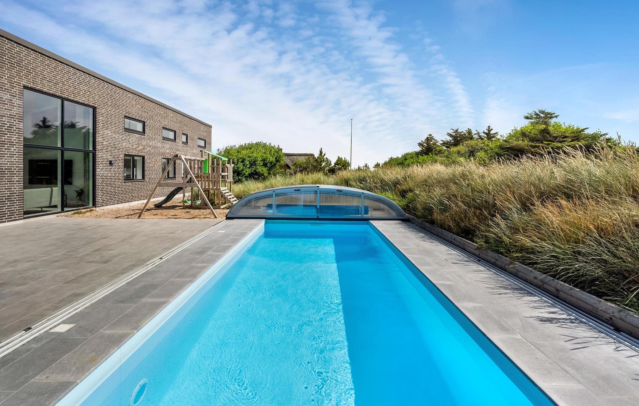 Großzügiges Ferienhaus in Søndervig mit Pool, Sauna und vielfältigen Freizeitmöglichkeiten für gesellige Gruppen.