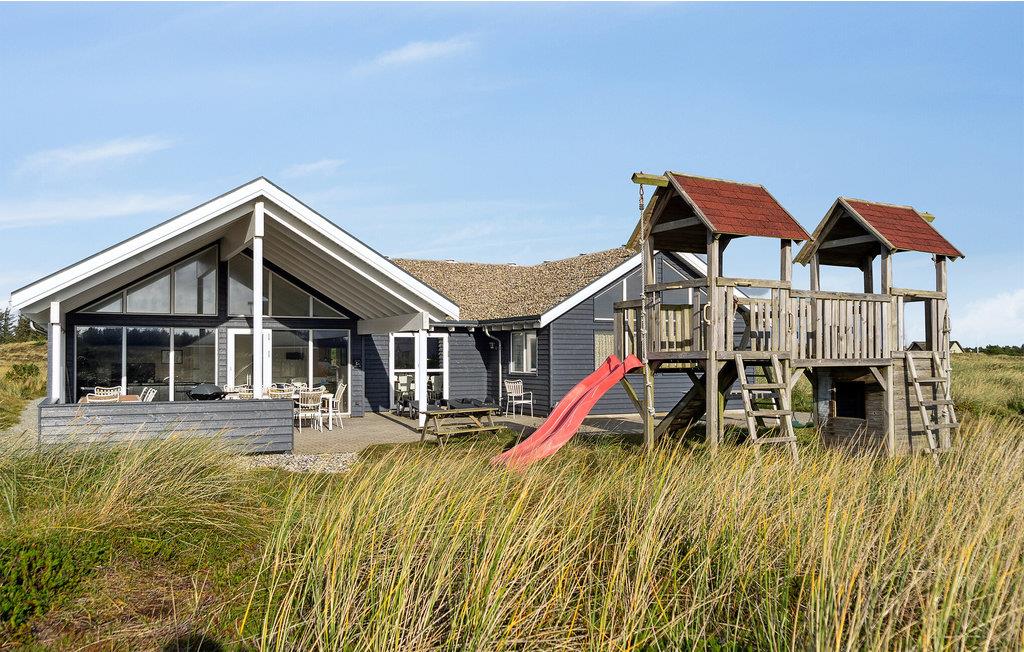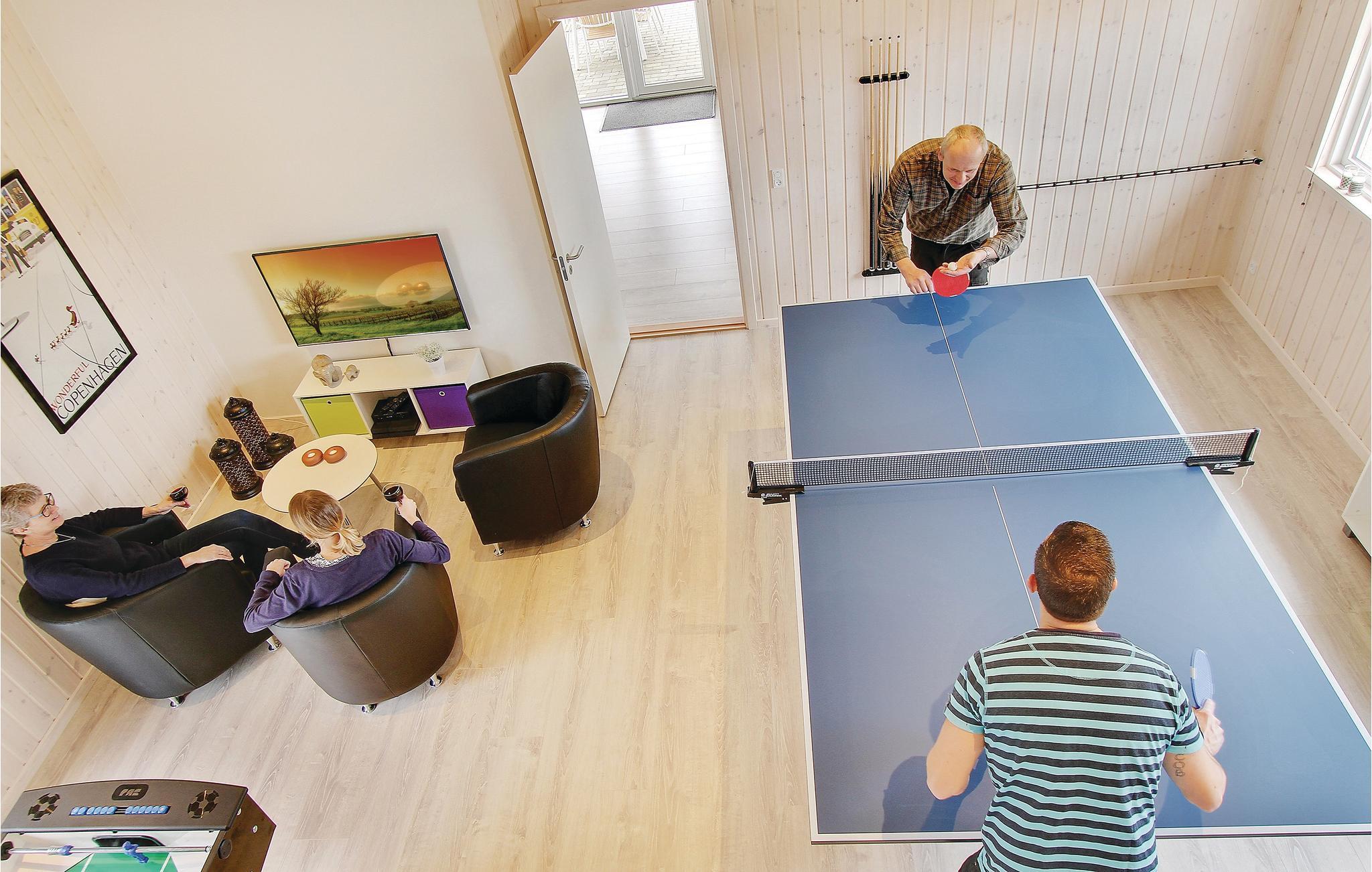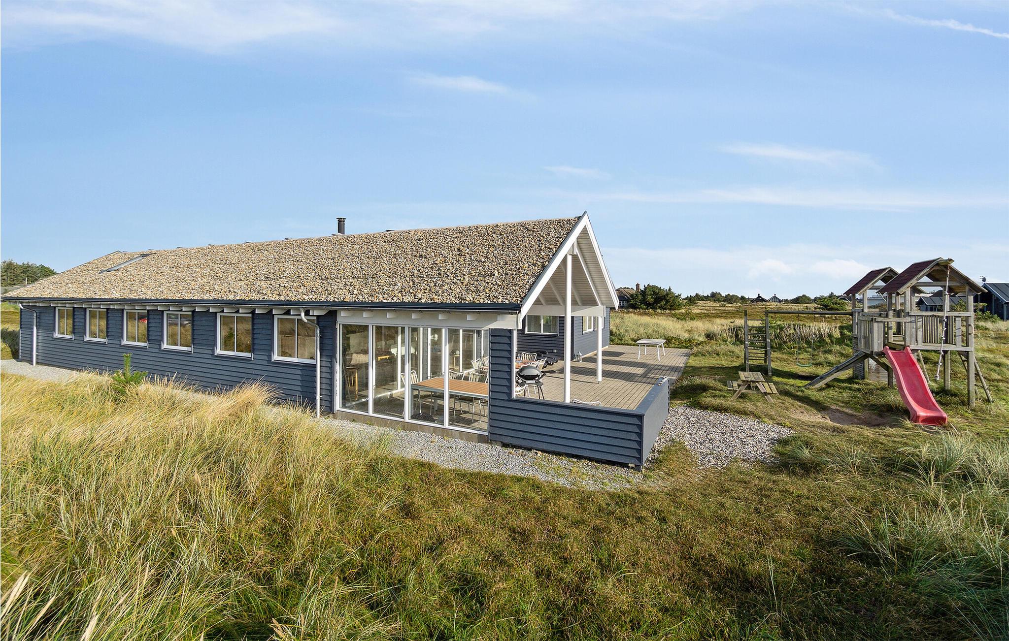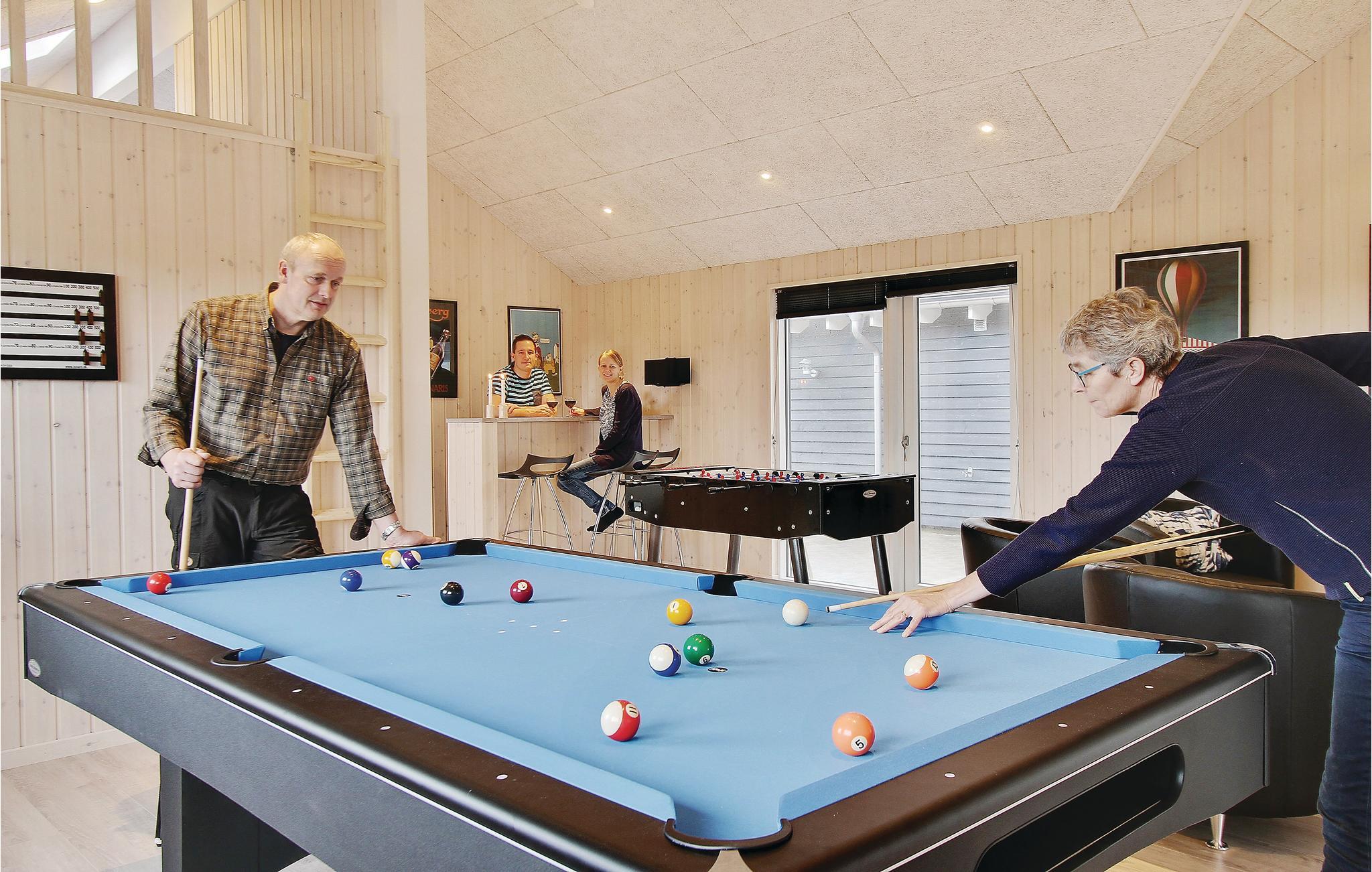 In der Nähe vom Badeort Søndervig, in dem es viele Angebote und einen herrlichen Strand gibt, erwartet Sie dieses prächtige Poolhaus. Im Inneren finden Sie jeden erdenklichen Komfort und viel Luxus. Und das Ferienhaus ist so groß, dass es auch sehr gut für einen gemeinsamen Urlaub von mehreren Familien geeignet ist. Die Schlafzimmer sind auf 2 Bereiche mit ihren eigenen Badezimmern verteilt. Es gibt auch 2 große Schlafböden mit Platz für 4 Personen. Die Decken sind schallisoliert, dies sorgt dafür, dass Sie sich behaglich im ganzen Haus verteilen können. Im imposanten Poolraum gibt es einen großen Swimmingpool mit Rutsche, einen Whirlpool für 4 und eine große Sauna. Im Spielzimmer finden Sie Billard, Tischtennis, Darts, Tischfußball, PS3 und eine Wii. In der Küche sind 2 Herde und 2 Geschirrspüler sowie 2 Kühl- und Gefrierelemente. Hier können also mehrere Köche Urlaubsgerichte zubereiten. Auch eine Bar für kühle Drinks gibt es. Eine teilweise überdachte Terrasse zum Genießen des dänischen Sommerwetters sowie Schaukel und Sandkasten sind ebenfalls vorhanden.