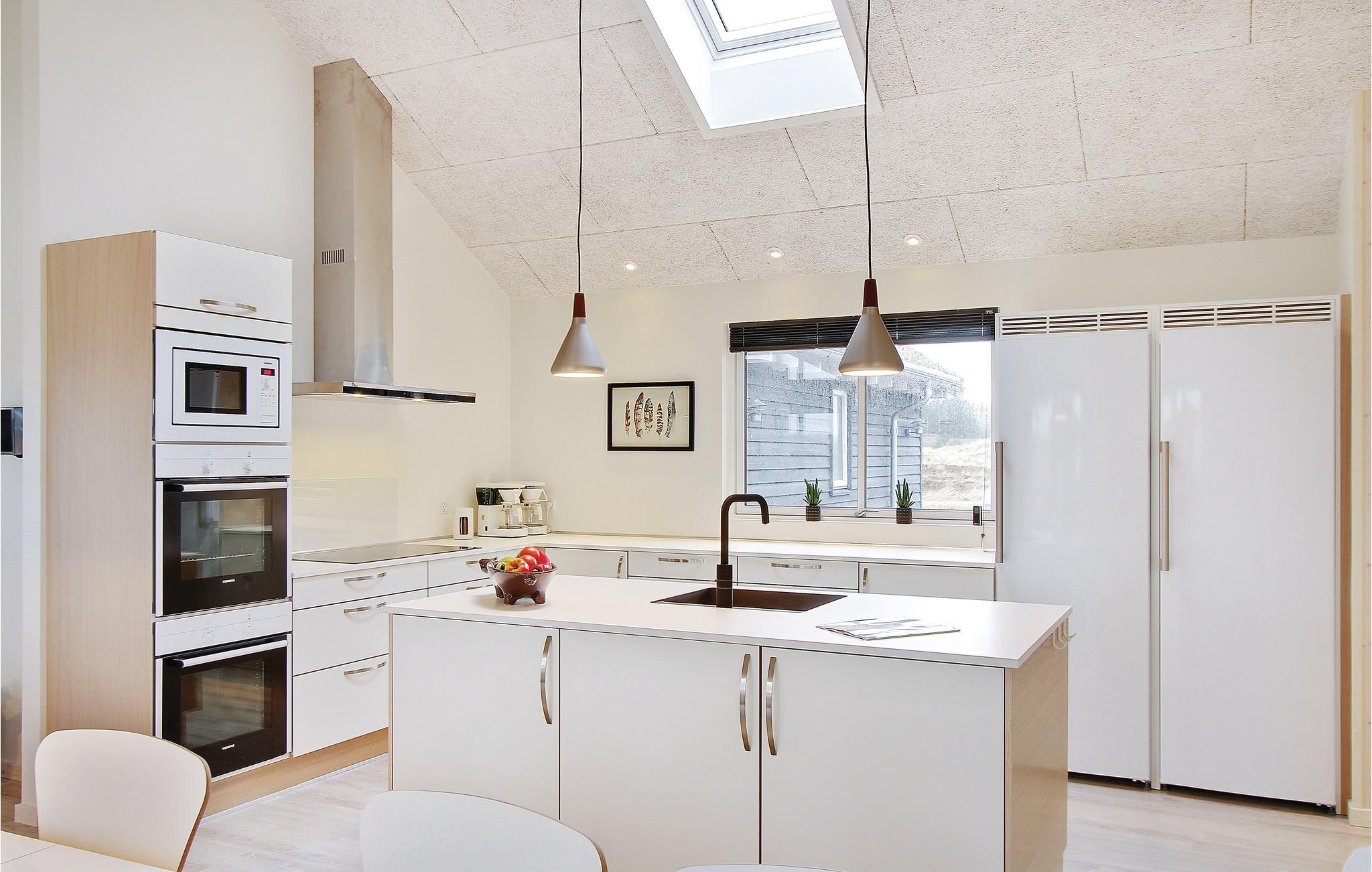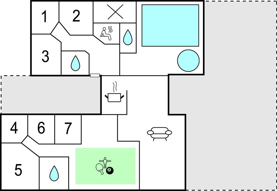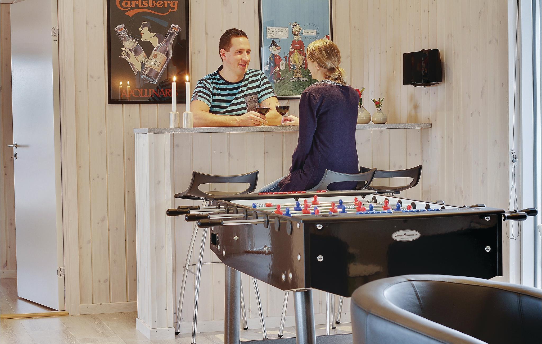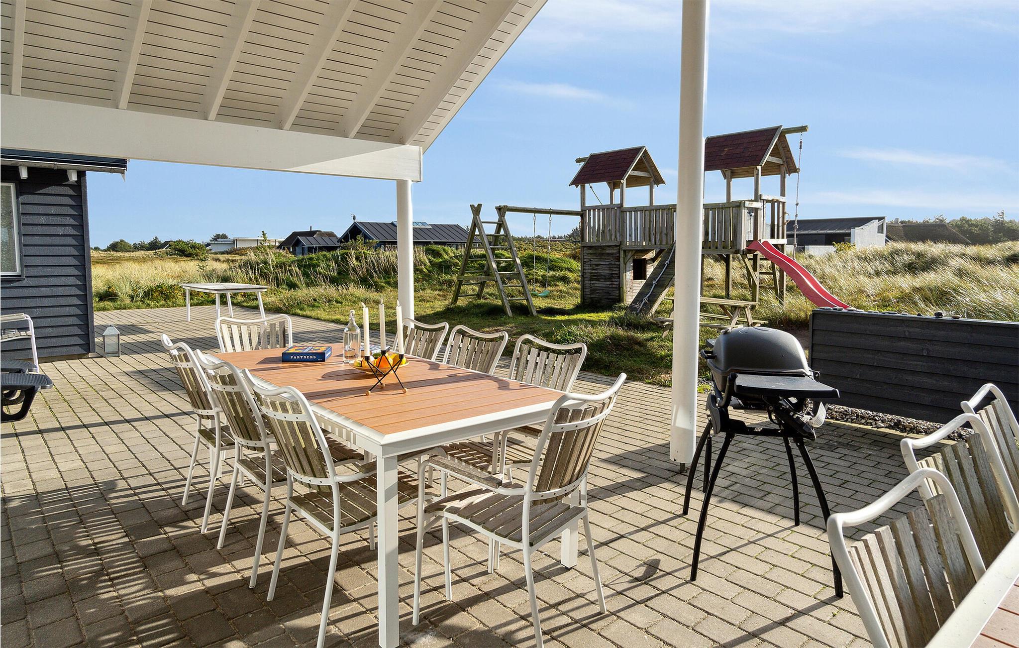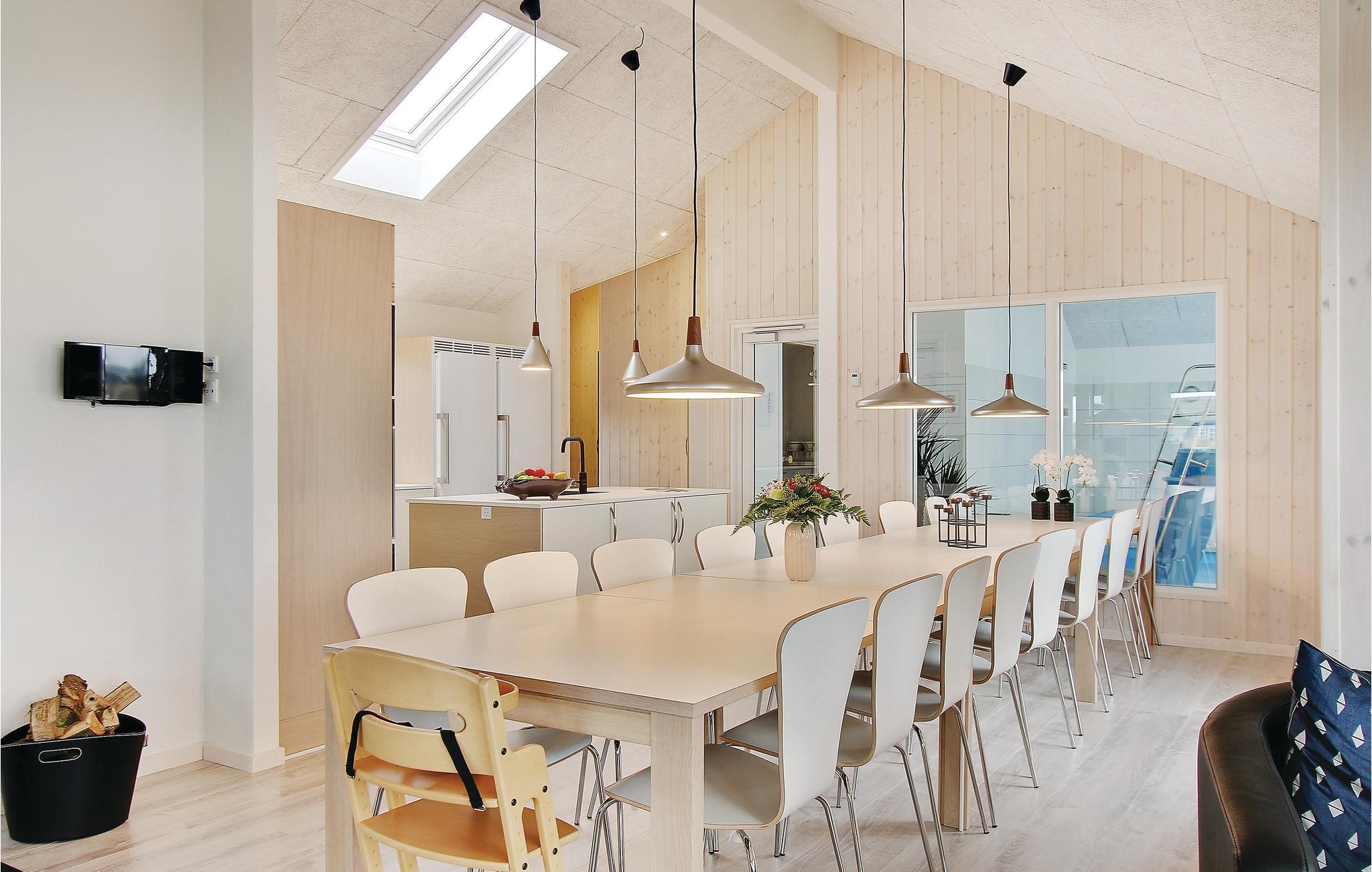 In der Nähe vom Badeort Søndervig, in dem es viele Angebote und einen herrlichen Strand gibt, erwartet Sie dieses prächtige Poolhaus. Im Inneren finden Sie jeden erdenklichen Komfort und viel Luxus. Und das Ferienhaus ist so groß, dass es auch sehr gut für einen gemeinsamen Urlaub von mehreren Familien geeignet ist. Die Schlafzimmer sind auf 2 Bereiche mit ihren eigenen Badezimmern verteilt. Es gibt auch 2 große Schlafböden mit Platz für 4 Personen. Die Decken sind schallisoliert, dies sorgt dafür, dass Sie sich behaglich im ganzen Haus verteilen können. Im imposanten Poolraum gibt es einen großen Swimmingpool mit Rutsche, einen Whirlpool für 4 und eine große Sauna. Im Spielzimmer finden Sie Billard, Tischtennis, Darts, Tischfußball, PS3 und eine Wii. In der Küche sind 2 Herde und 2 Geschirrspüler sowie 2 Kühl- und Gefrierelemente. Hier können also mehrere Köche Urlaubsgerichte zubereiten. Auch eine Bar für kühle Drinks gibt es. Eine teilweise überdachte Terrasse zum Genießen des dänischen Sommerwetters sowie Schaukel und Sandkasten sind ebenfalls vorhanden.