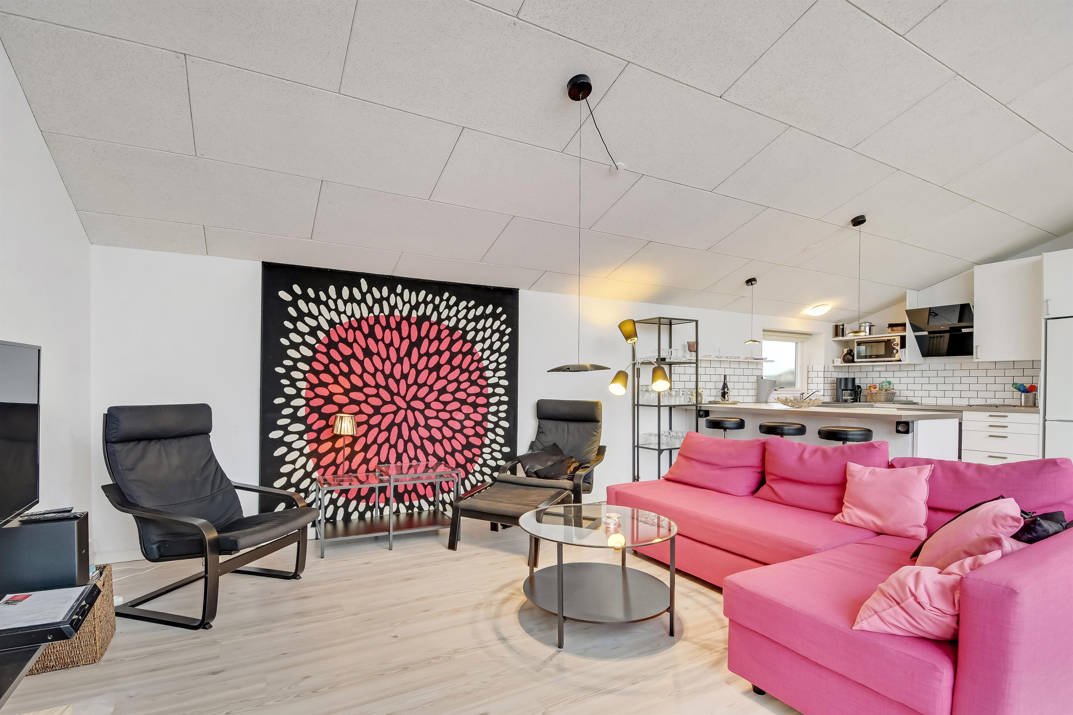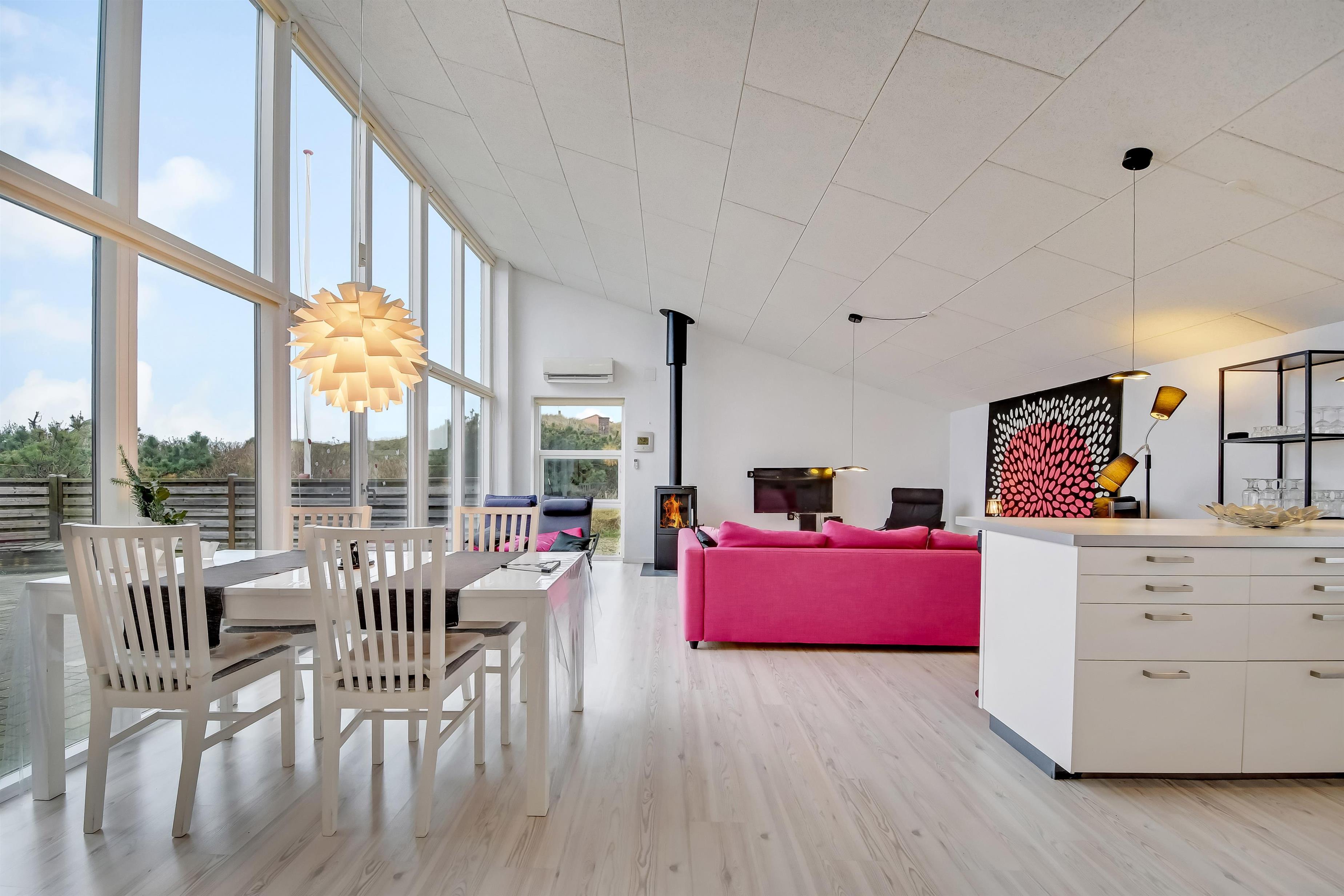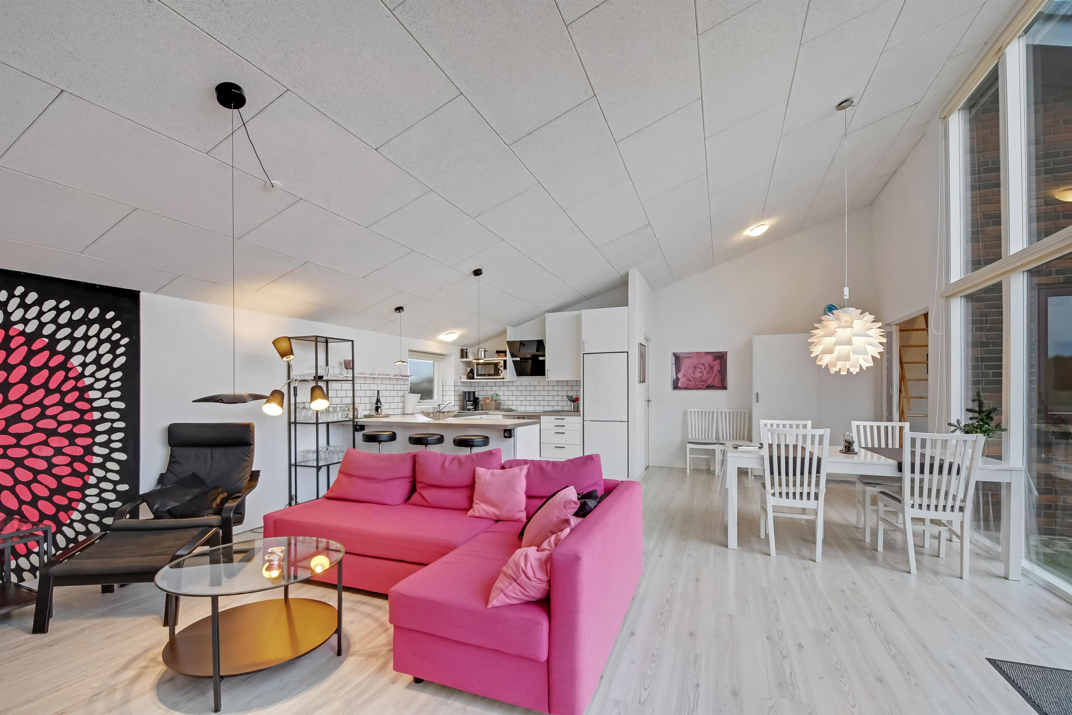 Bunt, jung, modern und lichtdurchflutet – so präsentiert sich dieses schöne Ferienhaus mit einem extra Arbeitsplatz und einem Schlafboden (auf dänisch Hems genannt), den eure Kinder lieben werden. Hier wohnt ihr auf einem gut 1.500 qm großen Grundstück, mit einer Wohnfläche von 120 qm ganz in der Nähe vom quirligen Urlaubsort Søndervig, mit seinem schönen Strand und den vielen Möglichkeiten aktiv zu sein.