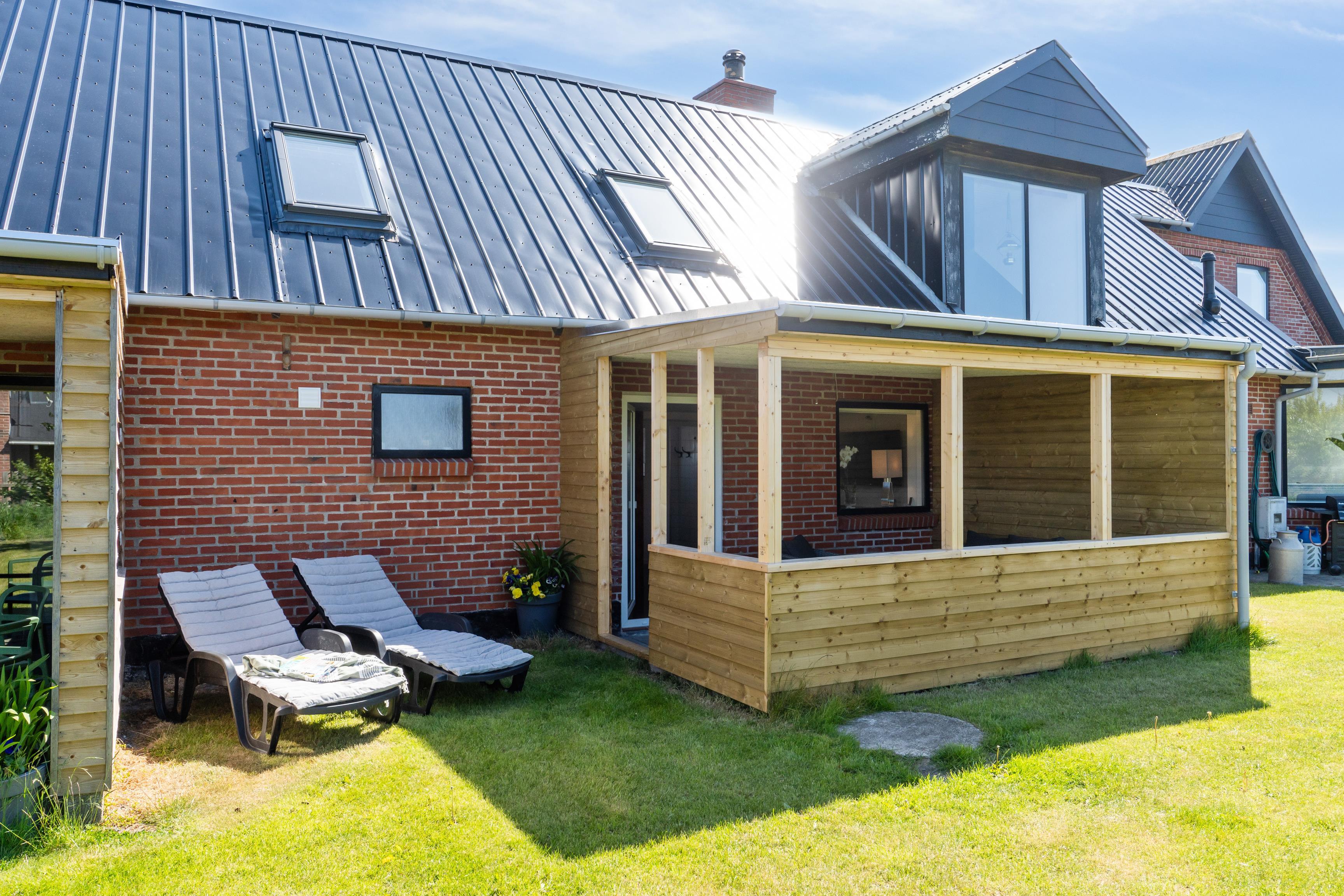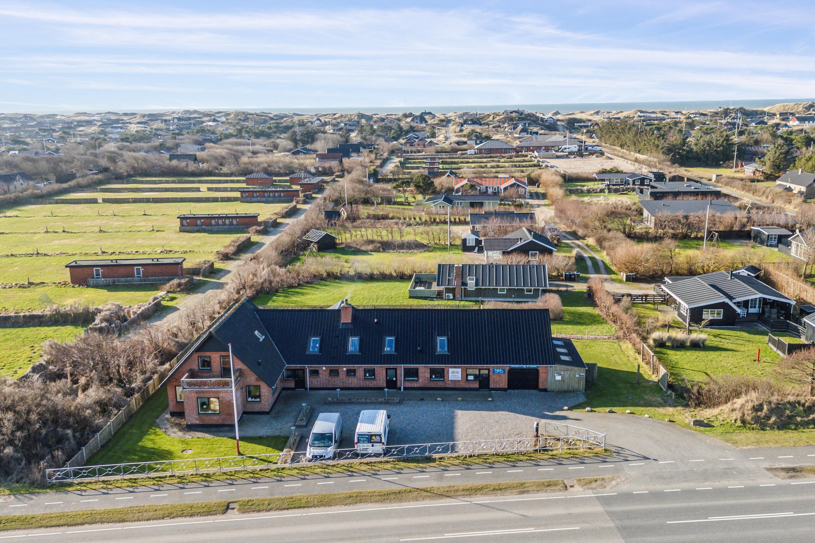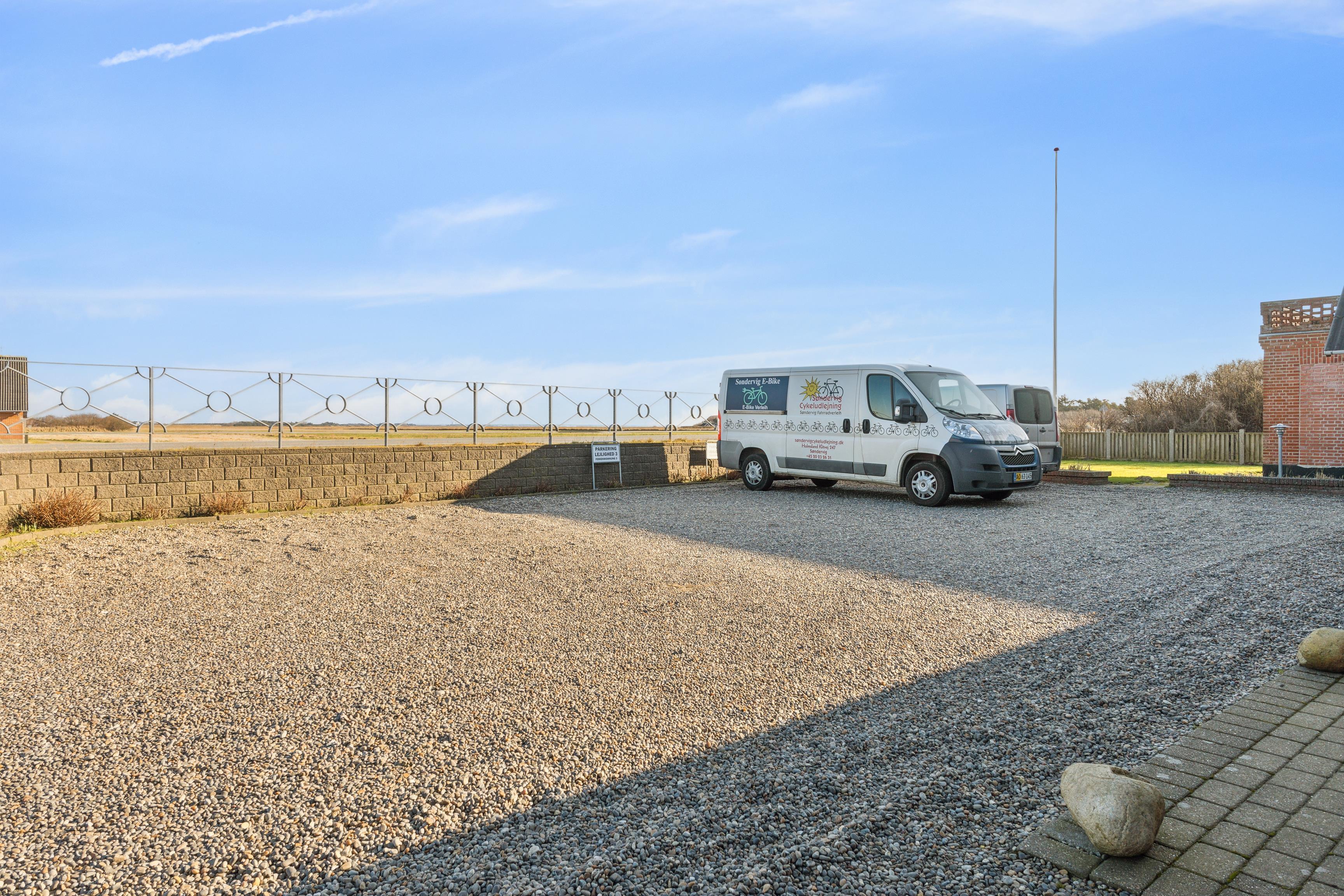 Vor dem Gebäude gibt es einen gemeinsamen Parkplatz mit ausreichend Platz für Ihr Auto und einer schönen Aussicht auf die offene Landschaft in Richtung Ringkøbing Fjord. Hinter dem Gebäude befinden sich privatere Außenbereiche mit zwei nach Westen ausgerichteten, durch Zäune geschützten Terrassen. Zusätzlich gibt es eine große Rasenfläche, die sich hervorragend zum Spielen, für Ballspiele oder einfach zum Entspannen eignet.