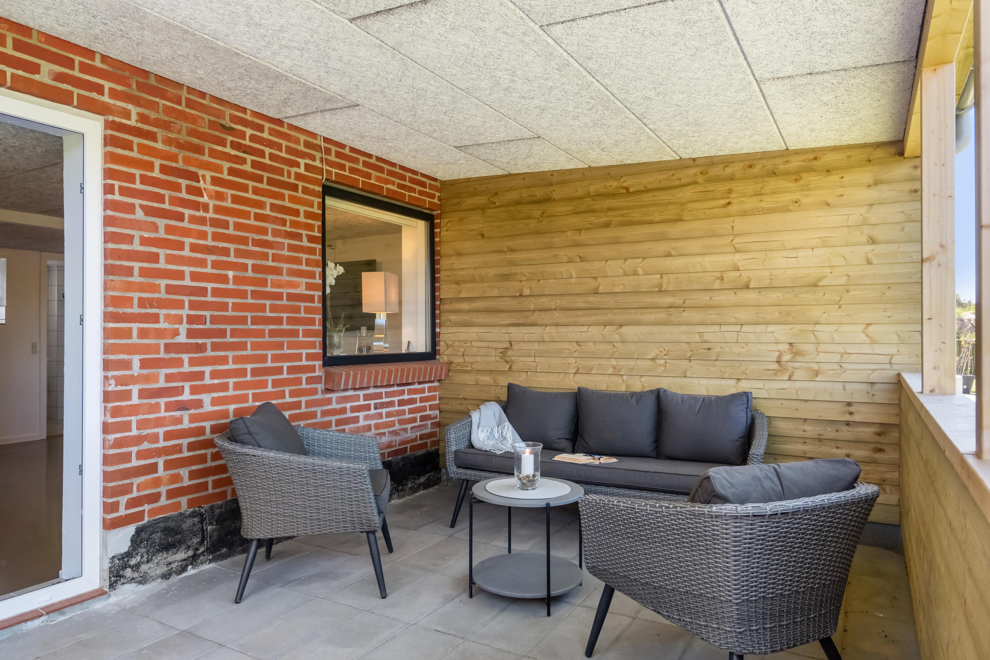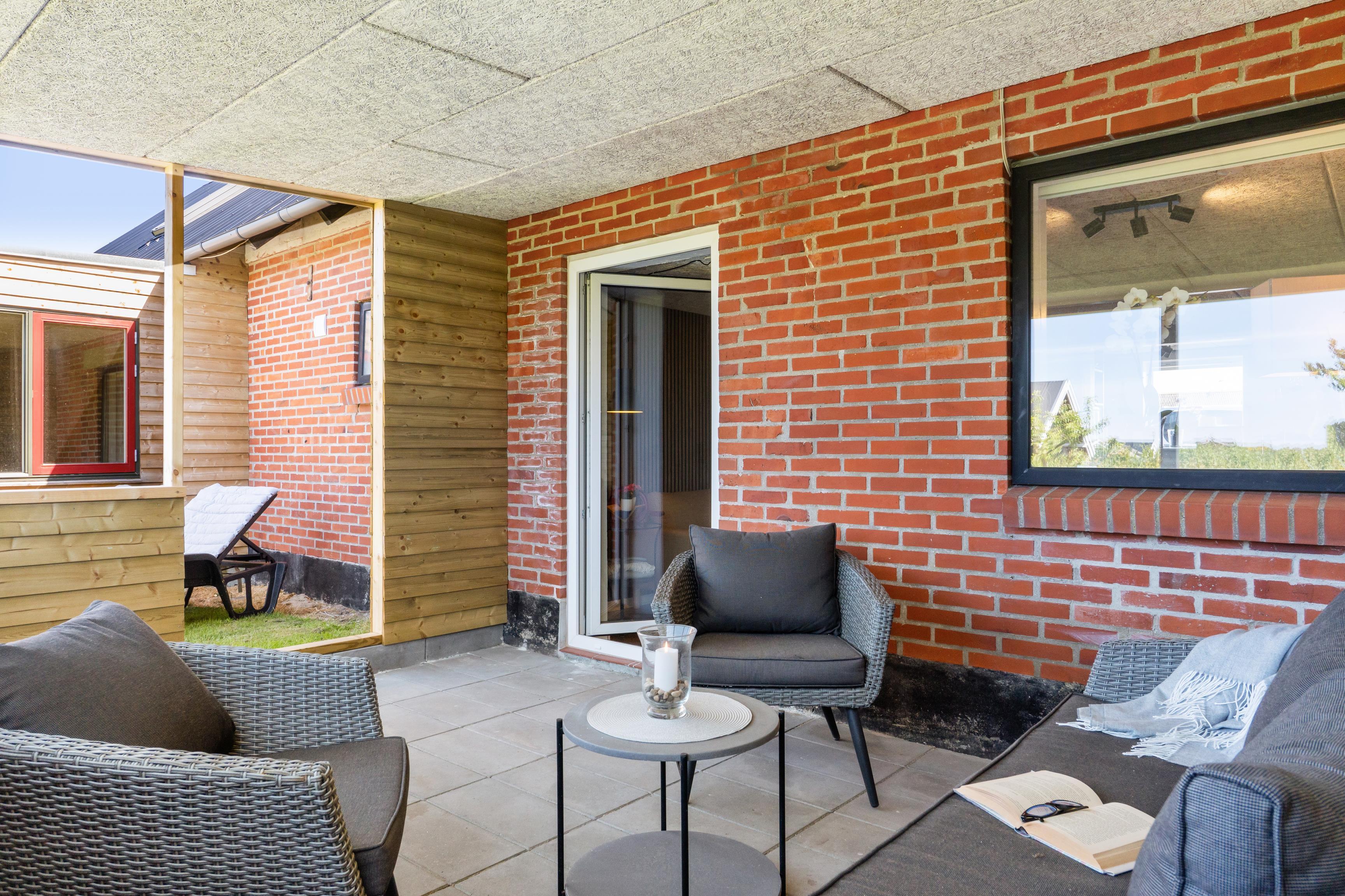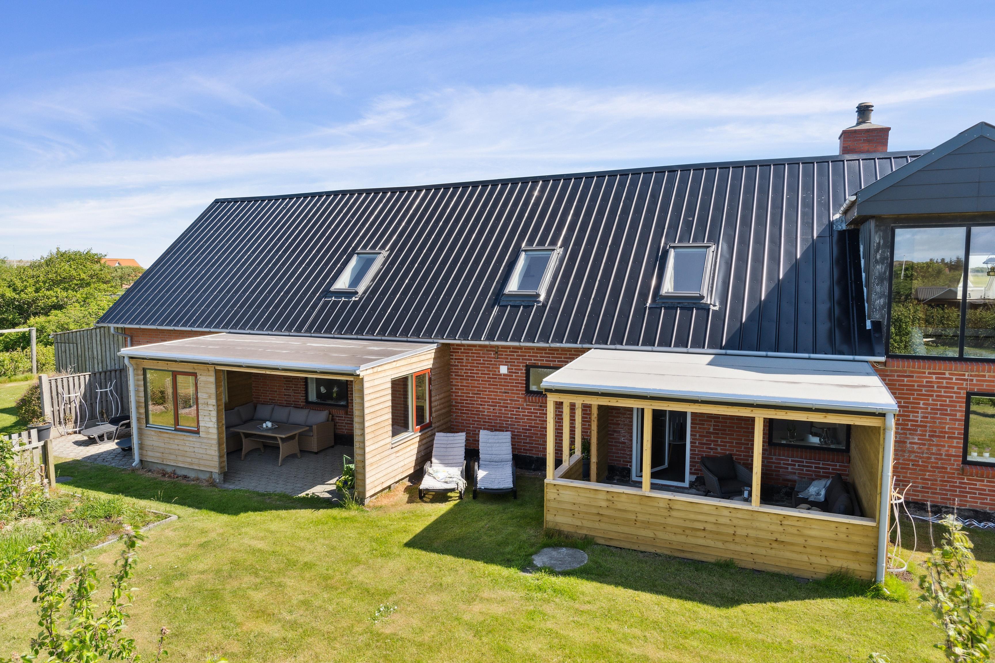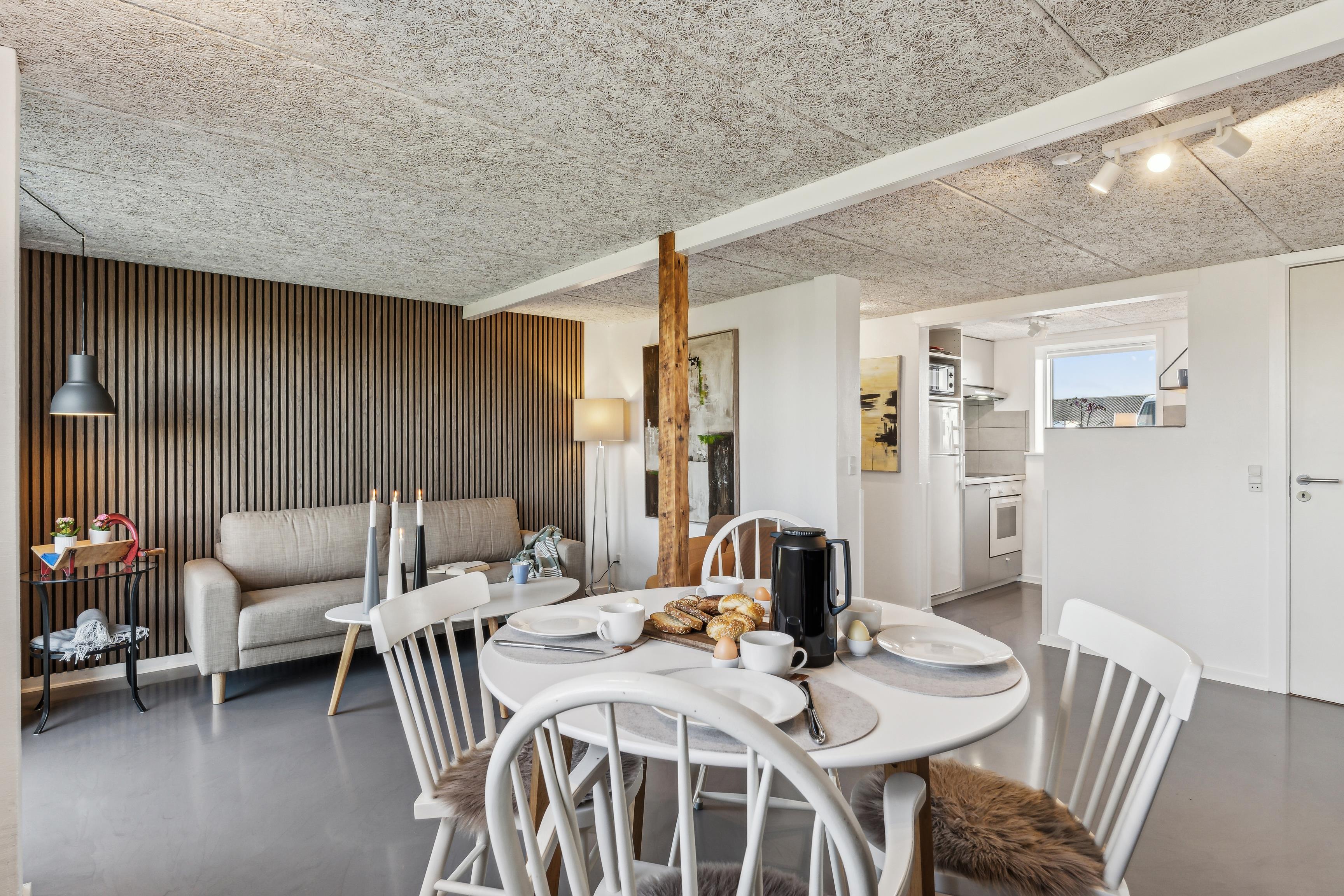 Vor dem Gebäude gibt es einen gemeinsamen Parkplatz mit ausreichend Platz für Ihr Auto und einer schönen Aussicht auf die offene Landschaft in Richtung Ringkøbing Fjord. Hinter dem Gebäude befinden sich privatere Außenbereiche mit zwei nach Westen ausgerichteten, durch Zäune geschützten Terrassen. Zusätzlich gibt es eine große Rasenfläche, die sich hervorragend zum Spielen, für Ballspiele oder einfach zum Entspannen eignet.