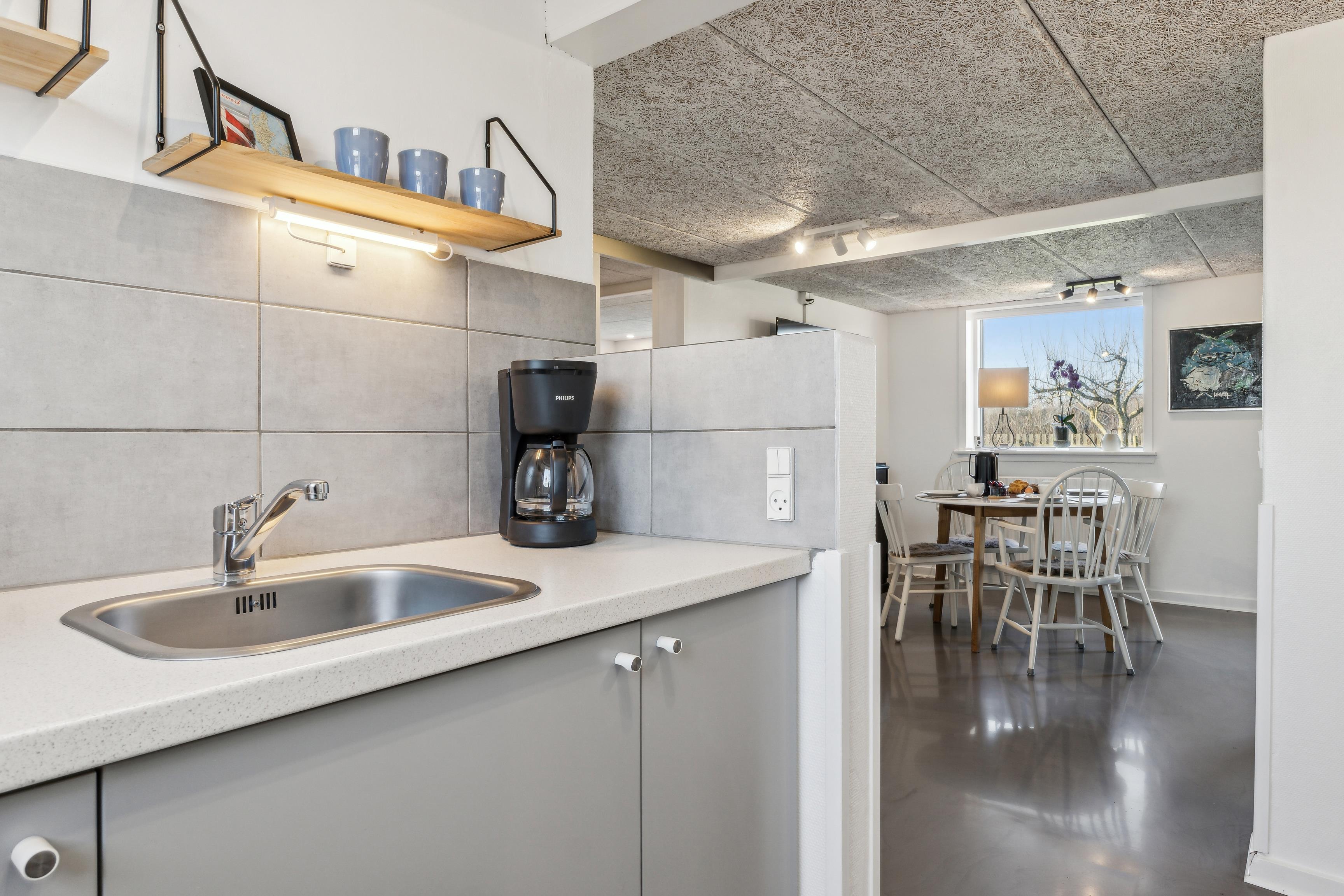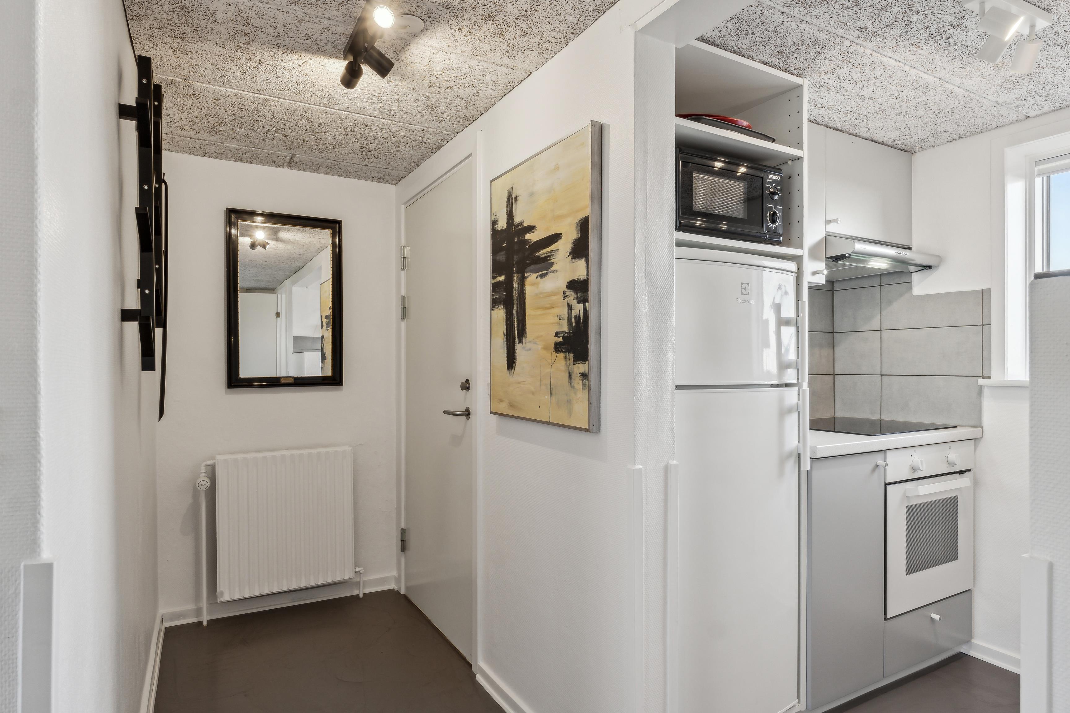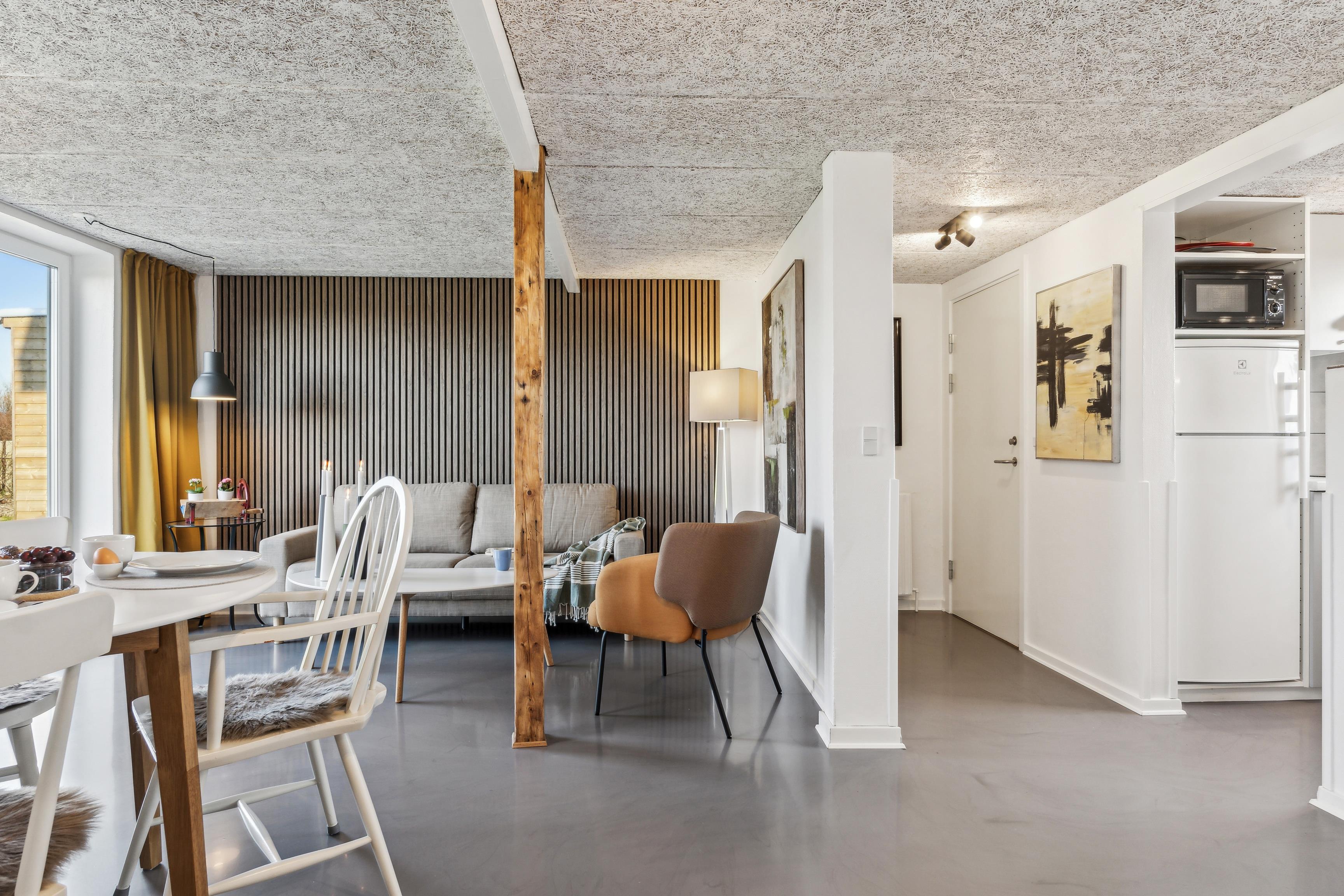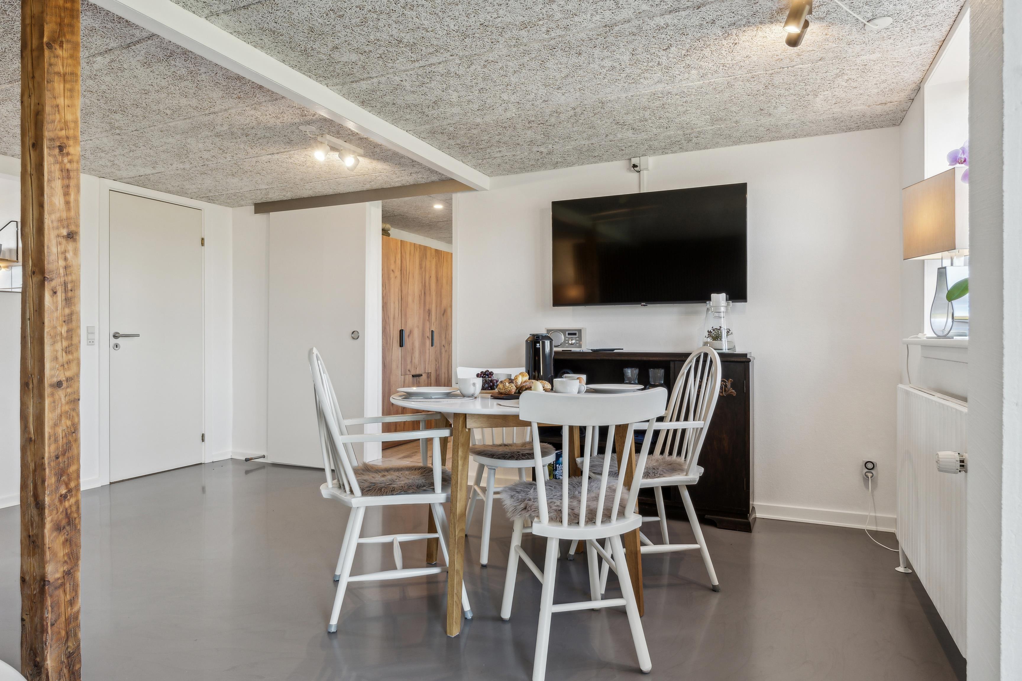 Die Wohnung befindet sich in einem soliden Gebäude aus roten Ziegelsteinen, hat eine Fläche von 45 m² und wurde zuletzt im Jahr 2025 modernisiert. Die Einrichtung ist ideal für 2 Personen, mit 1 geräumigen Schlafzimmer, einem praktischen Badezimmer mit Dusche, einer Wohnküche und einem gemütlichen Wohnzimmer. Die offene Wohnküche bietet den perfekten Rahmen für gemeinsame Zeit, sodass auch während der Essensvorbereitung eine gemütliche Atmosphäre entsteht. Die Mahlzeiten können am Esstisch eingenommen werden, und danach ist der Wohnbereich ideal zum Entspannen oder für Filmabende. Der Fernseher bietet sowohl dänische als auch deutsche Kanäle. Es handelt sich um einen Smart-TV, sodass Sie von Ihren eigenen Streaming-Diensten aus streamen können.