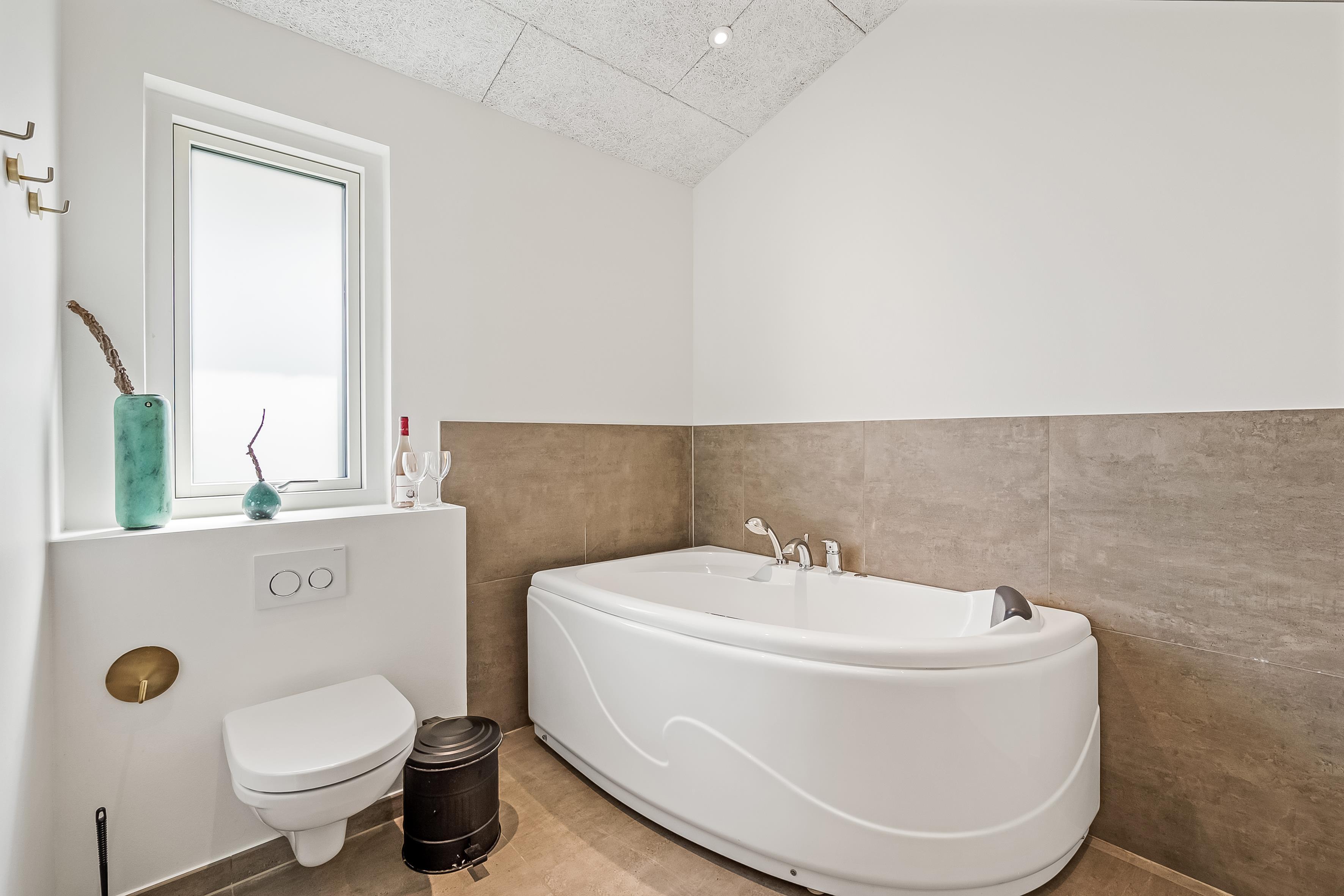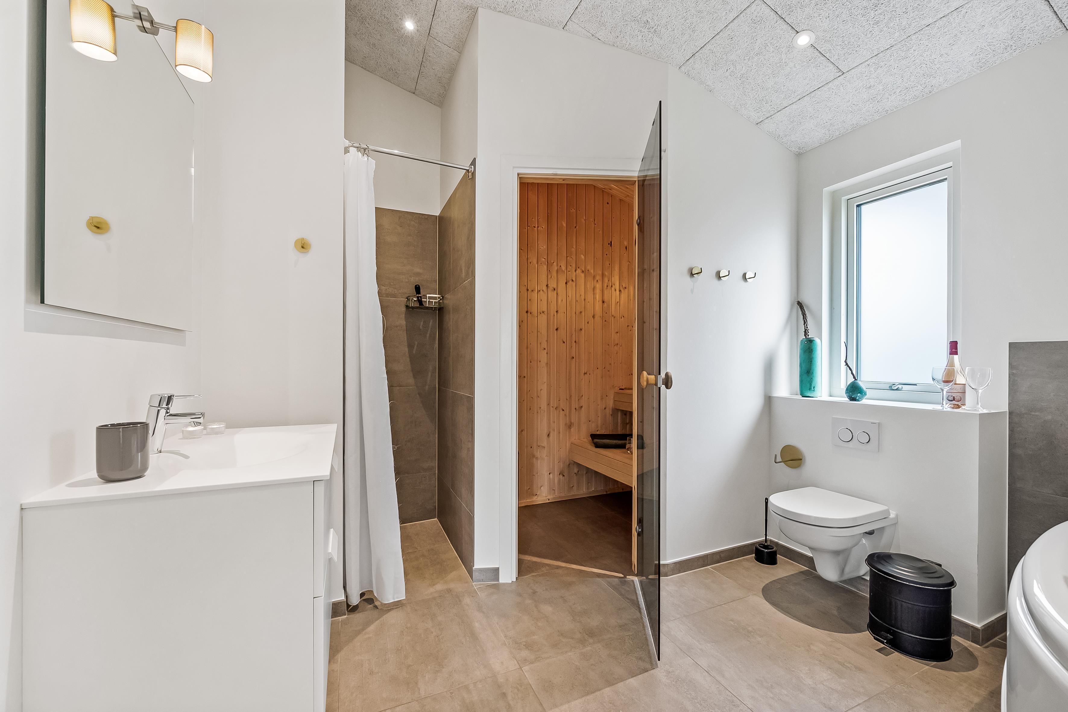 Im größten der beiden Badezimmer des Ferienhauses finden Sie Ihre eigene kleine Wellness-Oase mit Whirlpool und Sauna, damit Sie sich und einander während Ihres Urlaubs verwöhnen können.