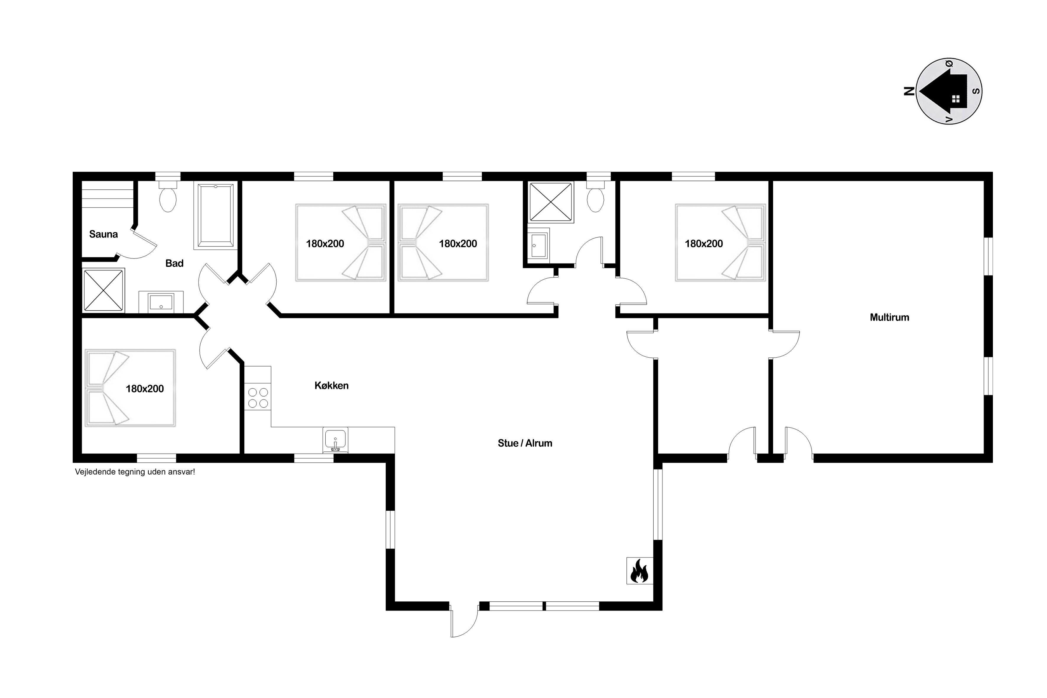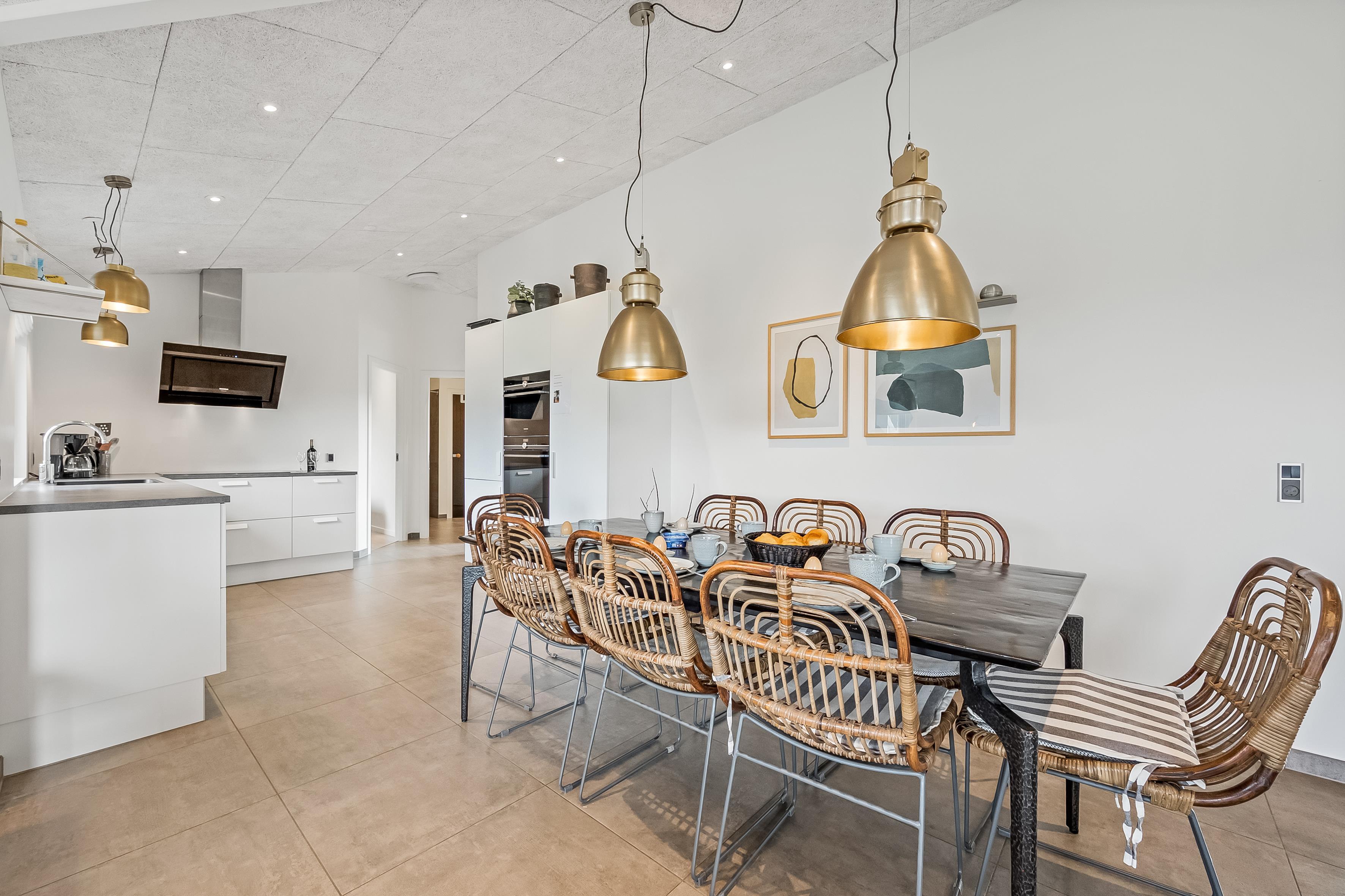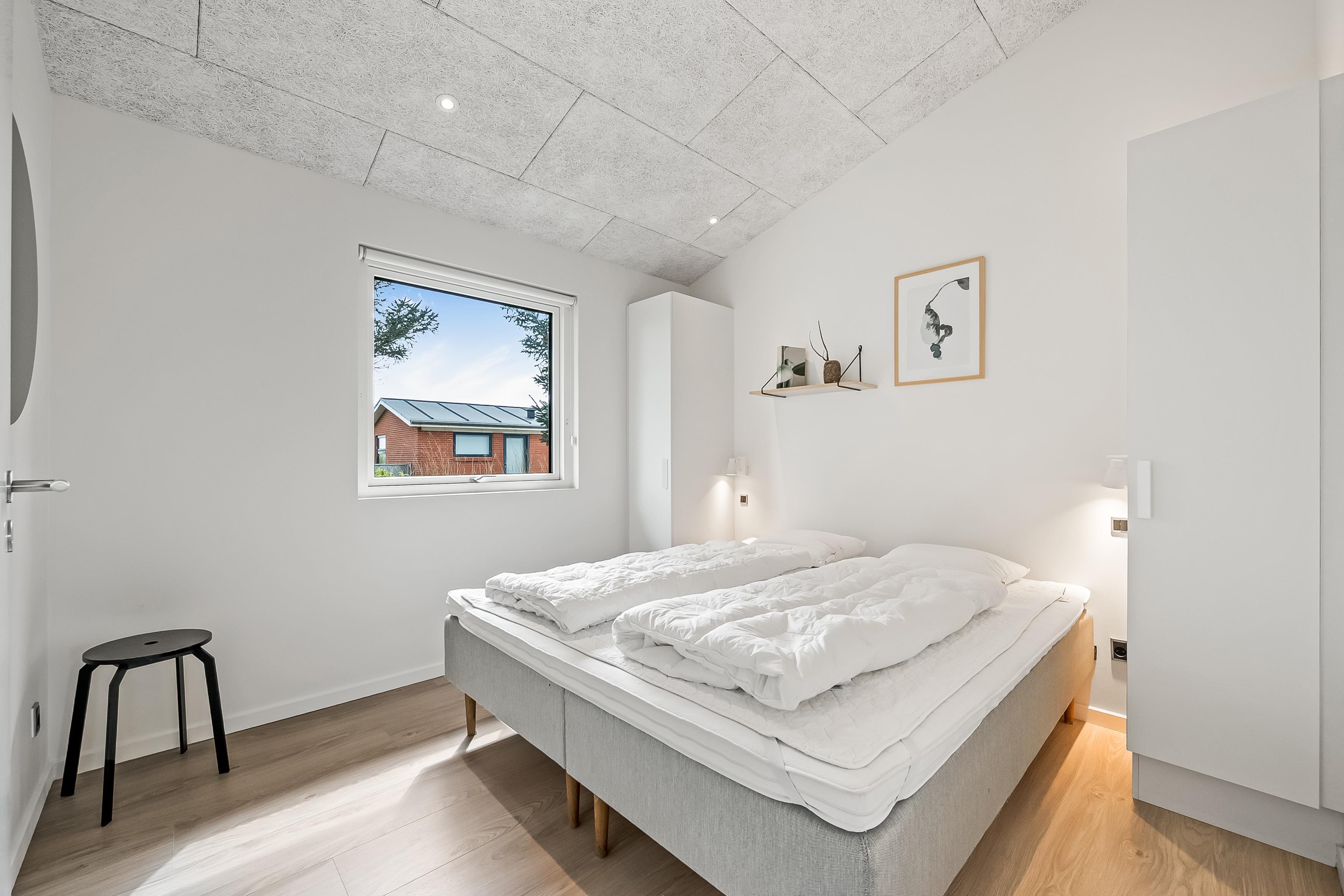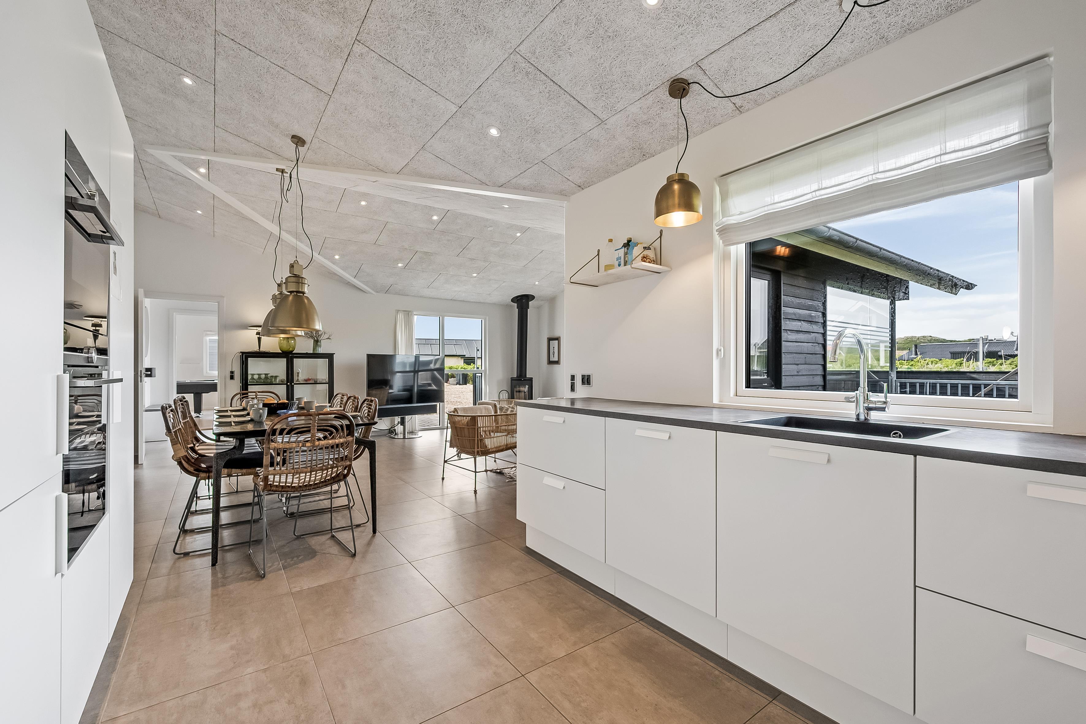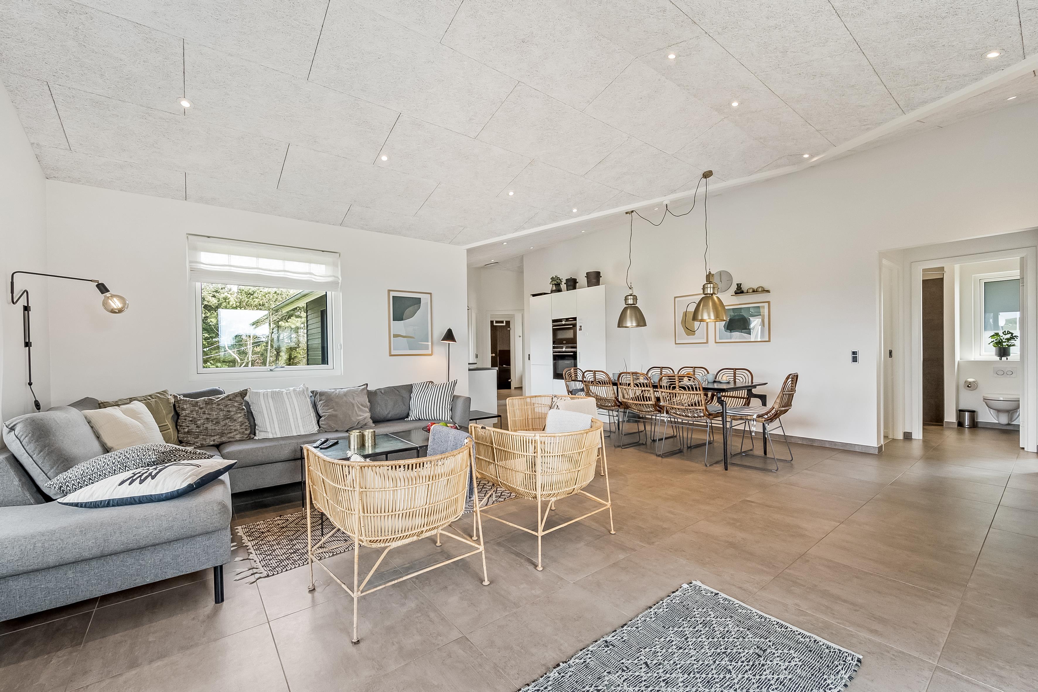 Das Ferienhaus bietet Platz für 8 Personen, und das durchgehend helle Dekor und moderne Möbel tragen zur stilvollen Atmosphäre bei. Die großen Fenster laden das Sonnenlicht und die Landschaft von Westjütland ein, und der klassische Kaminofen sorgt das ganze Jahr über für Gemütlichkeit.