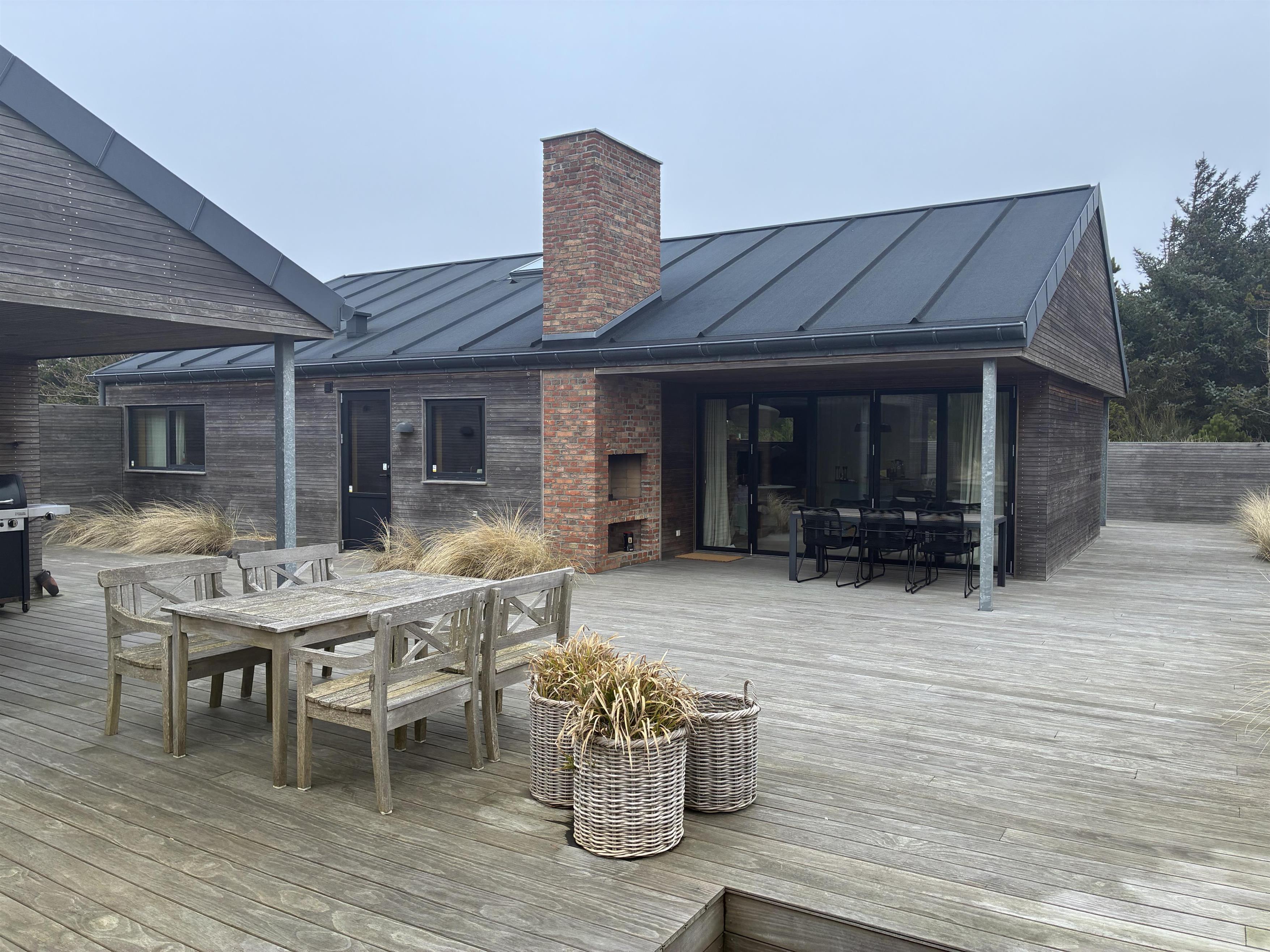 Das Ferienhaus wurde 2019 erbaut und ist durch und durch durchdacht gestaltet. Die großen Glasflächen, die hohen Decken und die Velux-Dachfenster sorgen für eine beeindruckende Lichtdurchflutung und schaffen eine luftige und einladende Atmosphäre. Der offene Wohnküchenbereich zieht die Terrasse direkt in den Raum hinein und macht den Wohnbereich zu einem natürlichen Treffpunkt für die ganze Familie. Im Wohnzimmer finden Sie zwei eingebaute Bio-Kamine, die nach einem Tag am Meer für eine gemütliche und ruhige Atmosphäre sorgen.
