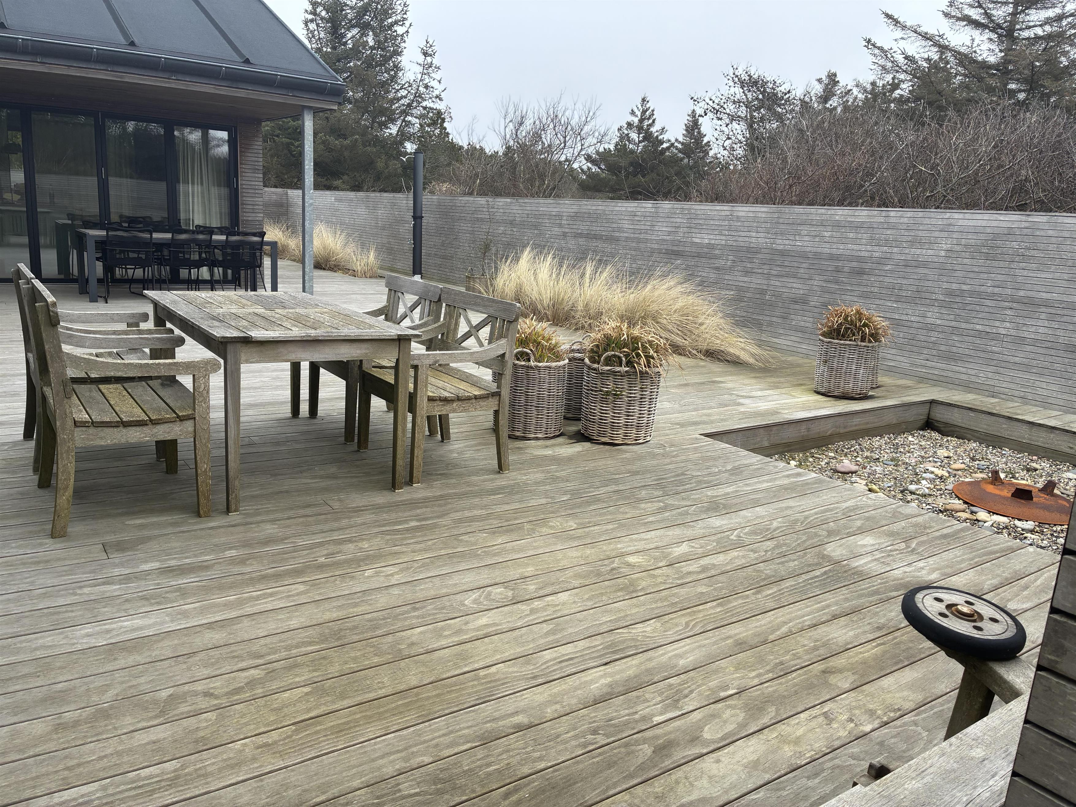 Große, abgeschirmte Holzterrasse mit besonderen Details