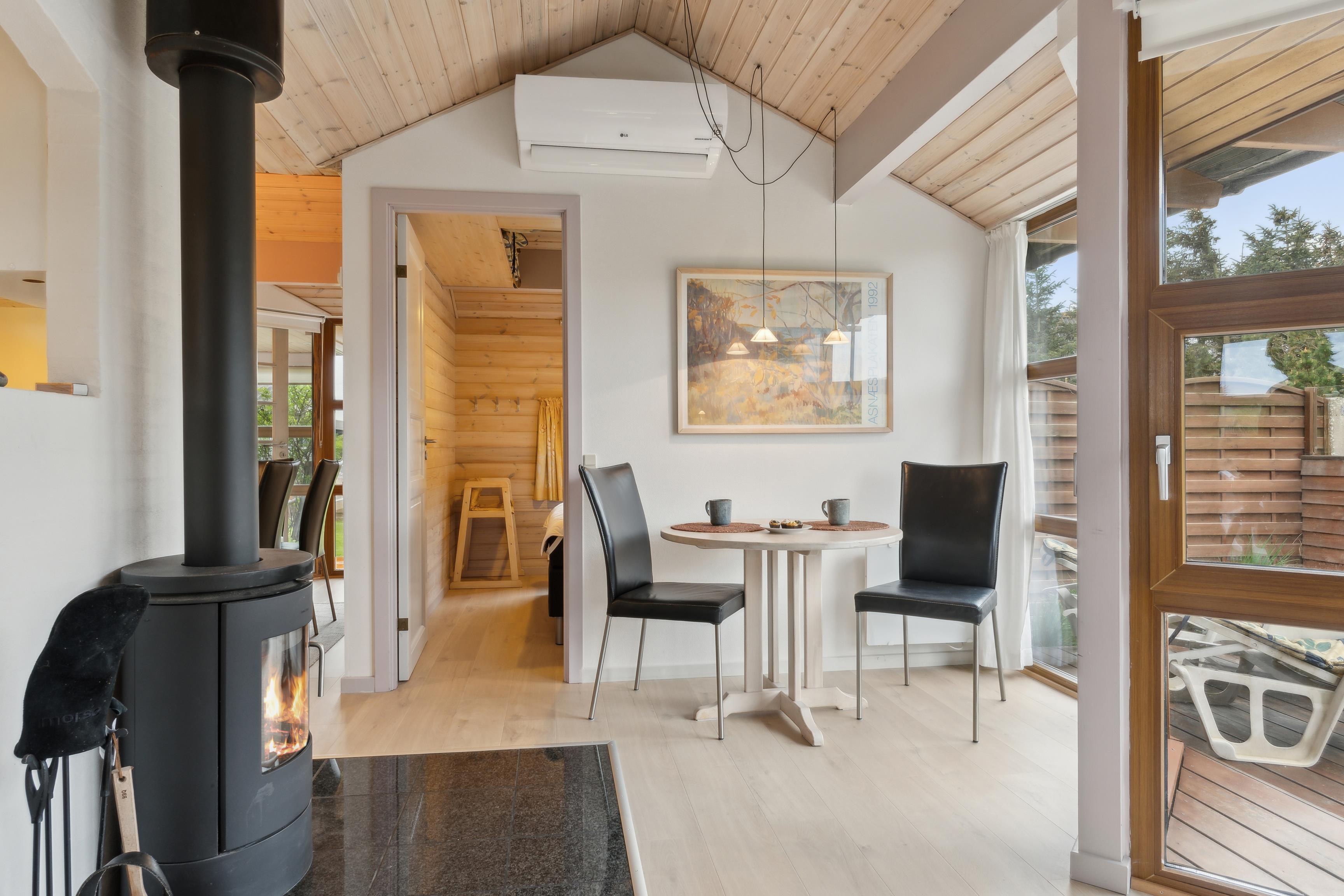Neben dem Kaminofen ist das Haus mit einer Luft-Wärmepumpe ausgestattet, die eine energieeffiziente Heizung und Kühlung ermöglicht. Wenn Sie eine Pause brauchen, können Sie eine entspannende Zeit in der Sauna verbringen und sich aufladen.