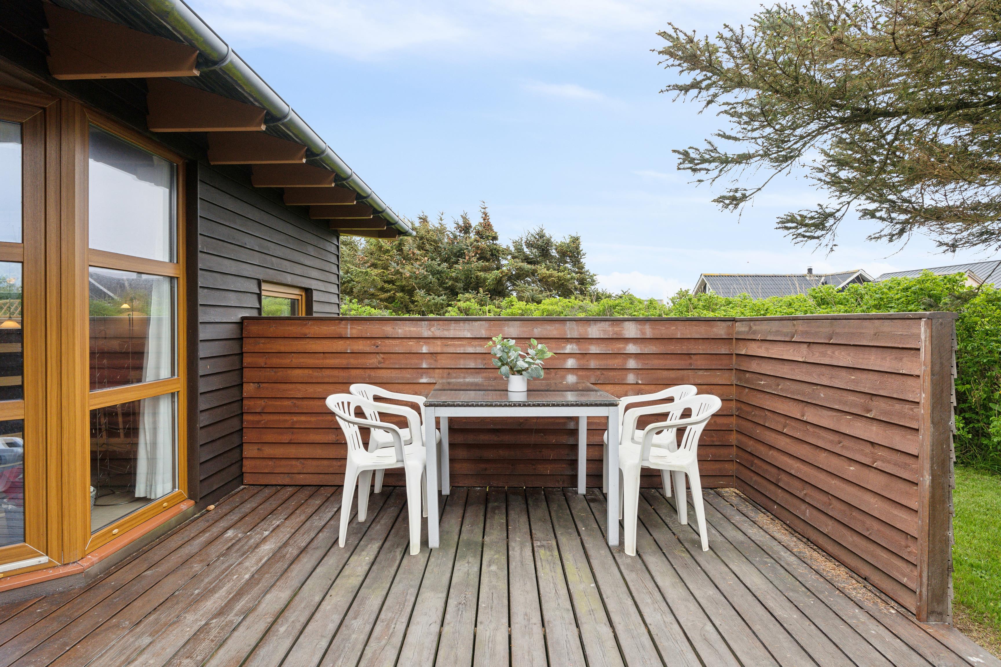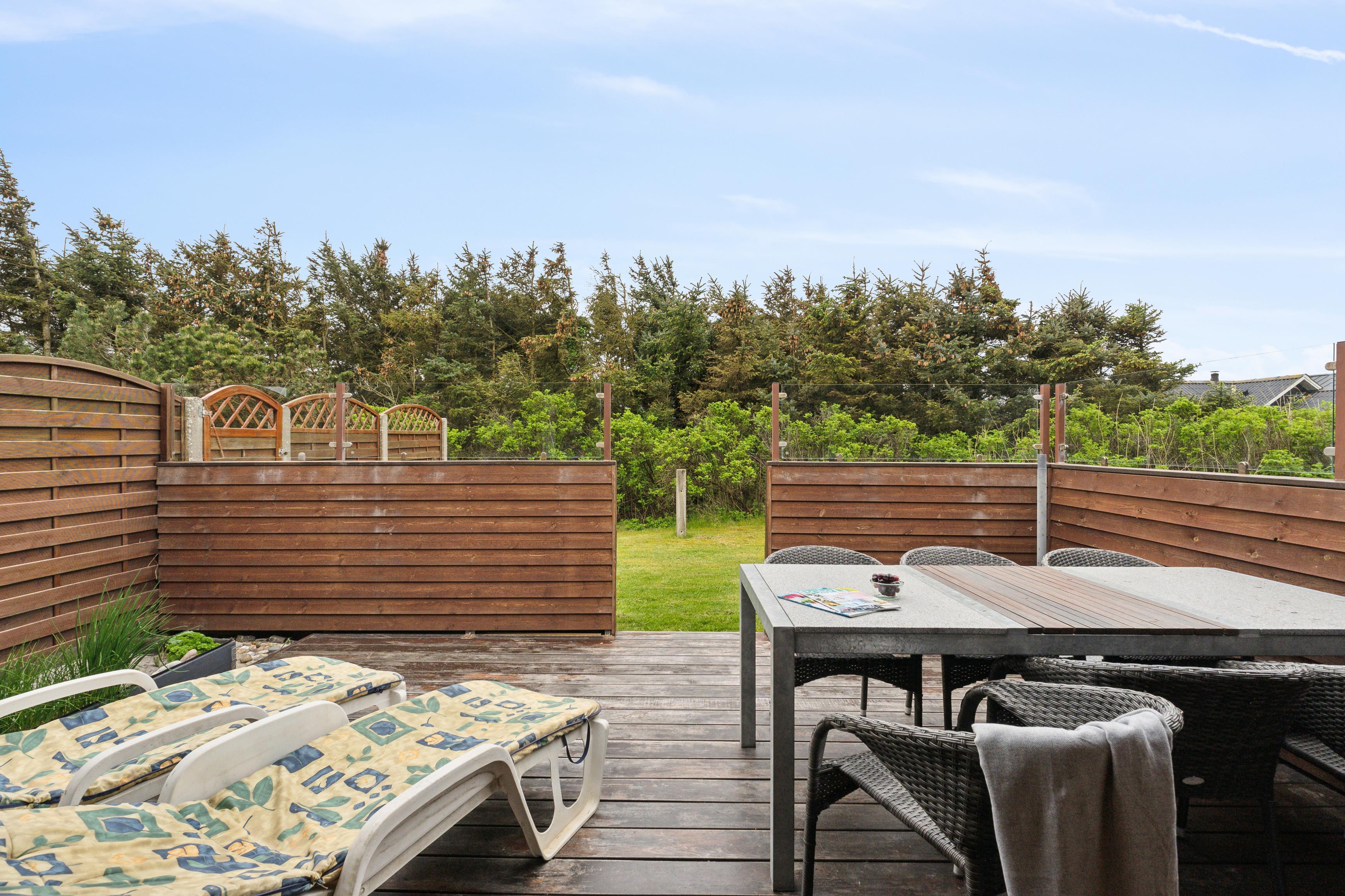 Dieses 100 m² große Ferienhaus befindet sich auf einem schönen, grasbewachsenen Grundstück, das von Büschen und Bäumen umgeben ist und sowohl Schutz als auch Privatsphäre bietet. Es gibt zwei abgeschirmte Terrassen auf beiden Seiten des Hauses, sodass Sie den Sonnenverlauf den ganzen Tag über genießen können. Das Haus liegt nur 350 Meter von der kraftvollen Nordsee entfernt, wo Sie schwimmen oder lange Spaziergänge unternehmen können. Die frische Meeresluft und die offenen Weiten bieten sowohl Platz zum Spielen als auch zum Entspannen.