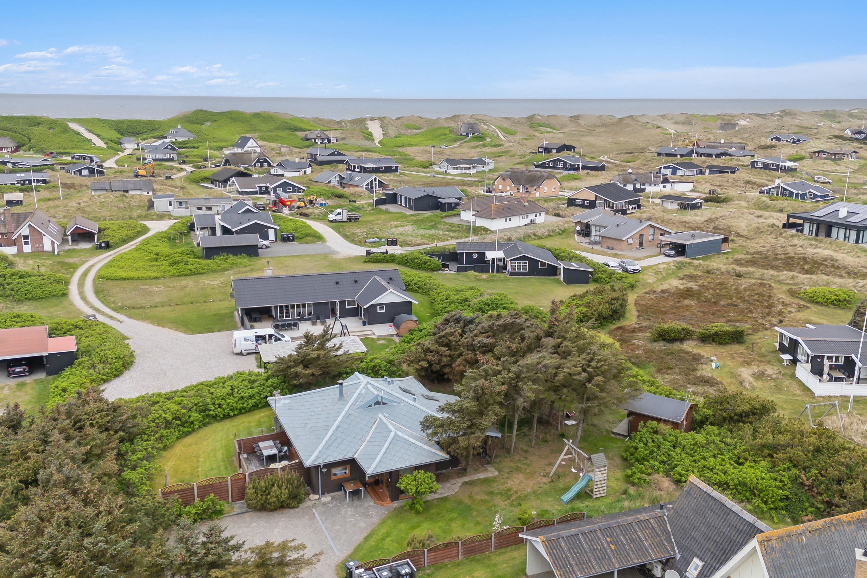 Charmantes Ferienhaus in Søndervig, nur 350 m von der Nordsee entfernt, mit Sauna, Kaminofen und großem Garten für Familien.