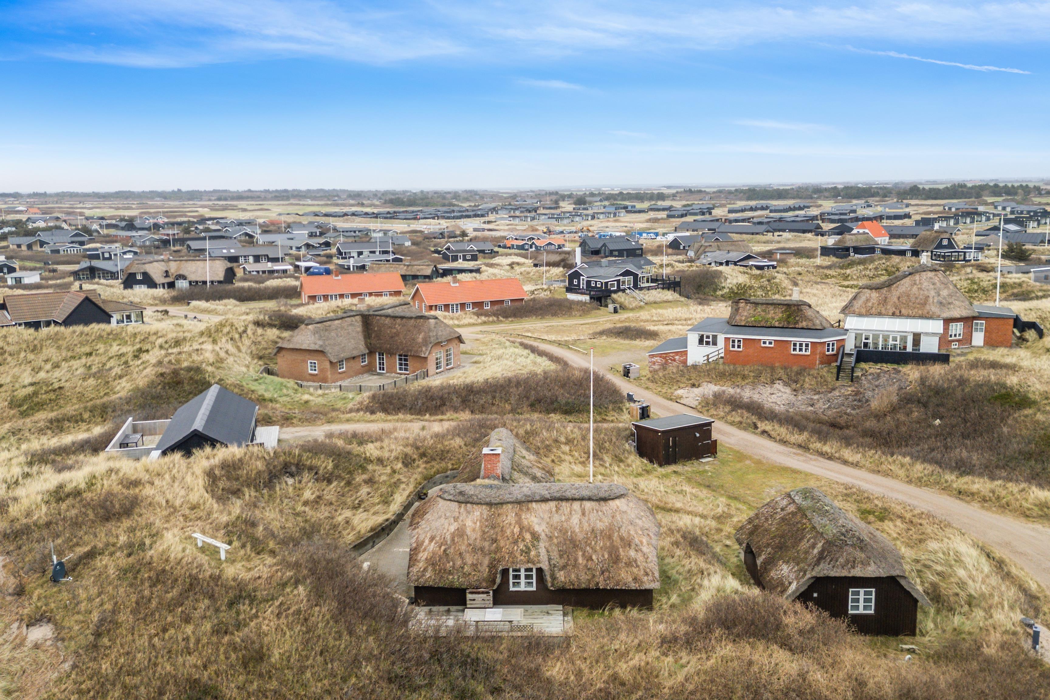 Eine wunderschöne Terrasse fasst das Haus von 3 Seiten ein, sodaß ihr draußen in der Nähe der Nordsee immer einen sonnigen Platz oder schattigen Rückzugsort findet. Von einer kleinen Bank auf einer anliegenden Düne könnt ihr den Sonnenaufgang über den Ringkøbing Fjord beobachten oder den Sonnenuntergang über der Nordsee genießen. Die Düne bietet einen natürlichen Windschutz, ideal für Familien mit kleinen Kindern die somit draußen geschütz spielen können.