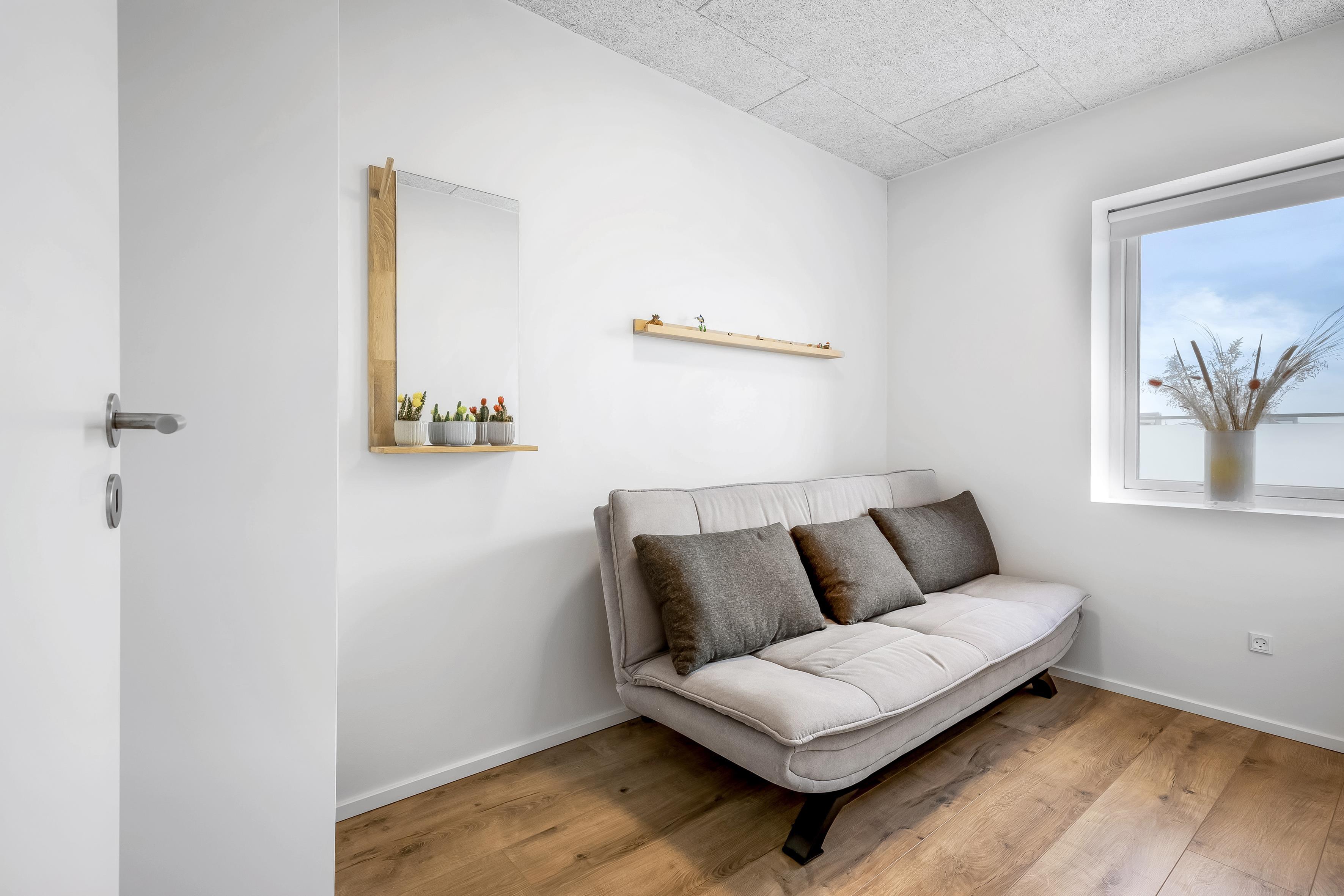 Die Wohnung wurde im Jahr 2021 gebaut, ist 85 m³ groß und bietet Platz für bis zu 6 Personen. Sie hat 3 Schlafzimmer, wovon 1 mit einem bequemen Doppelbett, 1 mit einem Etagenbett und das dritte mit einem ausklappbaren Schlafsofa ausgestattet ist.