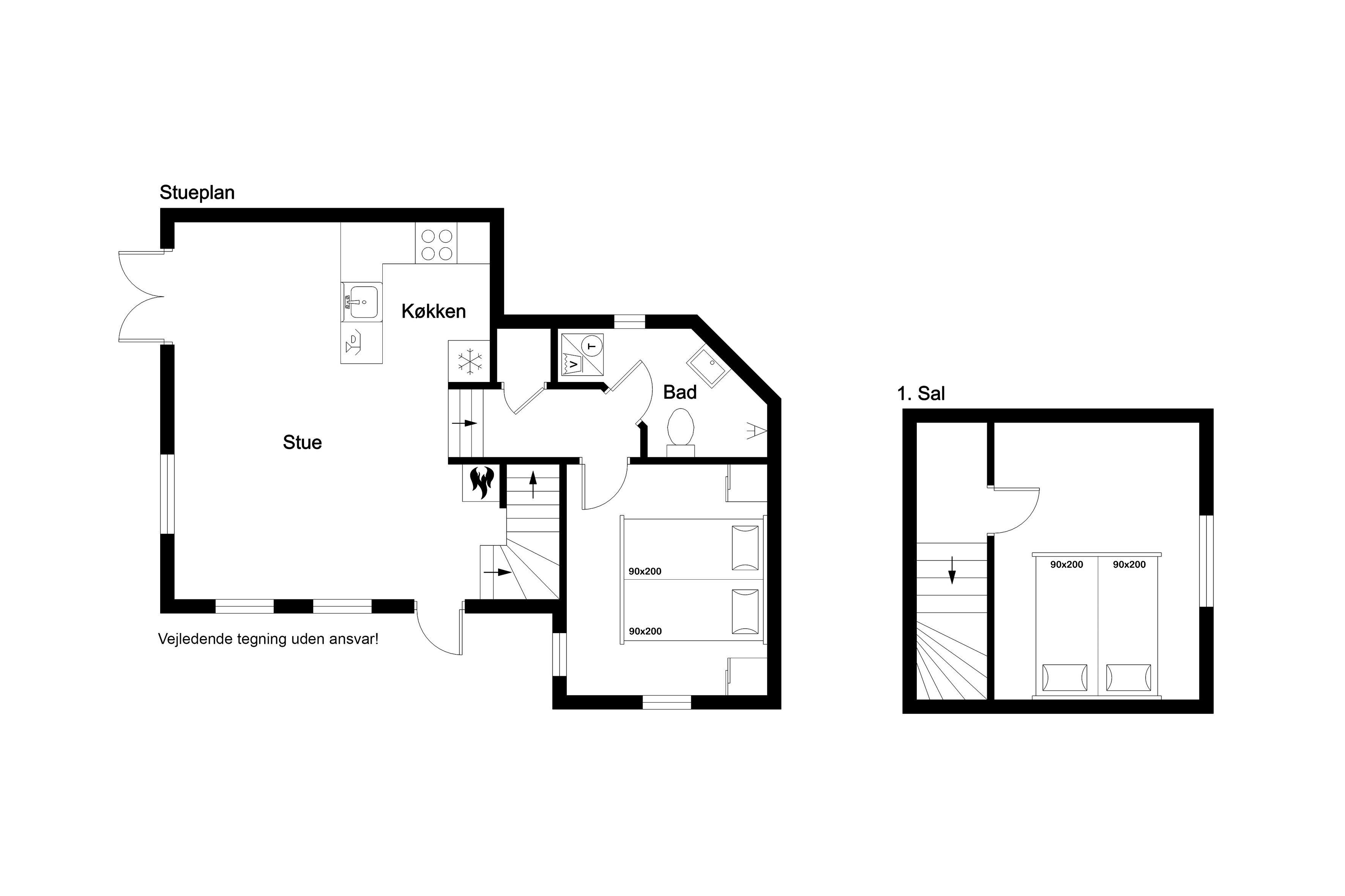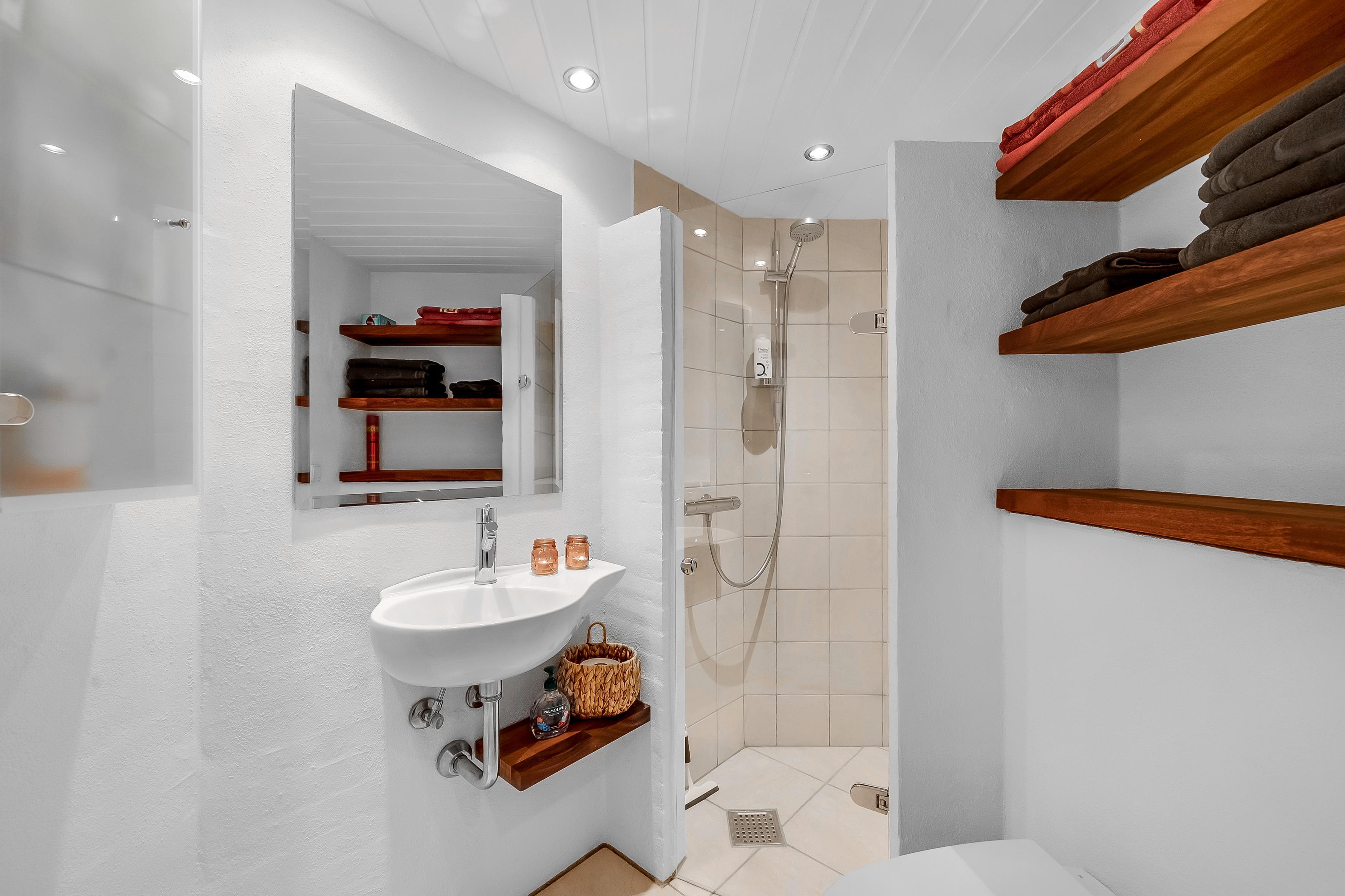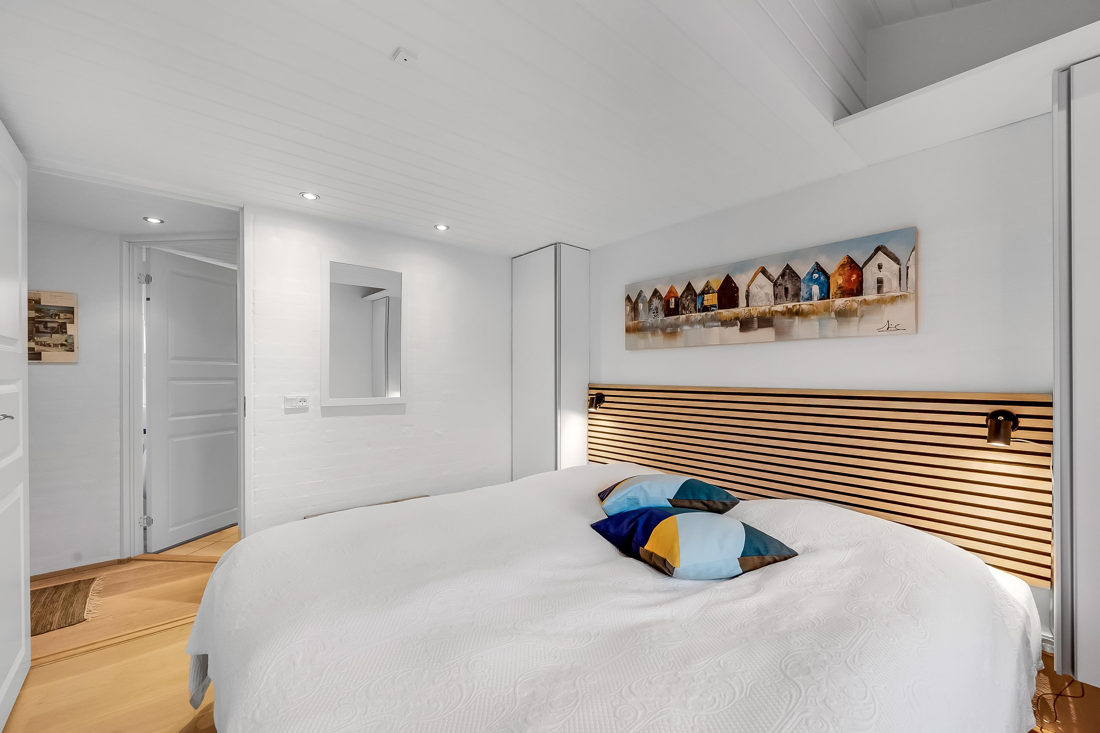 Das Haus bietet zwei Schlafzimmer, beide mit Doppelbetten ausgestattet, die für eine erholsame Nachtruhe sorgen. Das Badezimmer ist mit Dusche, Toilette und Fußbodenheizung ausgestattet.