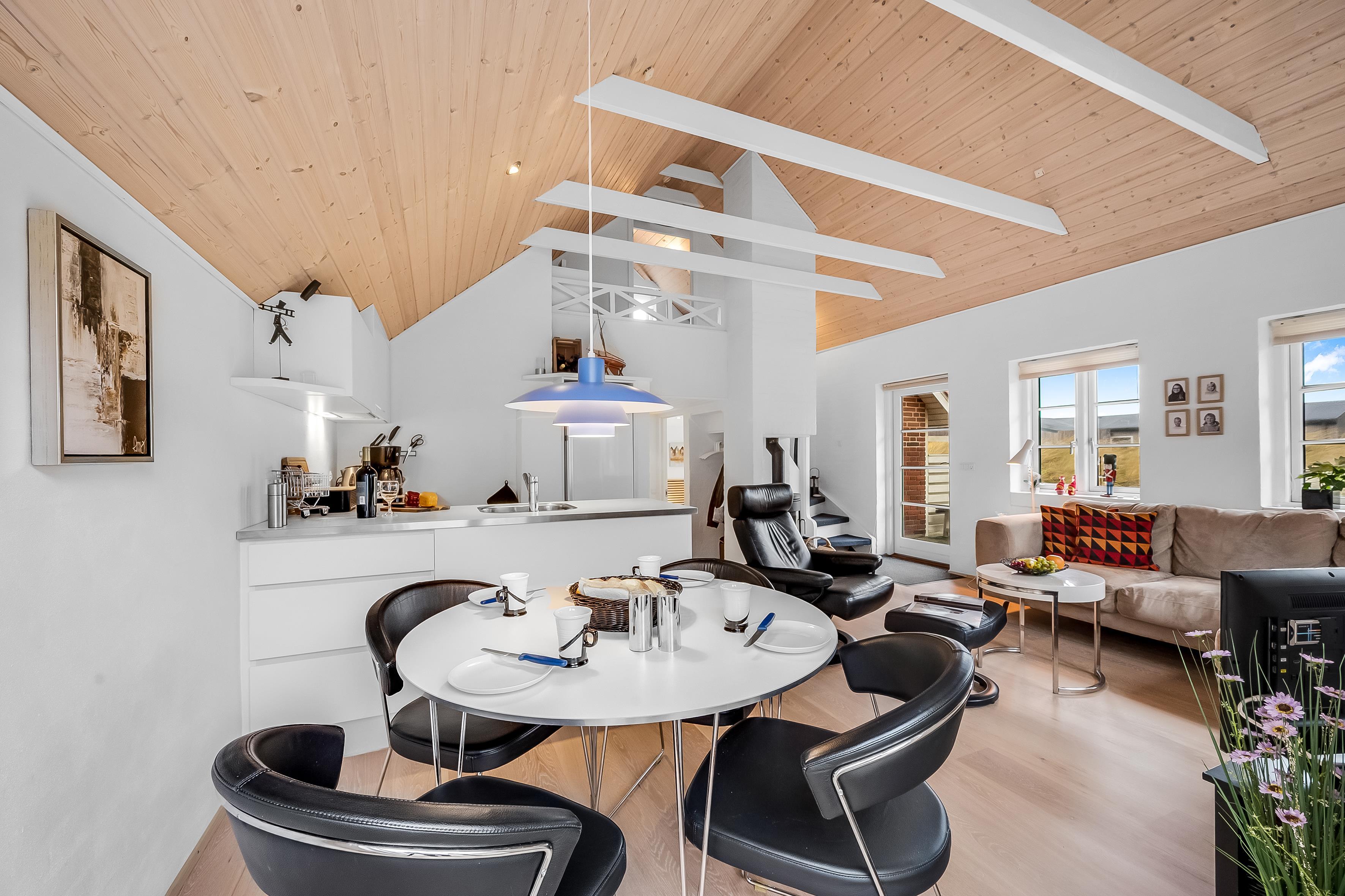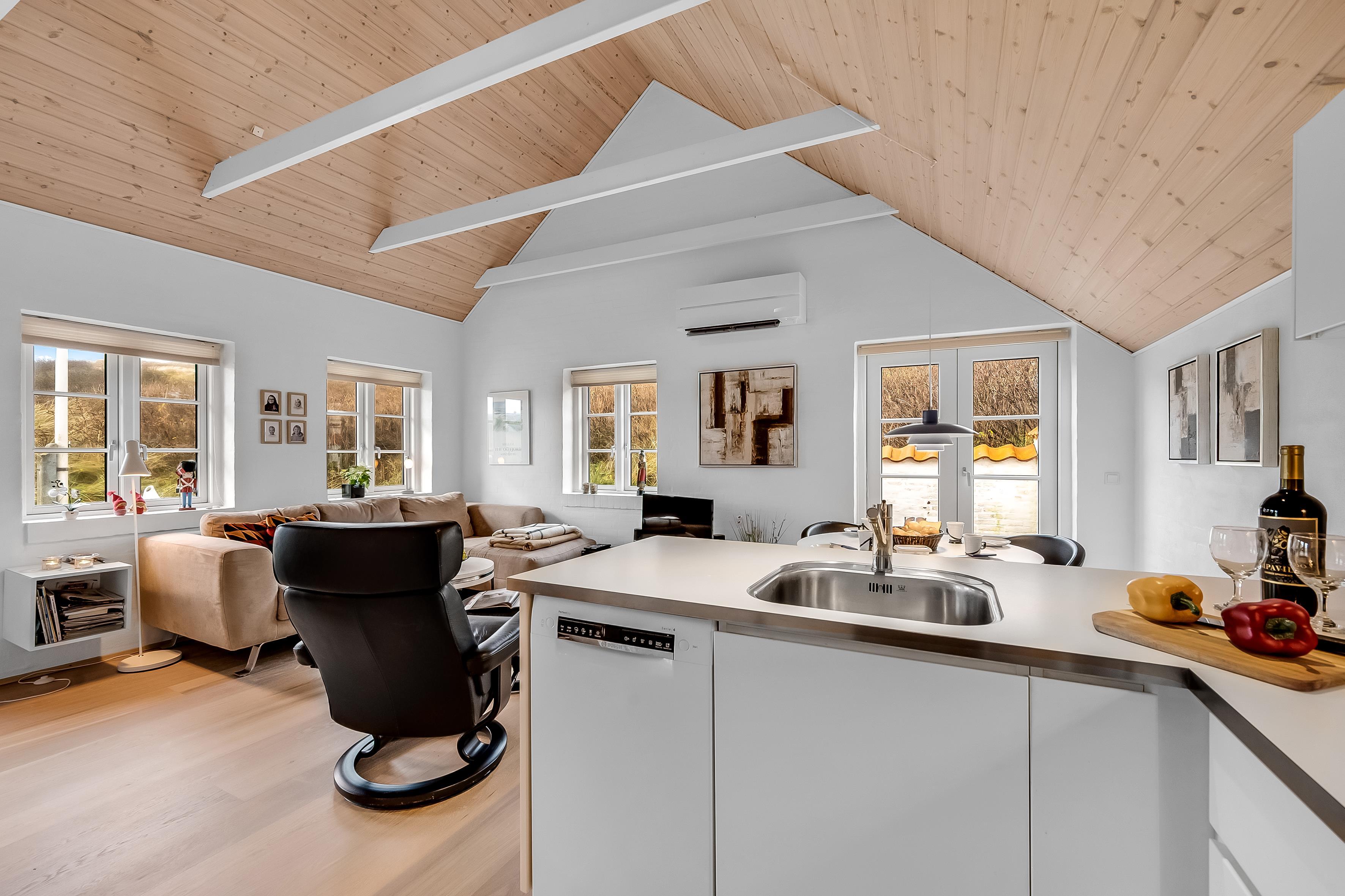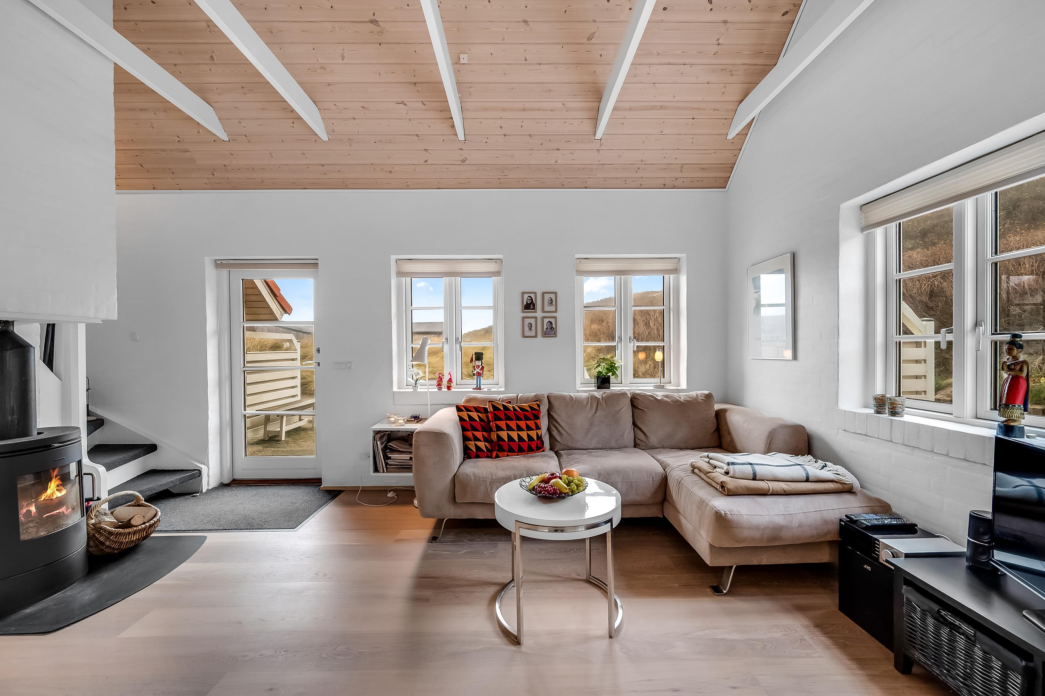 Das Haus ist mit modernen Unterhaltungsmöglichkeiten ausgestattet, darunter ein Fernseher mit dänischem und deutschem Fernsehen sowie WLAN, sodass Sie auf Wunsch mit der Außenwelt in Kontakt bleiben können. Die Lage ist ideal, da das Haus nur 90 Meter vom Wasser entfernt ist, was schöne Spaziergänge am Strand ermöglicht. Die Stadt Søndervig mit Geschäften und Restaurants ist in wenigen Minuten zu erreichen. Dort können Sie lokale Gerichte genießen und es gibt Einkaufsmöglichkeiten, sodass Sie während Ihres Aufenthalts leicht finden, was Sie brauchen.