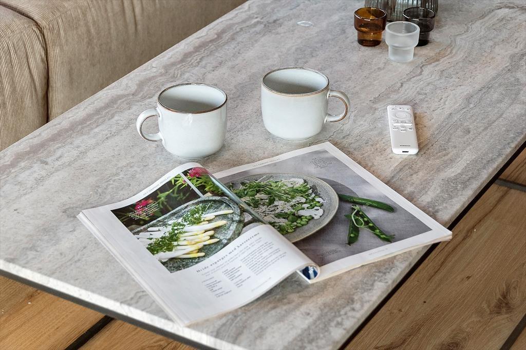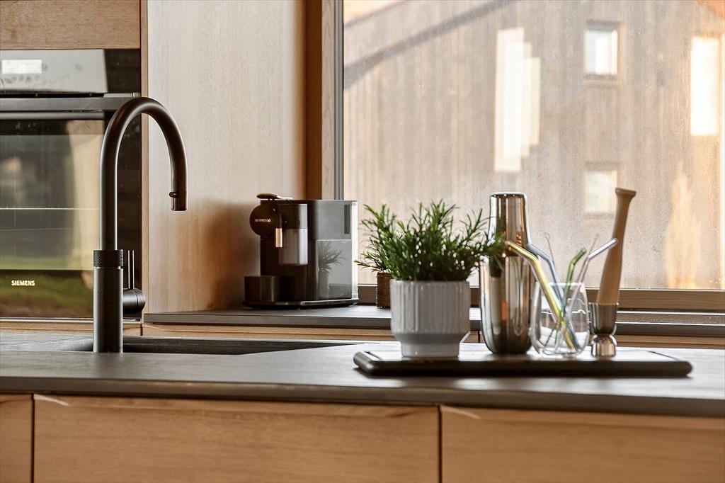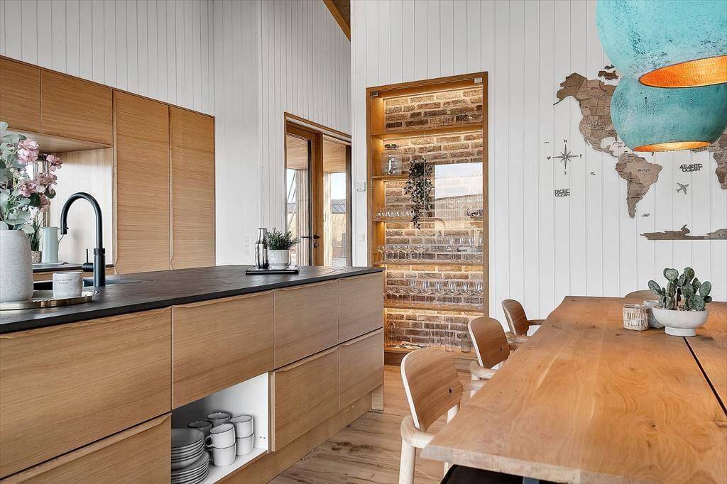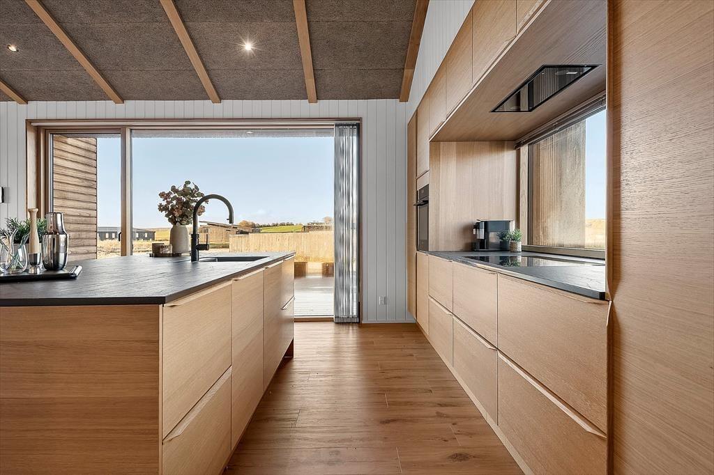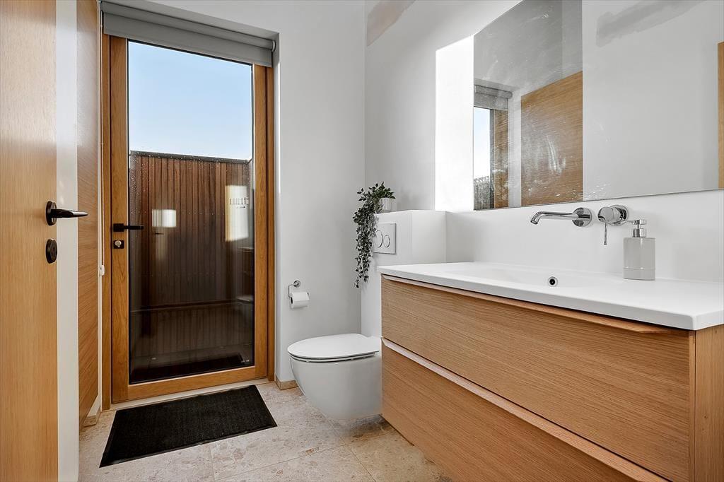 Die moderne Küche ist stilvoll gestaltet und fügt sich harmonisch in den Wohnbereich ein, sodass Kochen und Zusammensein ganz selbstverständlich ineinander übergehen. Ein Weinkühlschrank setzt einen genussvollen Akzent und macht es leicht, ein gut gekühltes Glas zu genießen, wann immer dir danach ist. Das Ferienhaus verfügt über zwei schöne Badezimmer mit elegantem Design, von denen eines direkten Zugang zur Terrasse bietet. So entsteht eine fließende Verbindung zwischen Innen- und Außenbereich, besonders in Kombination mit entspannenden Momenten im Spa-Bereich.