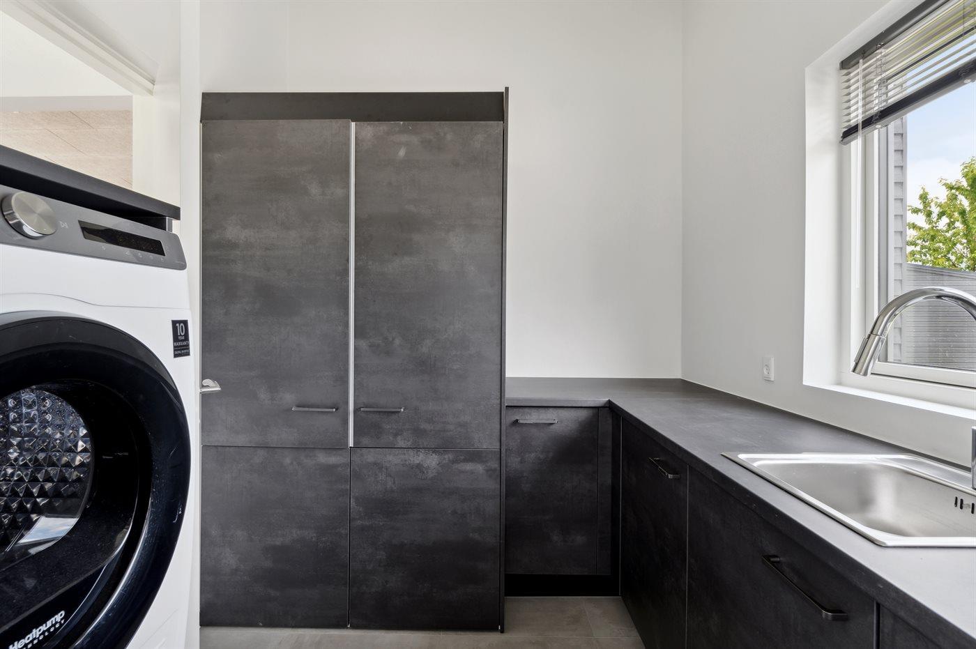 Die Küche ist mit Kühlschrank ausgestattet. Außerdem gibt es 4 Induktions-Kochzonen, Umluftofen, Mikrowelle sowie Geschirrspüler.