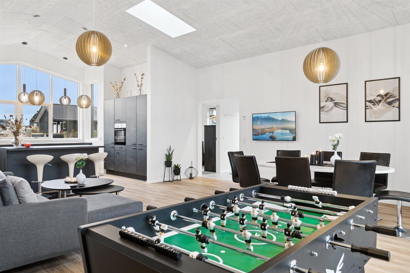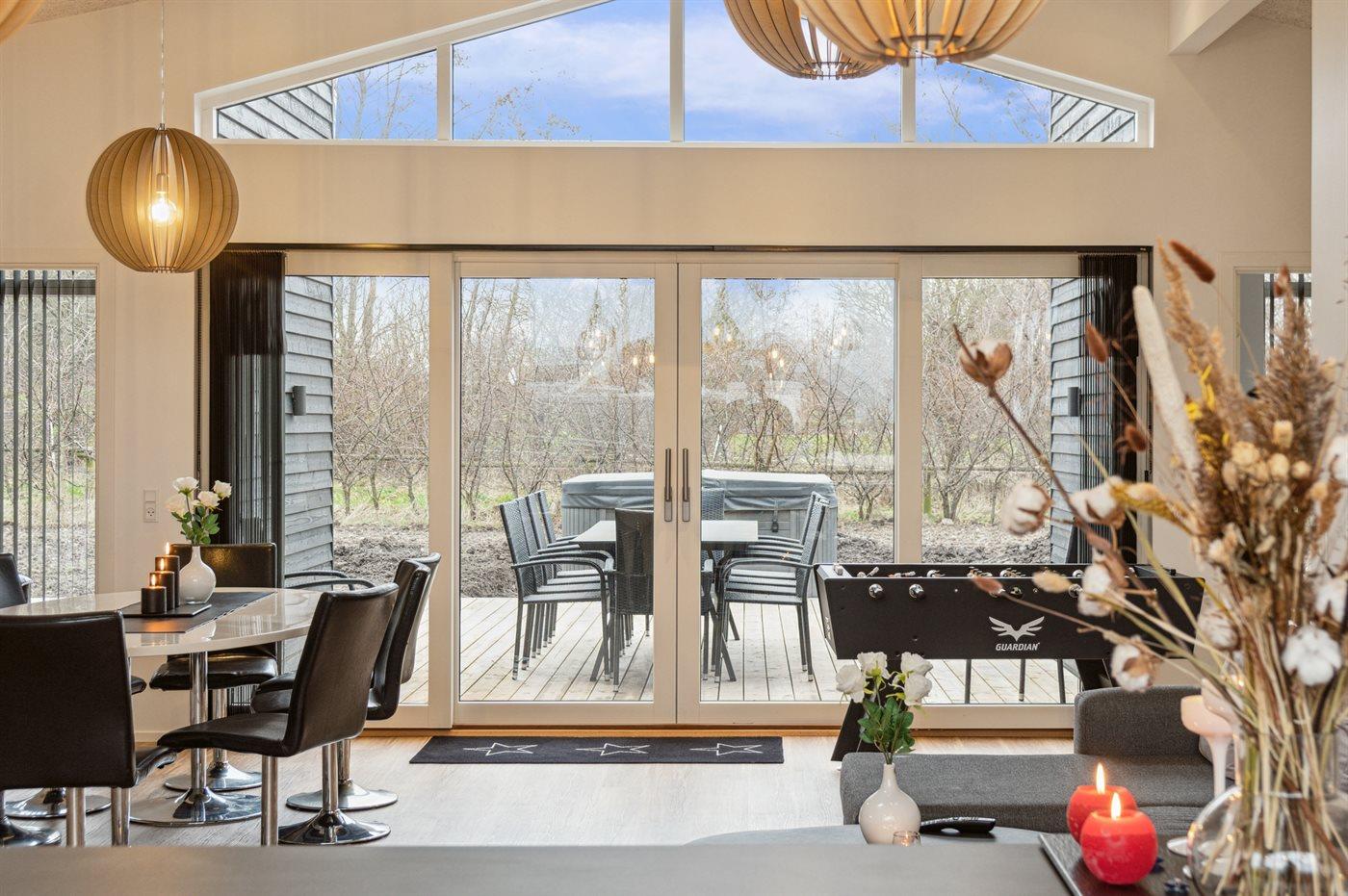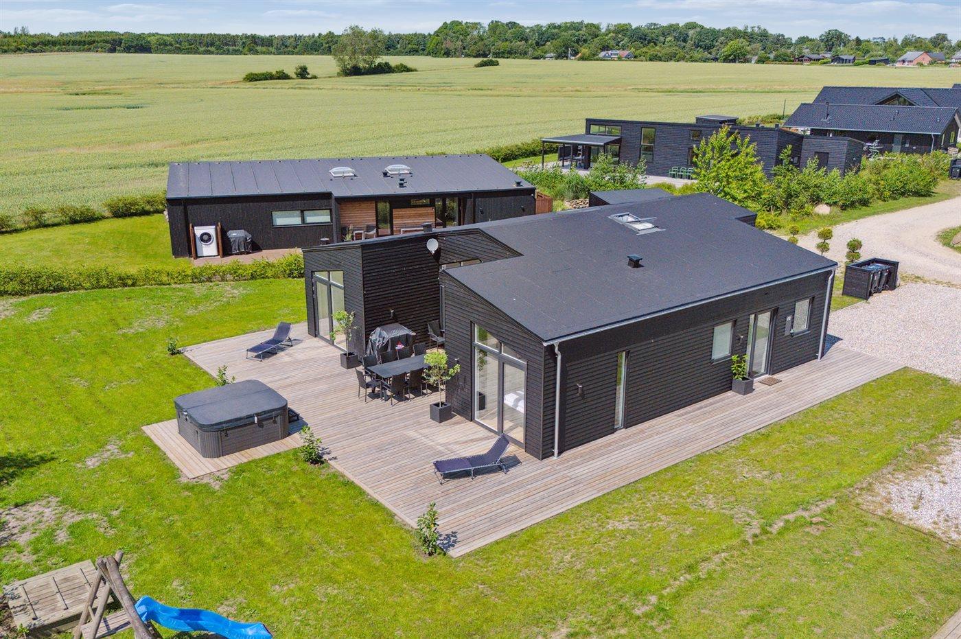 Modernes Ferienhaus am kinderfreundlichen Saksild Strand mit Whirlpool und Spielplatz für entspannte Urlaubstage.