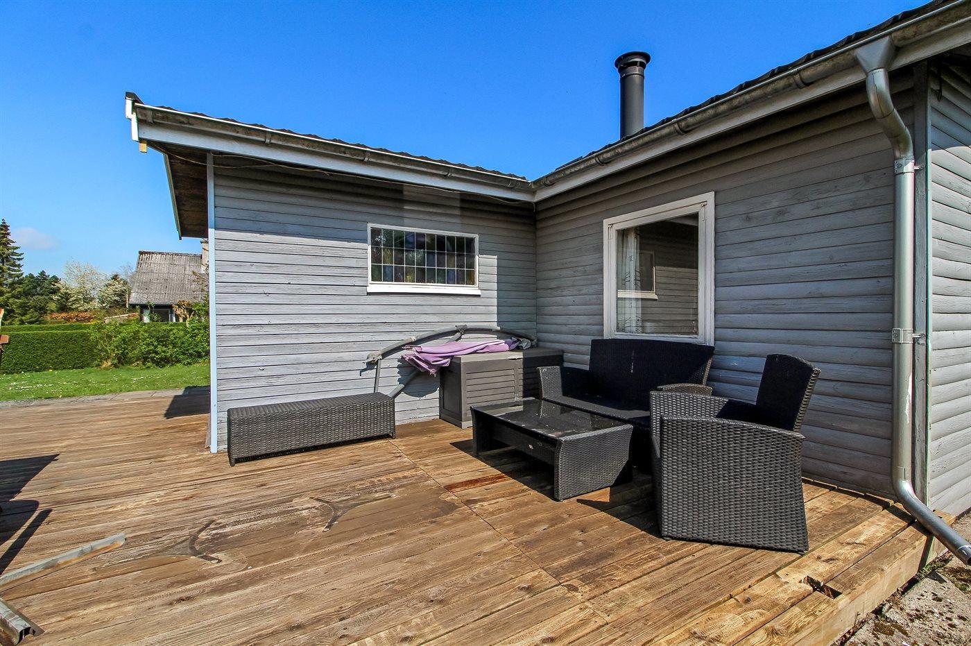 Gemütliches Ferienhaus nahe Saksild Strand mit Terrasse und Kaminofen für erholsame Urlaubstage.