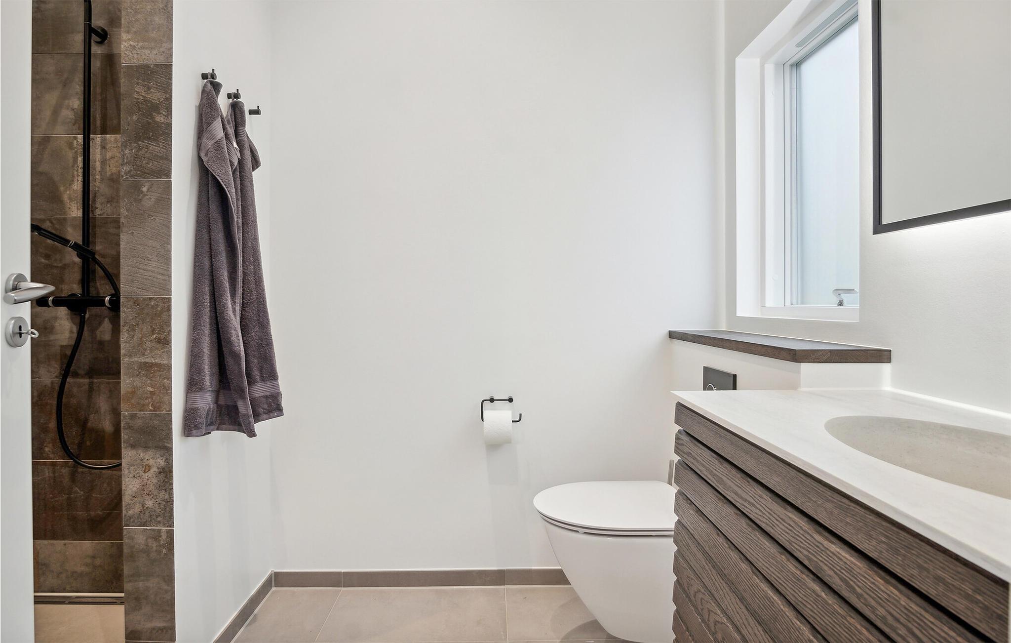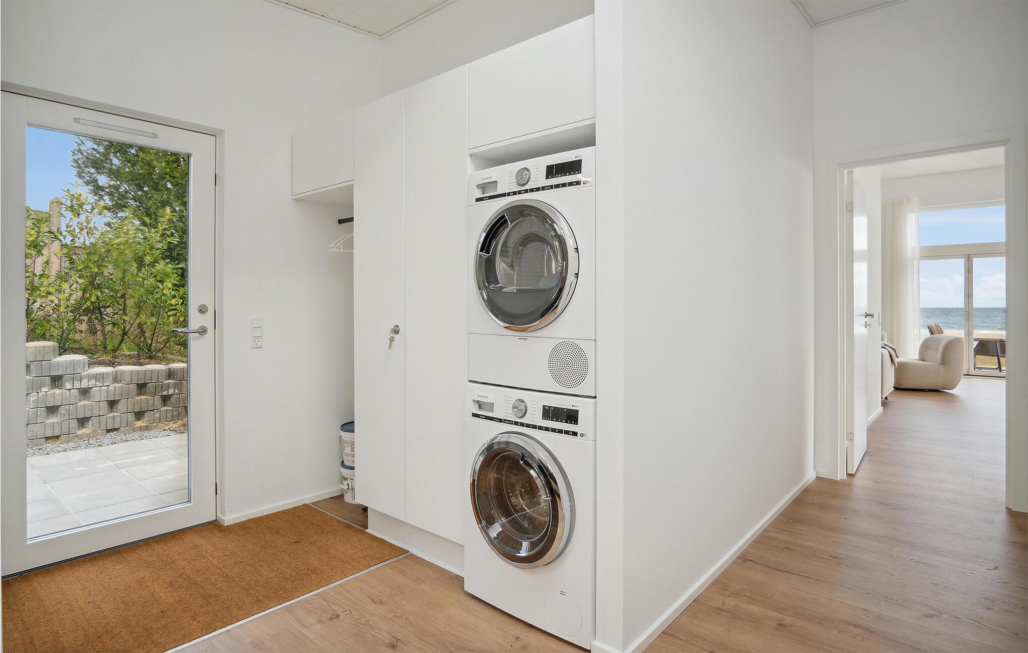 Betreten Sie das wunderschöne Haus und genießen vom großen Wohnraum durch die zahlreichen, bodentiefen Fenster hinaus auf das Wasser. Das Haus wird Sie mit seinem Komfort, großartigen Lichtverhältnissen und der hochwertigen Einrichtung begeistern. Veranstalten Sie in der großen Küche mit Kücheninsel doch einen Kochwettbewerb und speisen am Esstisch mit Blick auf das Wasser. Auch vom Sofa können Sie entweder einen Film anschauen oder die Wellen des Meeres beobachten.