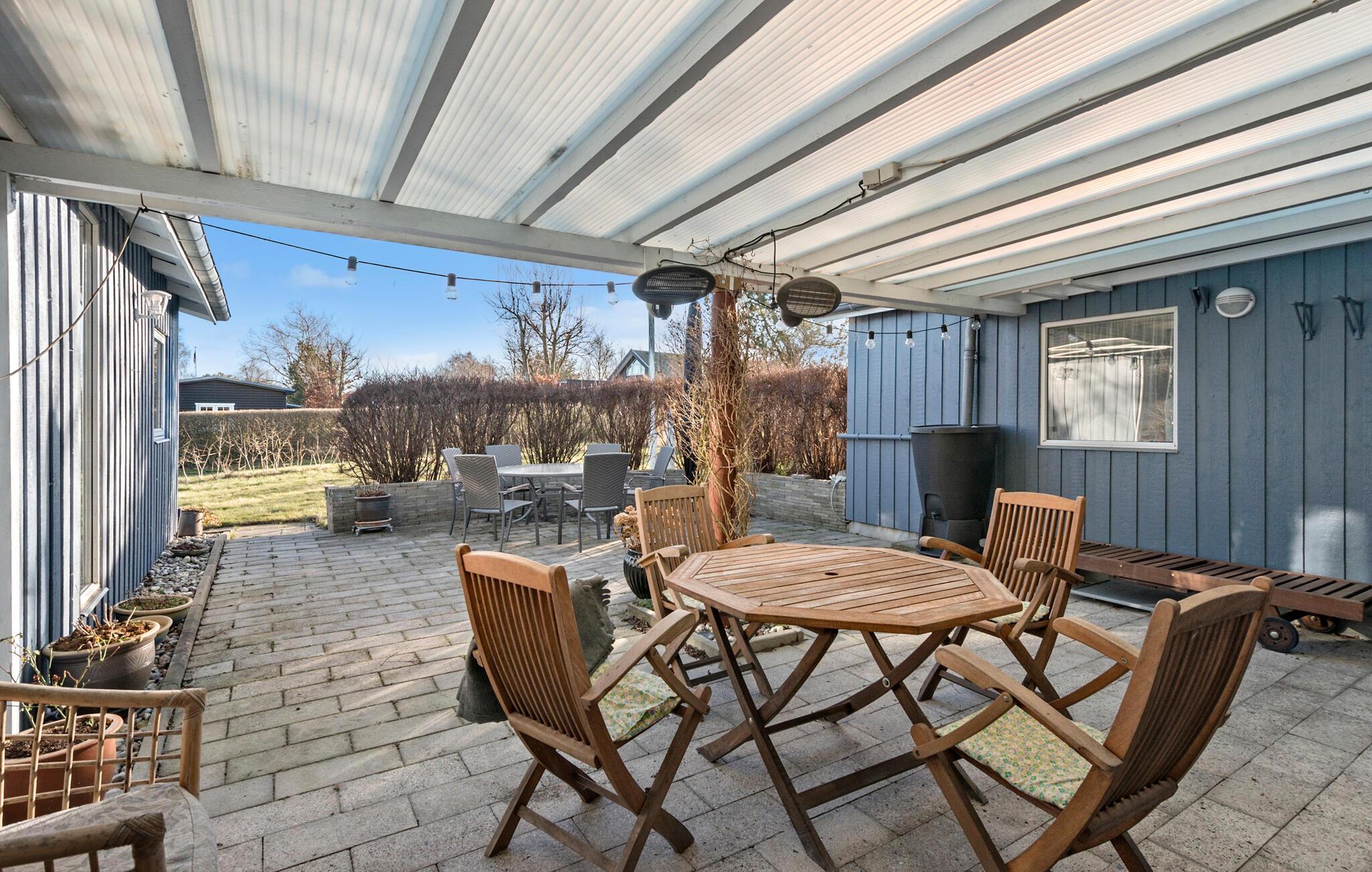 Draußen erwarten Sie offene und überdachte Terrassenbereiche, die Sie für ein sonniges Frühstück oder stimmungsvolle Grillabende nutzen können. Machen Sie einen ausgedehnten Spaziergang zum nahegelegenen Strand und erholen Sie sich an der frischen Seeluft.