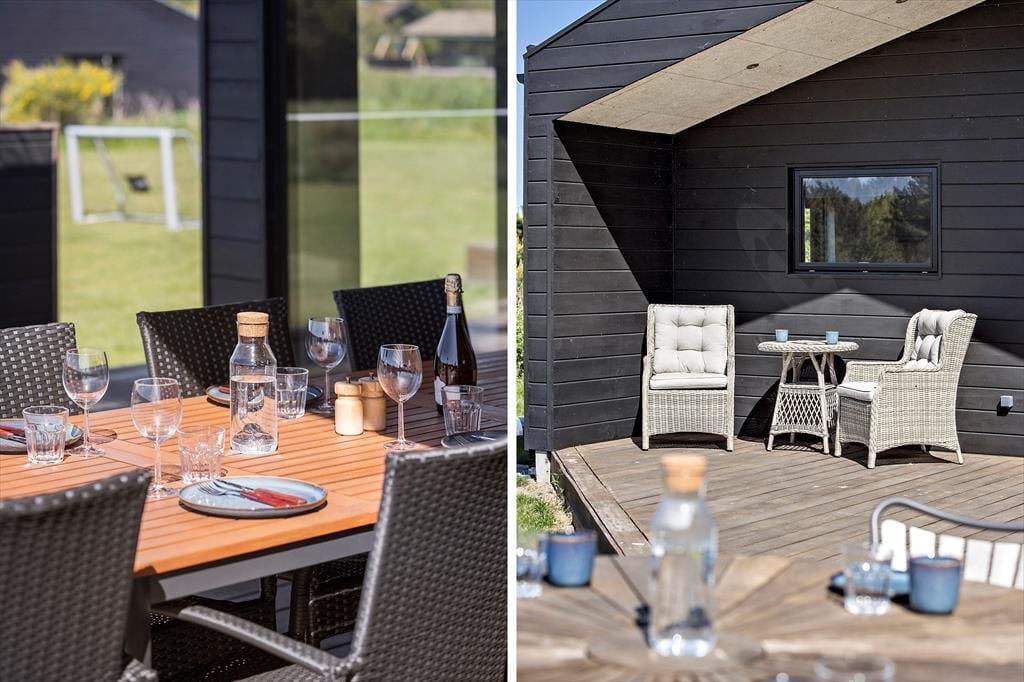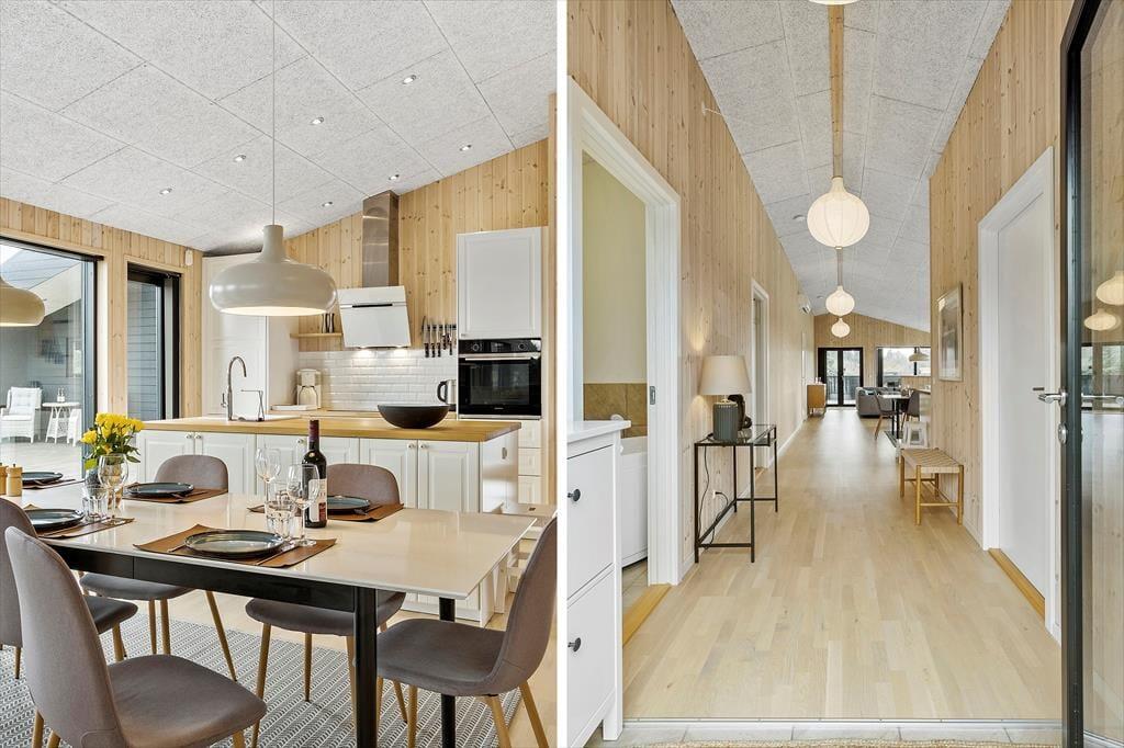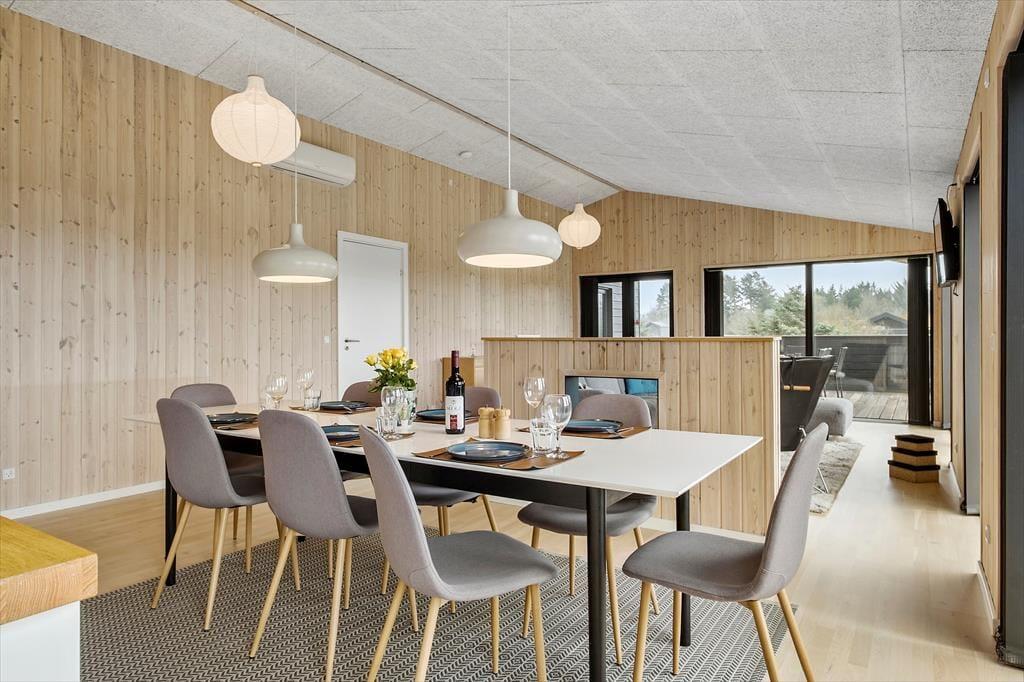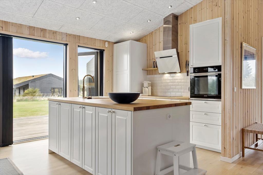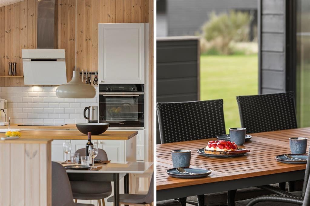 Im Inneren werden Sie von einer hellen und offenen Küche/Wohnbereich empfangen, in dem es einfach ist, Mahlzeiten zuzubereiten oder sich im Wohnzimmer zu entspannen. Die großen Fenster bieten einen fantastischen Lichteinfall und einen Blick auf die umliegende Natur. Das Haus ist mit Fokus auf Komfort und Funktionalität eingerichtet, was es zu einem idealen Ort für den Urlaub macht.