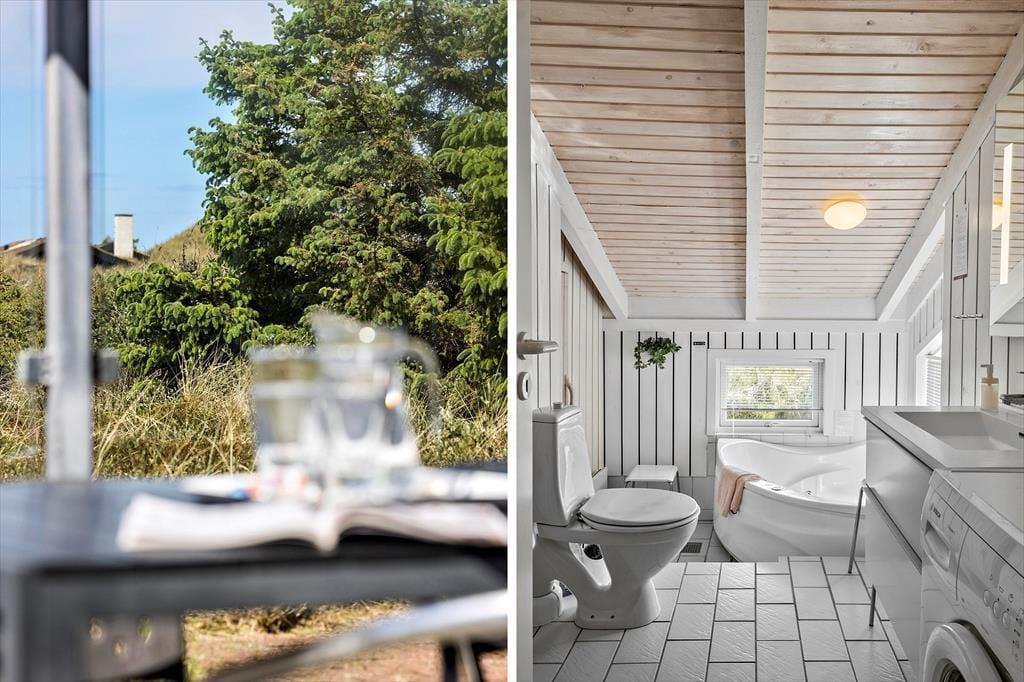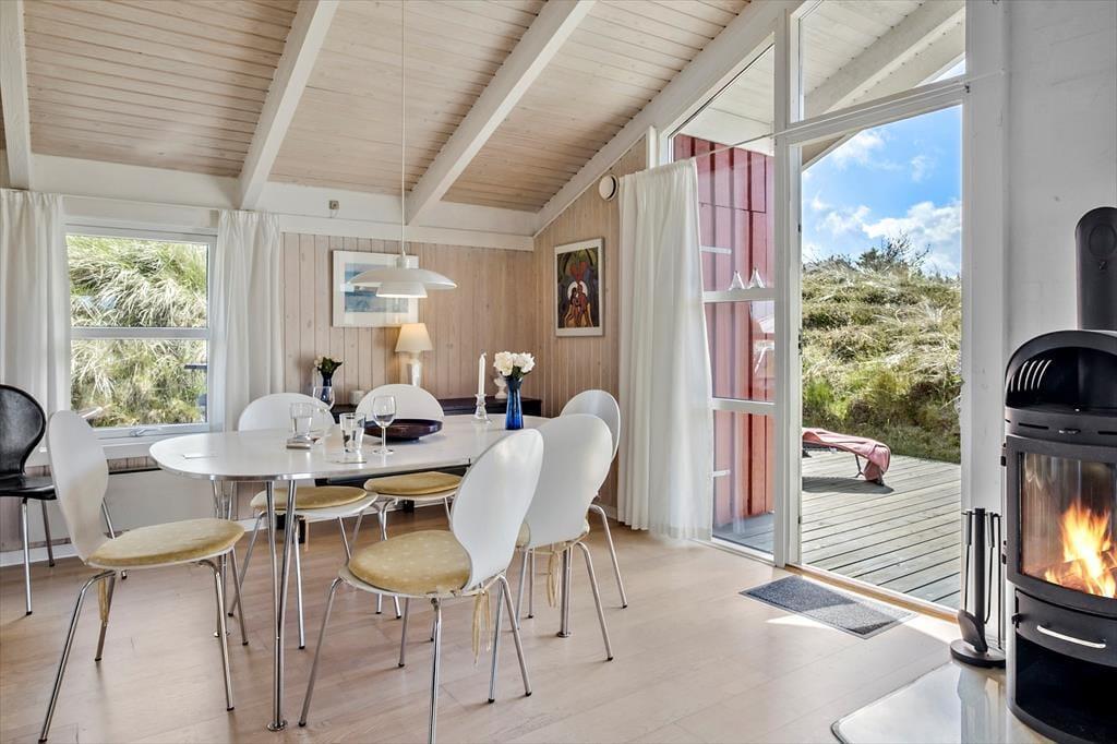 Von Ihrem Ferienhaus in der Sackgasse Faarup Klitvej erreichen Sie nach knapp 700 Metern den Saltum Strand. Es wird Sie gleich mehrfach pro Tag zu Fuß an den Strand ziehen, an dem Sie nach Herzenslust baden und die herrliche Aussicht über die Nordsee bewundern können. Kleine Wege und Pfade führen Sie durch die Küstenlandschaft und durch das beschauliche Ferienhausgebiet. Auf Ihren eigenen oder auf gemieteten Fahrrädern brechen Sie zu schönen Erkundungstouren auf. Ihren Kindern werden Sie mit einem aufregenden Tag im Vergnügungspark Fårup Sommerland ein breites Lachen auf das Gesicht zaubern. Nicht weniger vergnügt geht es während einer Runde Minigolf auf der tollen Anlage des Jambo Feriepark zu. In der Ortschaft Saltum treffen Sie auf eine gute Einkaufsmöglichkeit. Zu den schönen Ausflugszielen gehört der lebendige Badeort Blokhus, in dem sich diverse Geschäfte, schöne Cafés und gute Restaurants, der Skulpturenpark und viele andere Dinge auf Ihren Besuch freuen.