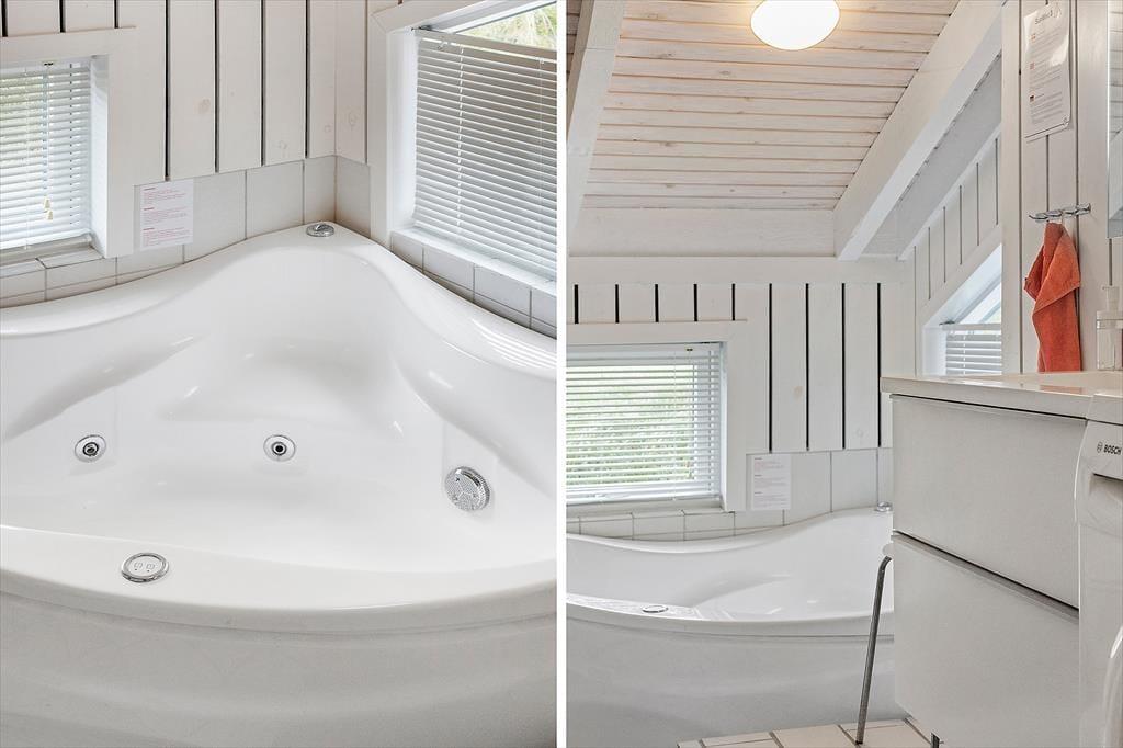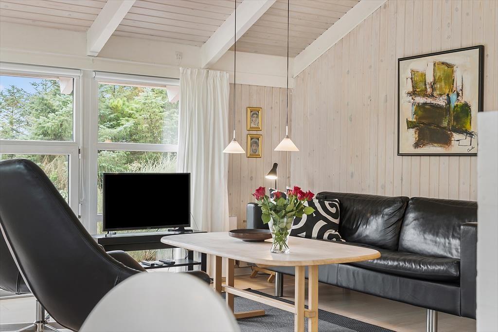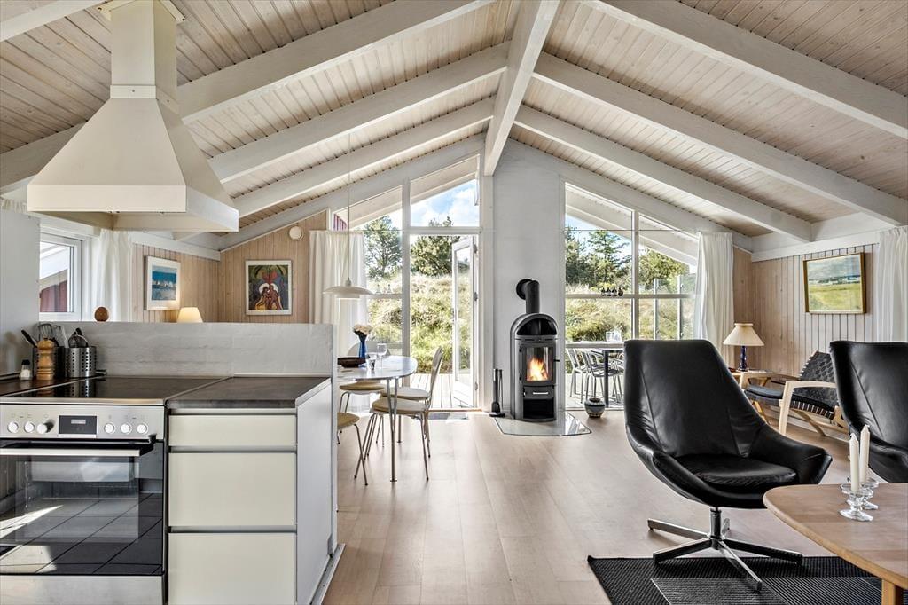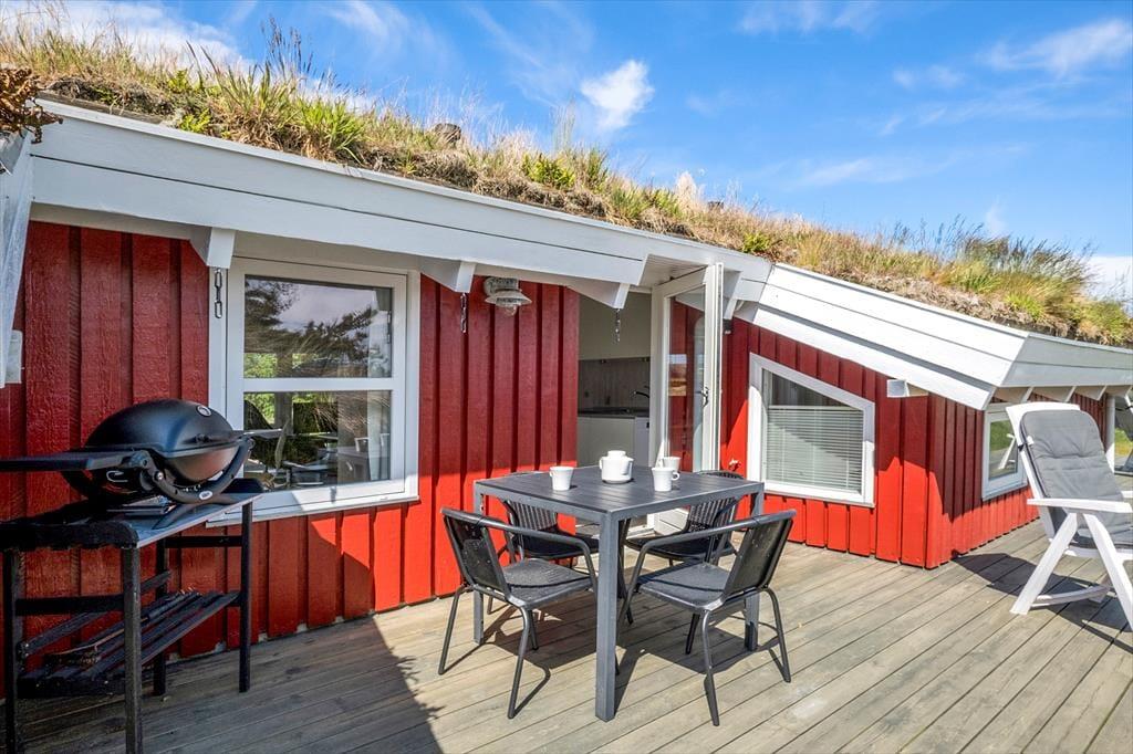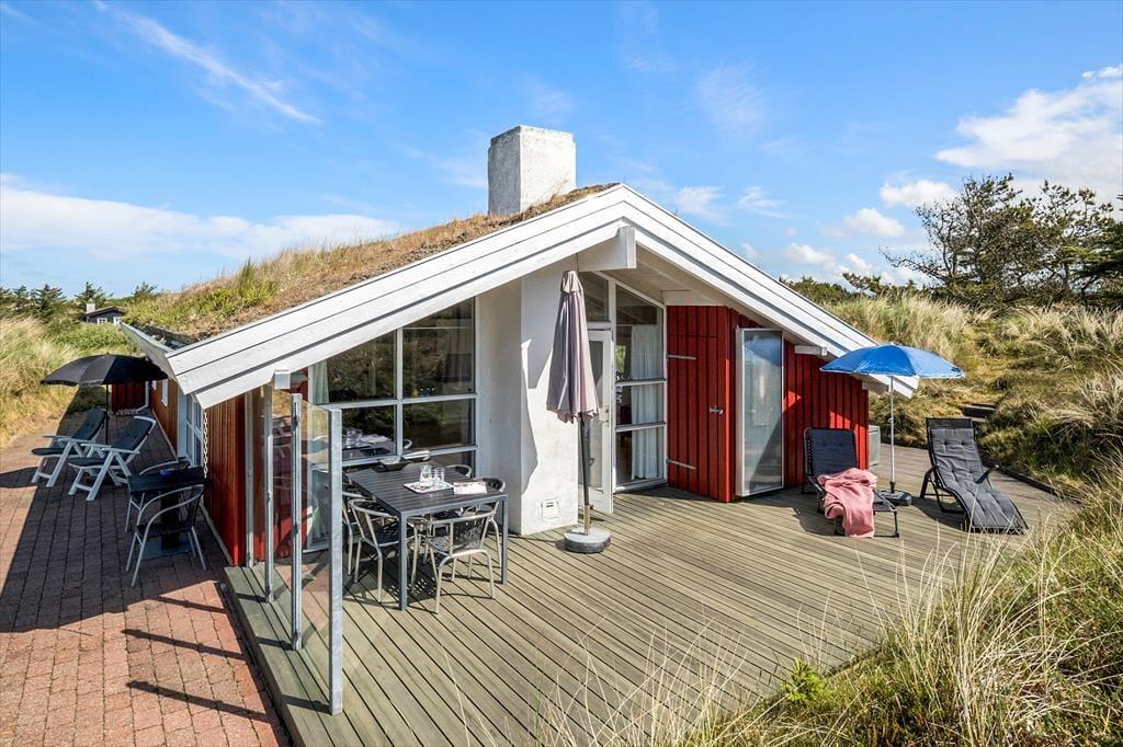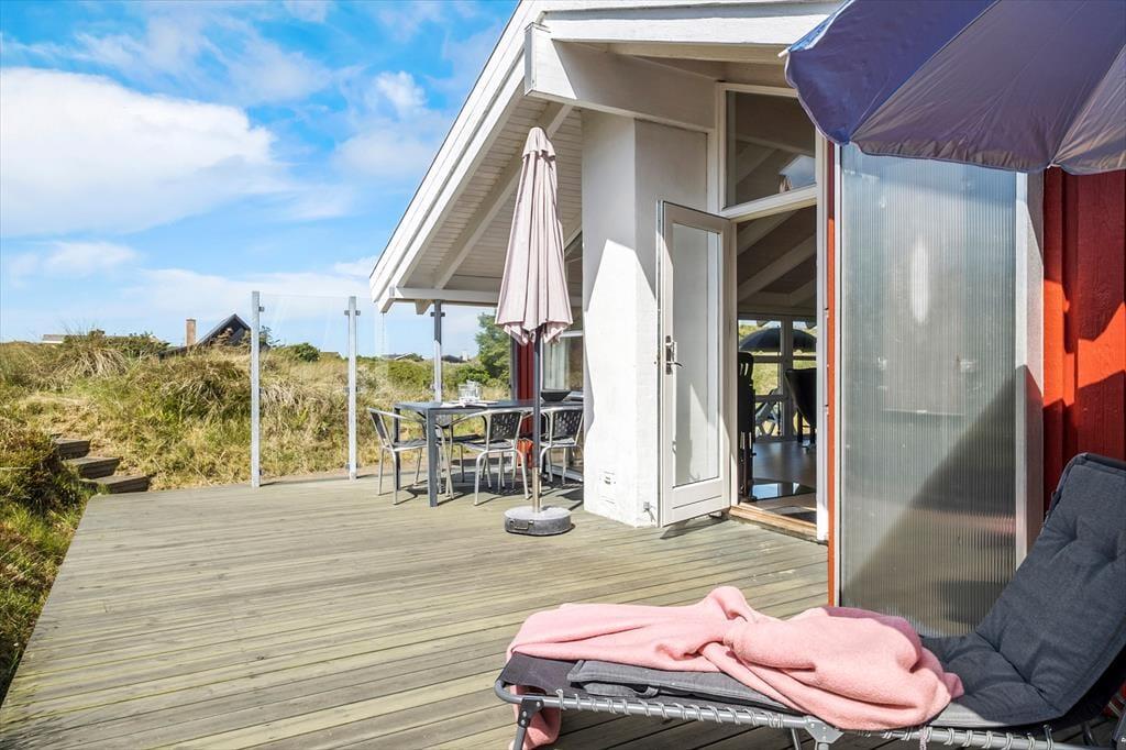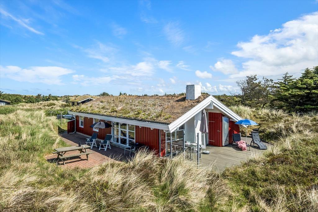 Dieses gemütliche und gut eingerichtete Holzferienhaus, das mit einem Whirlpool, einer Sauna und anderen verwöhnenden Details besticht, befindet sich in einer kleinen Sackgasse inmitten der reizvollen Dünenlandschaft Saltums.