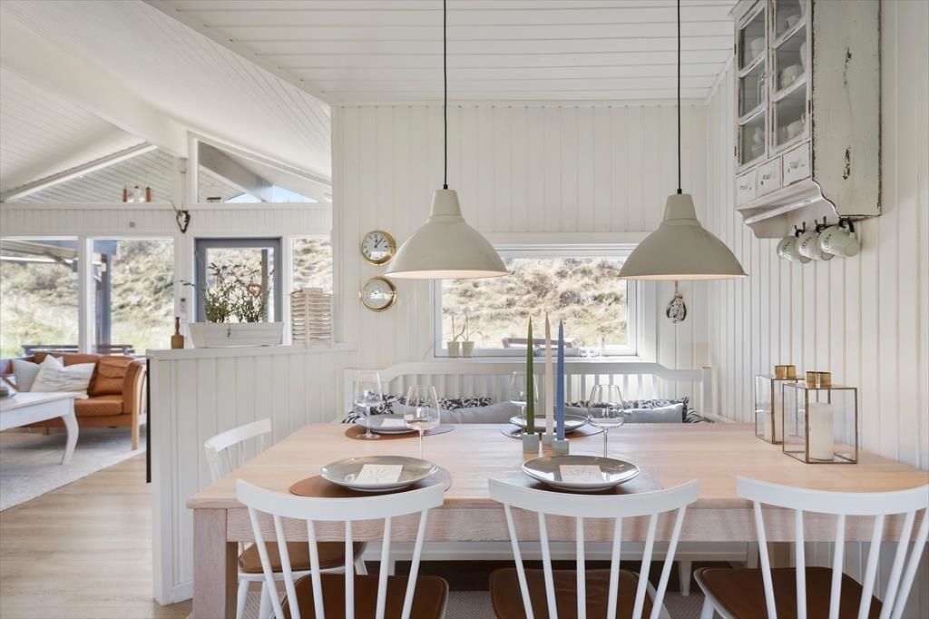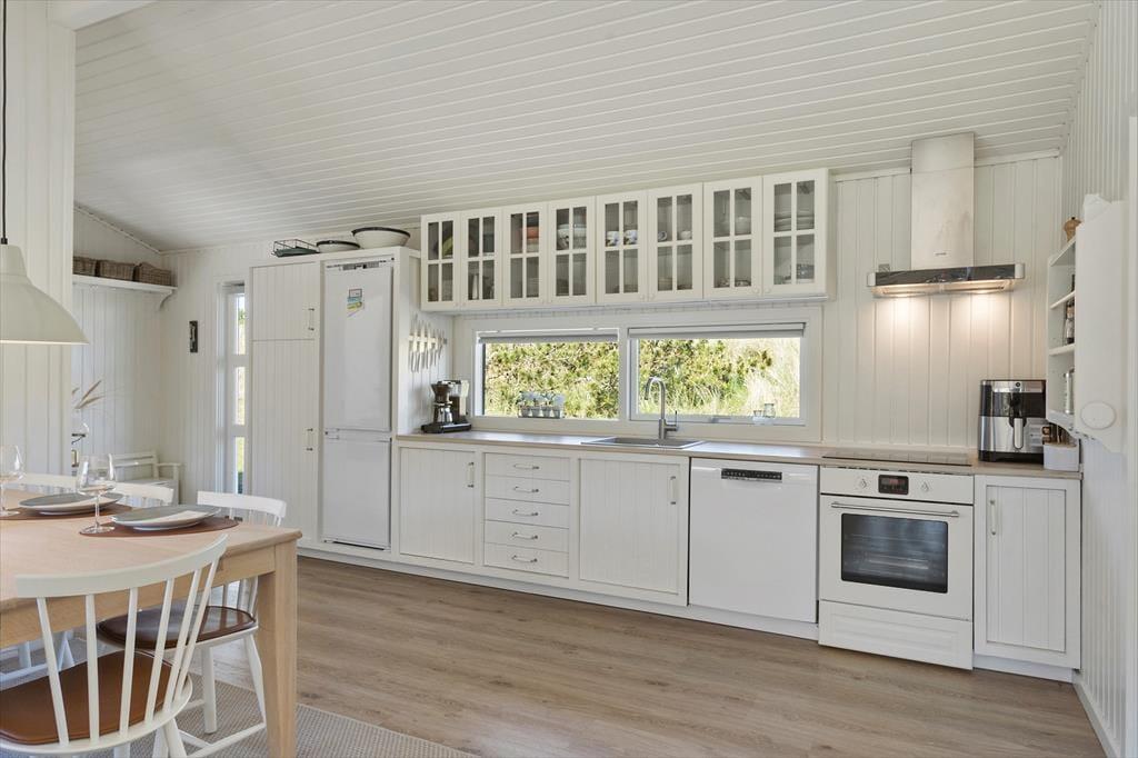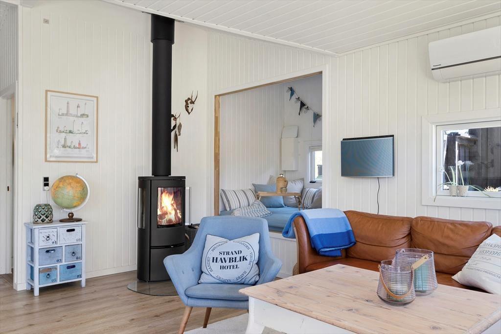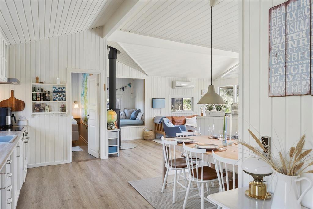 Wenn du das Ferienhaus auf der Foraarsvangen 18 betrittst, wirst du von einer hellen und einladenden Atmosphäre empfangen. Das Haus ist mit Liebe zum Detail eingerichtet, und die vielen kleinen Ecken und Ebenen schaffen eine ganz besondere Gemütlichkeit. Das Wohnzimmer ist das Herz des Hauses, wo große Fenster das Tageslicht hereinströmen lassen und die Natur hereinholen. Hier kannst du dich vor dem Kaminofen entspannen, ein gutes Buch genießen oder dich mit der Familie zu einem gemütlichen Filmabend versammeln. Die Küche ist offen und funktional, perfekt für die Zubereitung leckerer Urlaubsmahlzeiten, die am Esstisch mit Blick auf die schöne Natur genossen werden können.