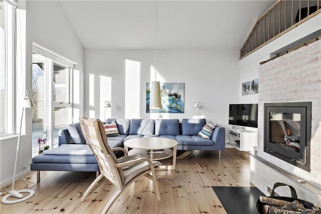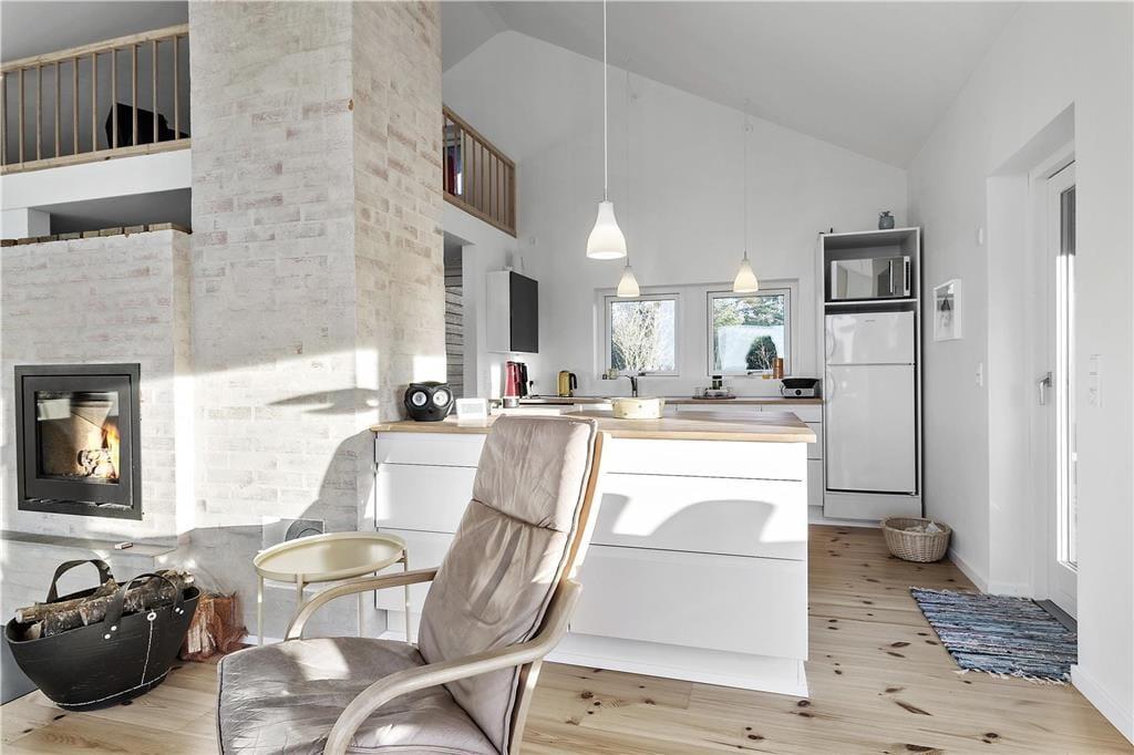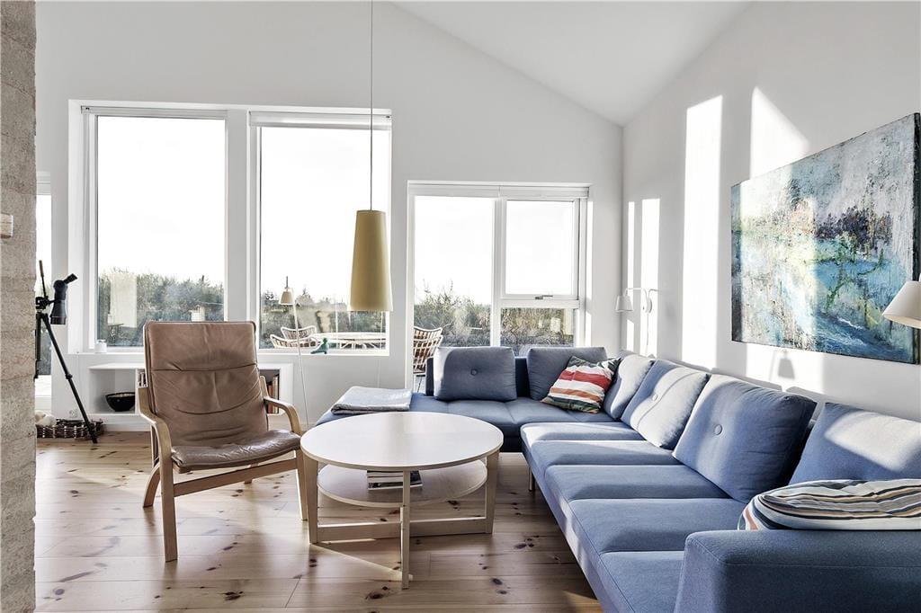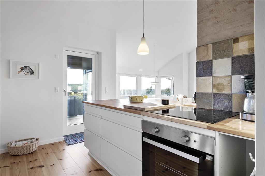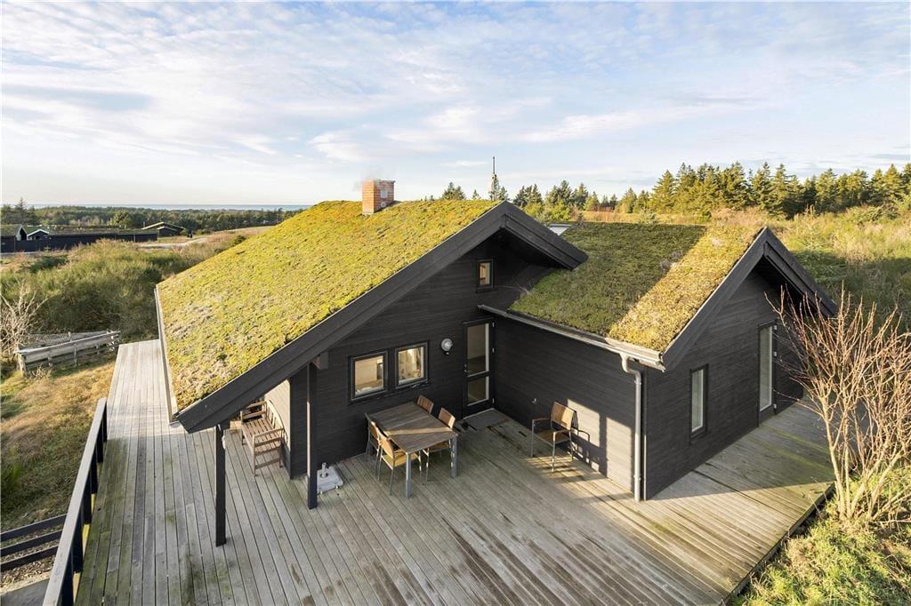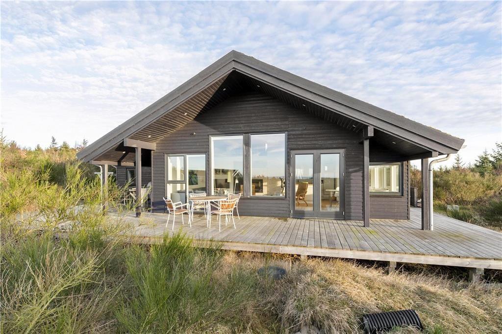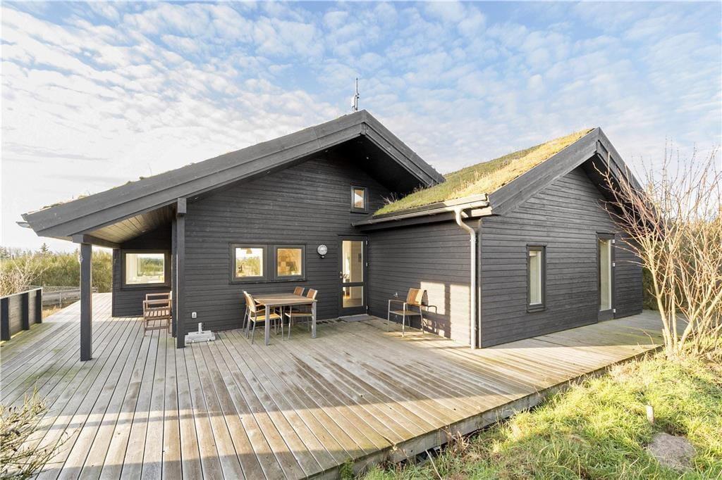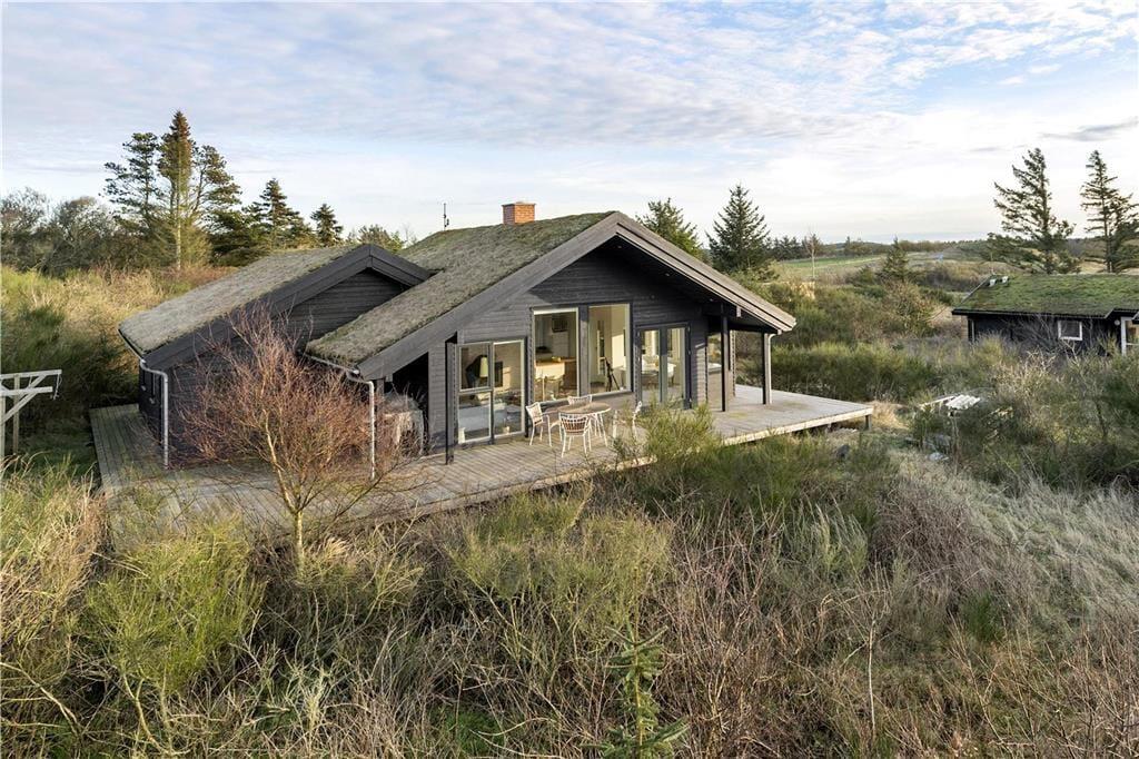 Dieses moderne Ferienhaus stammt aus dem Jahr 2014. Mit seinem begrünten Dach und der schwarzen Holzfassade fügt es sich jedoch wunderbar in die Umgebung ein und vermittelt den Anschein eines ganz klassischen, dänischen Ferienhauses. Im Inneren erwartet Sie hingegen eine perfekte Balance aus stilreinem Design und gemütlichen Details, die für eine überaus angenehme, typische Ferienhausatmosphäre sorgt. Zum Beispiel empfängt Sie die moderne, helle Küche mit besten Bedingungen zum Kochen und Vorbereiten der Mahlzeiten, während der eingebaute Kamin im Wohnraum am Abend für behagliche Wärme und ein Maximum an Gemütlichkeit sorgt. Unabhängig von der Uhr- oder auch der Jahreszeit, wird Sie stets die prachtvolle Aussicht über die Natur begeistern. Dank der erhöhten Lage blicken Sie sogar bis auf die Nordsee am Horizont. Das Haus verfügt neben dem fantastischen Wohnraum samt integrierter Küchenabteilung über ein modernes, geschmackvolles Badezimmer und drei gute Schlafräume mit insgesamt sechs Schlafplätzen.