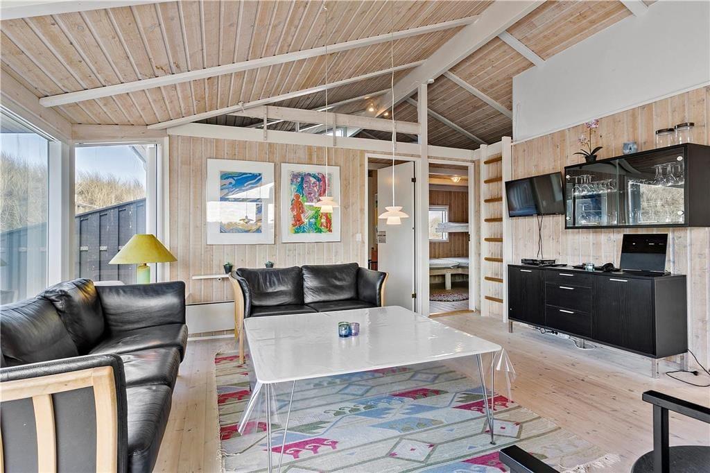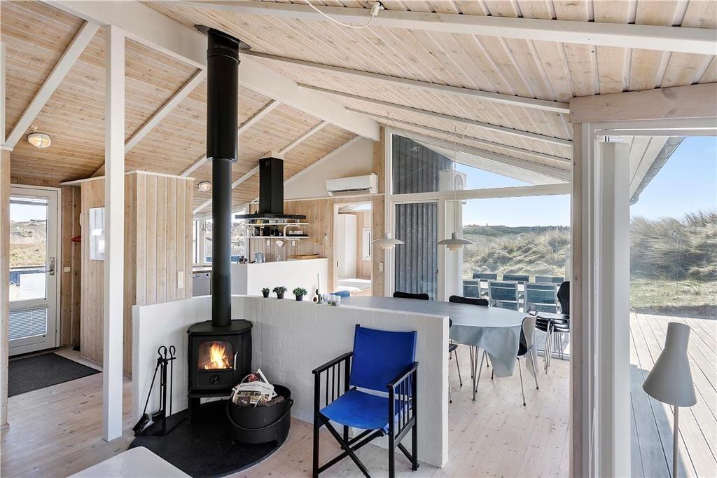 Modernes und stilvoll eingerichtetes Ferienhaus mit tollen Lichtverhältnissen aufgrund der vielen Fensterpartien. Küche und Badezimmer sind mit hochwertigen Elektrogeräten ausgestattet, sodass Sie einen entspannten Urlaub mit der Familie im Mittelpunkt verbringen können. Im Badezimmer können Sie den Whirlpool mit heißem Wasser befüllen und die Sauna einschalten, falls nach einem langen Tag am Strand oder Ausflug in Nordjütland ein bisschen Wellnessstimmung gewünscht ist. Das Ferienhaus bietet einen großen Wohn-Küchenbereich mit Kamin, Badezimmer und drei Schlafzimmern für insgesamt sechs Gäste und eignet sich somit für einen Familien- oder Paarurlaub. Denken Sie an Ihren Laptop oder Tablet, weil das Haus über kostenloses WLAN verfügt.