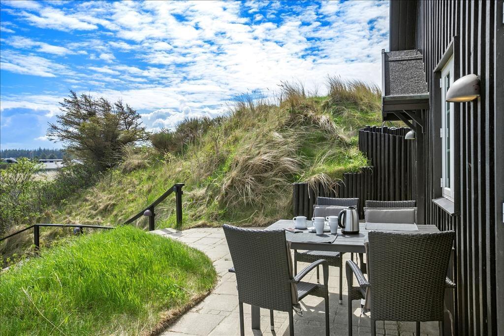 Wenn du auf die große Terrasse trittst, kannst du wirklich die frische Luft und die friedliche Natur um dich herum spüren. Die geräumige Terrasse ist der perfekte Ort, um die Sonnenstrahlen zu genießen, und mit dem Meerblick vor dir bekommst du das ultimative Urlaubsgefühl. Der Terrassenbereich ist sowohl für Entspannung als auch für Aktivitäten konzipiert, und hier kannst du an einem warmen Sommertag im Freien essen oder mit einem guten Buch entspannen, während du das Rauschen der Wellen im Hintergrund hörst. Das wunderschöne Naturgrundstück bietet die Möglichkeit für lange Spaziergänge im Grünen, und du bist nie weit vom Strand entfernt, wenn du deine Füße ins Wasser des Nordsees tauchen möchtest.