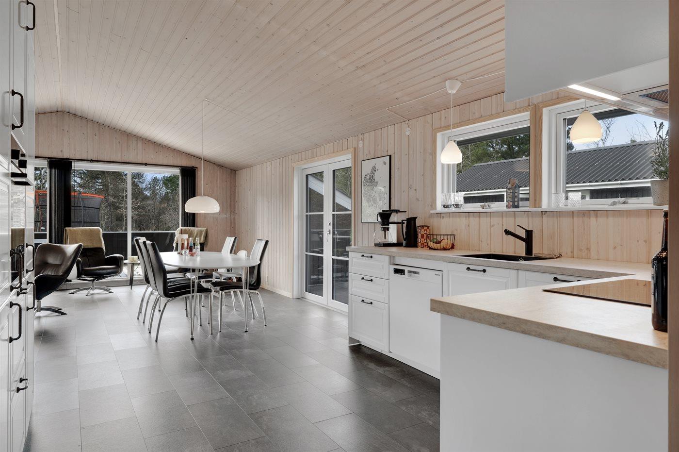 Willkommen in diesem besonders schönen Ferienhaus, das am Ende einer Sackgasse, in ruhiger und naturnaher Gegend liegt. Das Haus tritt gepflegt und einladend hervor mit einer neuen, modernen Küche, die den perfekten Rahmen für das gemeinsame zubereiten der Mahlzeiten anbietet. Die herrliche überdachte Terrasse lädt zum Entspannen und zum gemütlichen Beisammensein ein – egal bei welchem Wetter.