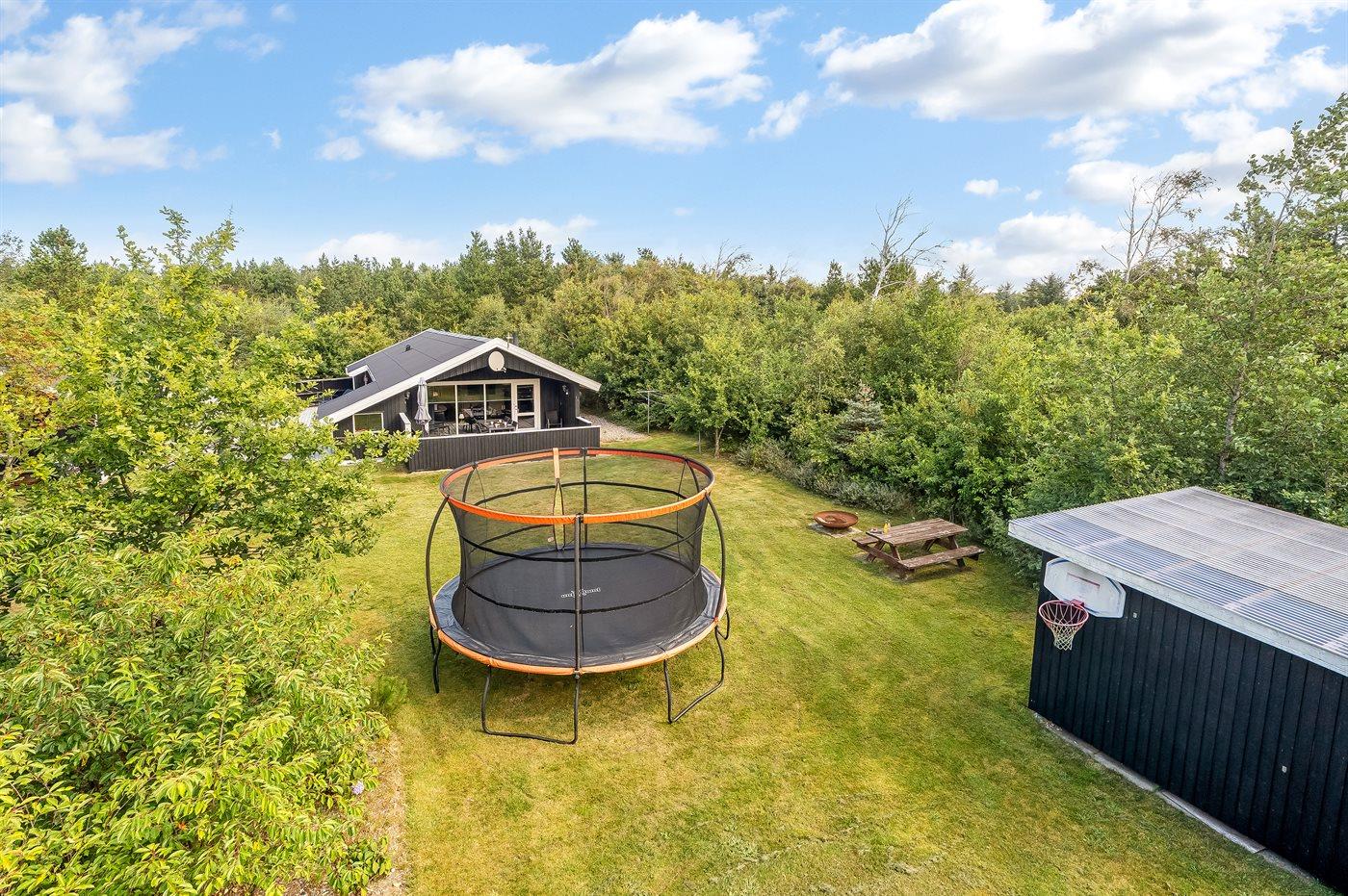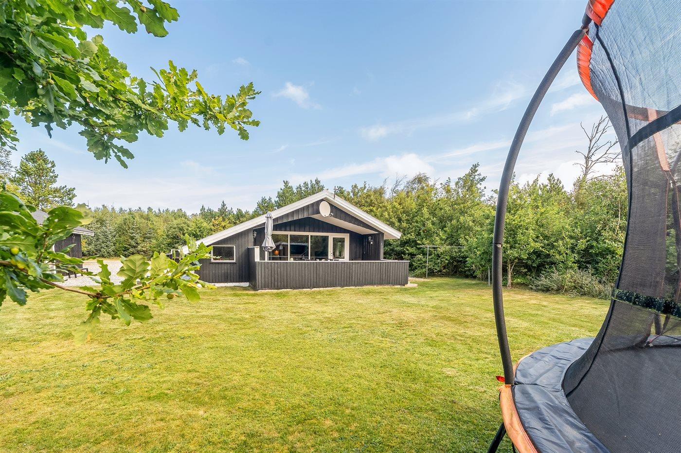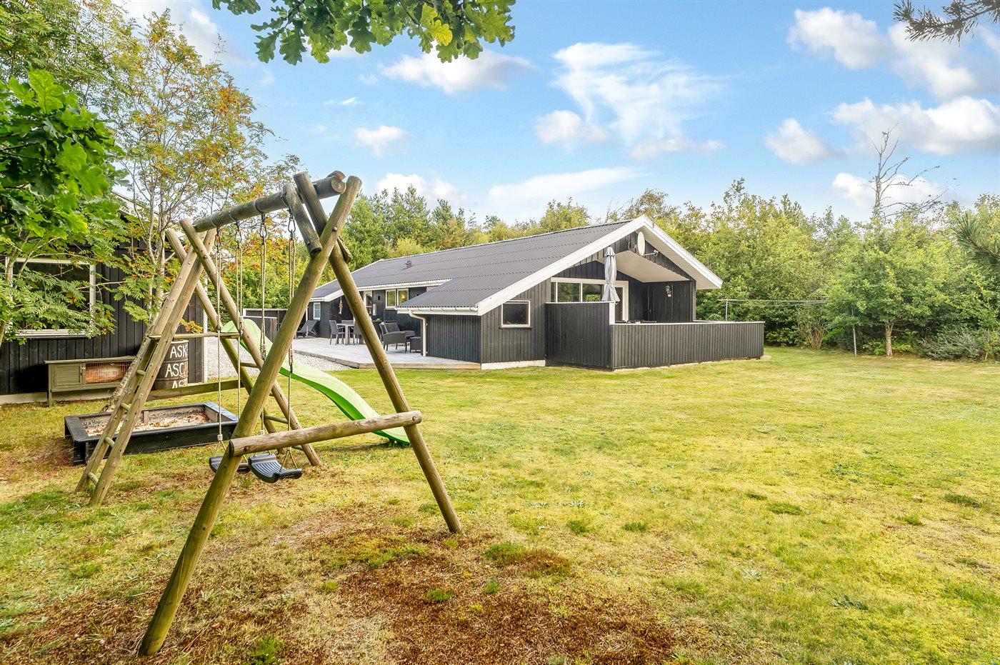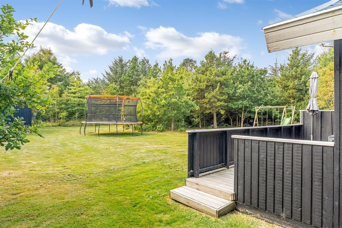 Die Ferienunterkunft liegt auf einem 1427 m² großen Naturgrundstück. Die Entfernung zum Meer beträgt 2300 m. Die nächste Einkaufsmöglichkeit liegt 2600 m entfernt. Es steht ein 75 m² Terrassenareal zur Verfügung. Außerdem gibt es 10 m² überdachte Terrasse. Geräteraum. Sandkasten. Trampolin. Rutsche. Es steht ein Grill zur Verfügung. Parkplatz auf dem Grundstück.