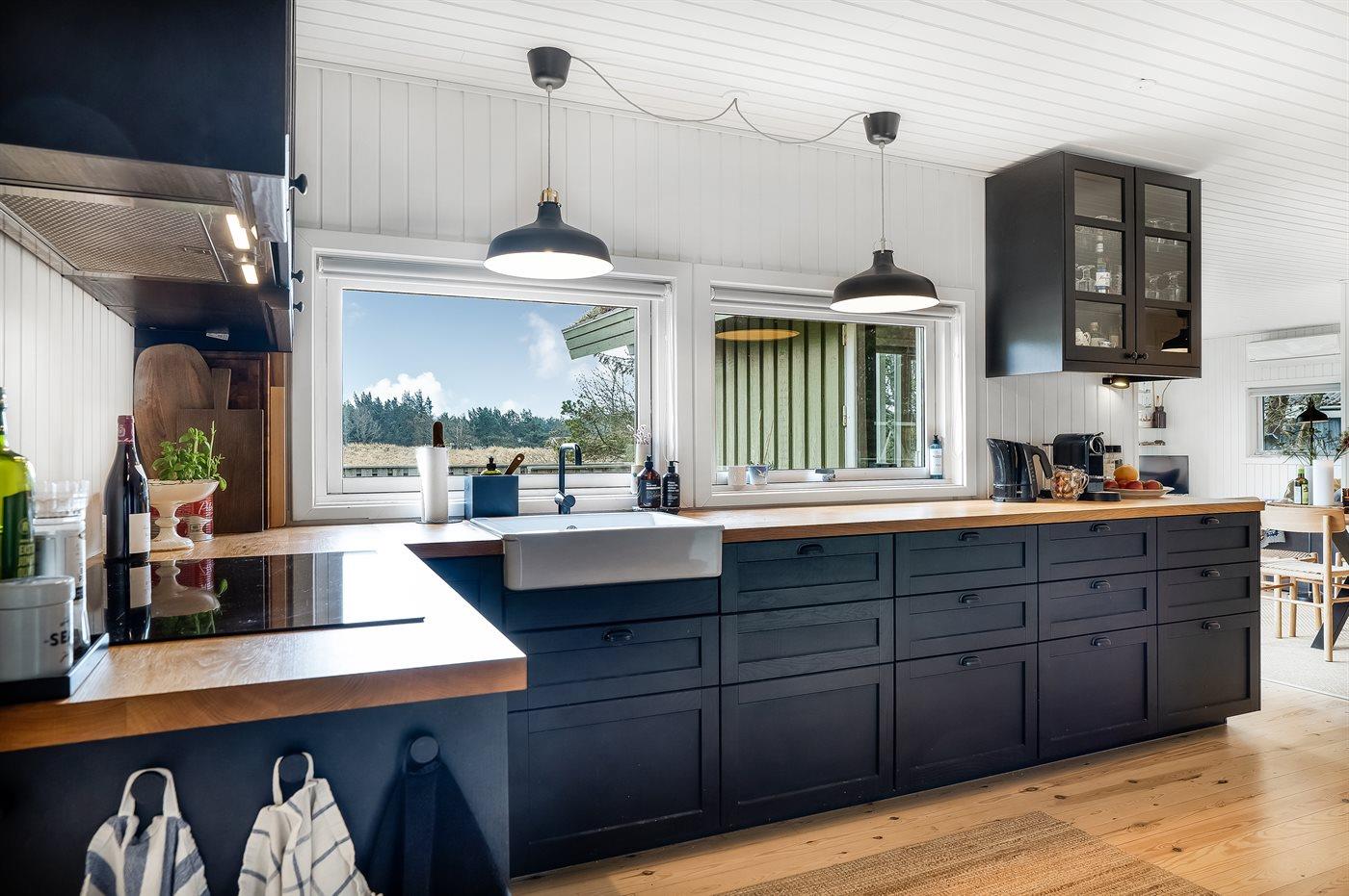 Ein Schönes Ferienhaus, umgeben von toller Natur in einer attraktiven Gegend am Meer gelegen. Badestrand, Einkaufsmöglichkeit und Fårup Sommerland befinden sich in der Nähe.