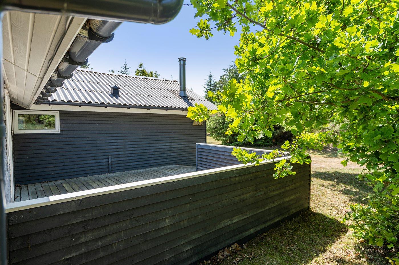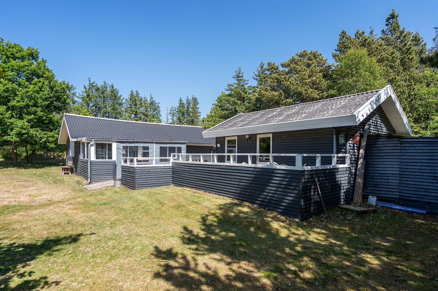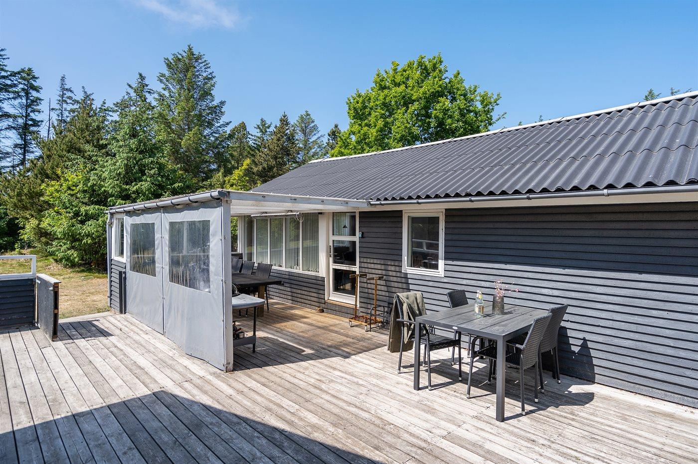 Ein schönes Ferienhaus mit einer großen und teilweise überdachten Terrassenfläche – nur 700 m vom Badetrand bei Saltum entfernt.