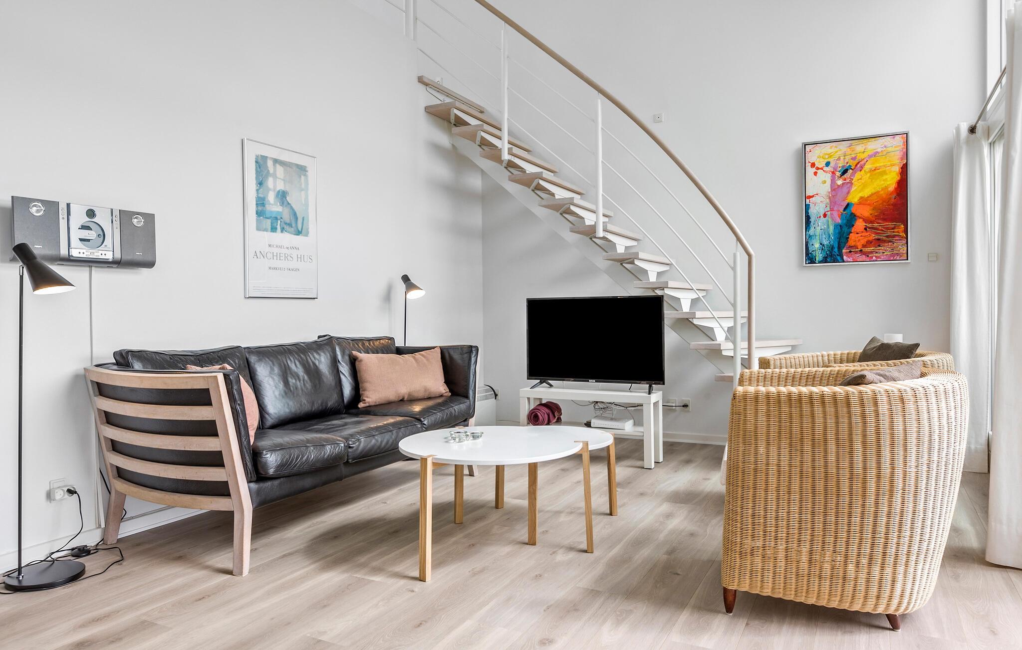 Moderne Ferienwohnung mit Meerblick, Sauna und Golfplatznähe für einen erholsamen Urlaub in Dänemark.