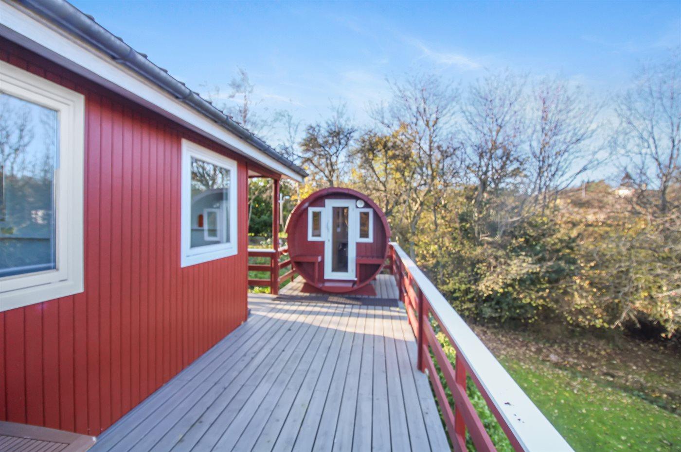 Charmantes Ferienhaus mit Meerblick, Sauna und großer Terrasse in Allinge, Dänemark.