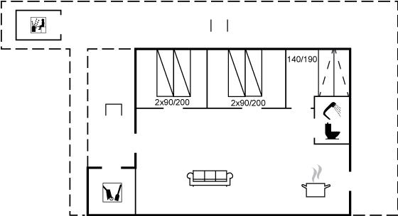 Die Schlafplätze verteilen sich auf 3 Schlafräume. 4 Schlafplätze in Einzelbetten. 2 Schlafplätze auf einer Doppelschlafcouch. Ferner steht ein Kinderbett zur Verfügung.