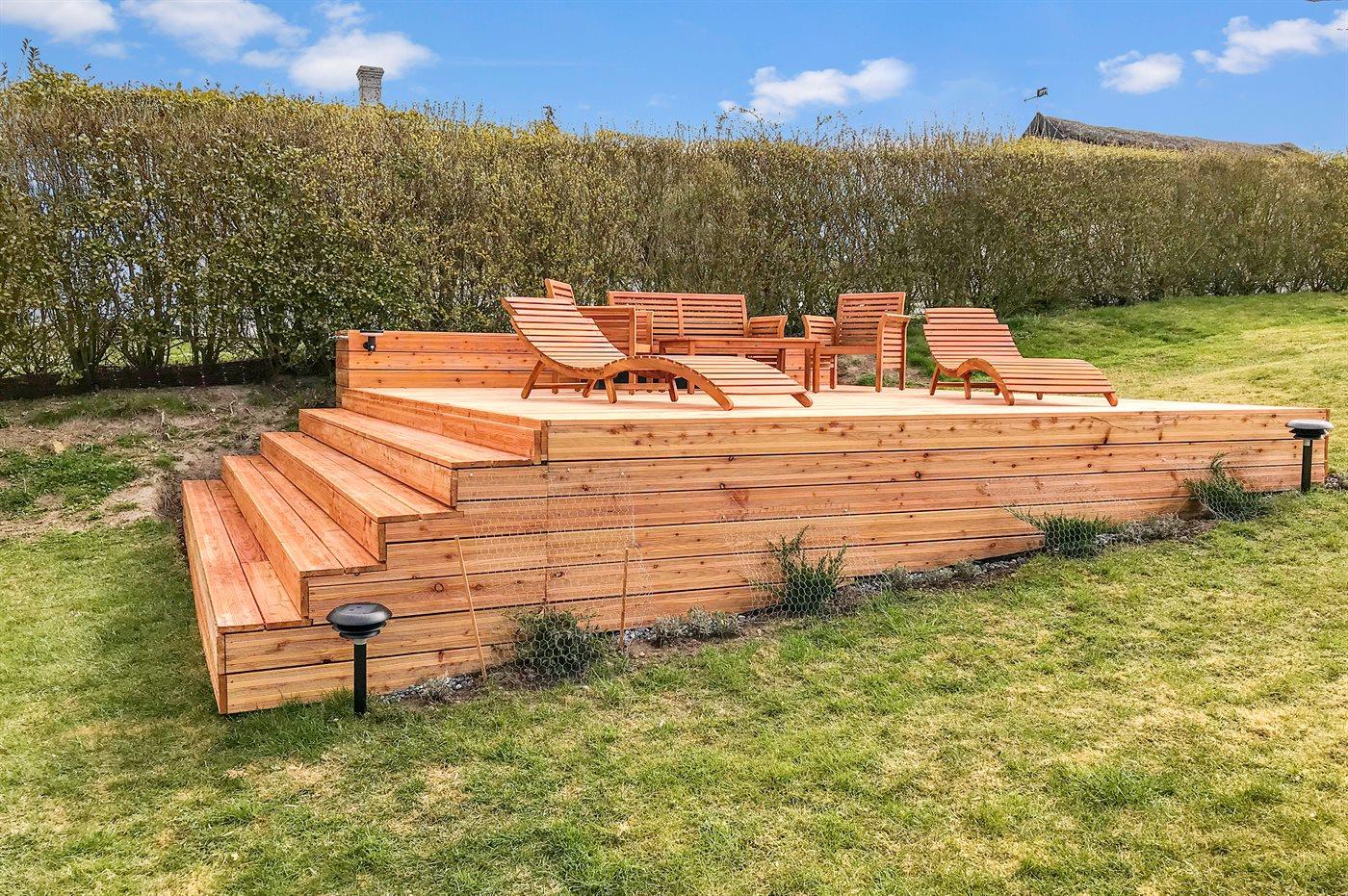 Die Ferienunterkunft liegt auf einem 1452 m² großen Naturgrundstück. Die Entfernung zum Meer beträgt 500 m. Die nächste Einkaufsmöglichkeit liegt 1000 m entfernt. In einem Abstand von 10000 m gibt es einen Golfplatz. Es steht ein 45 m² Terrassenareal zur Verfügung. Außerdem gibt es 5 m² überdachte Terrasse. Geräteraum. Außensauna. Außendusche mit kaltem Wasser. Es ist ein Ladestecker für Elektroautos installiert. Parkplatz auf dem Grundstück.