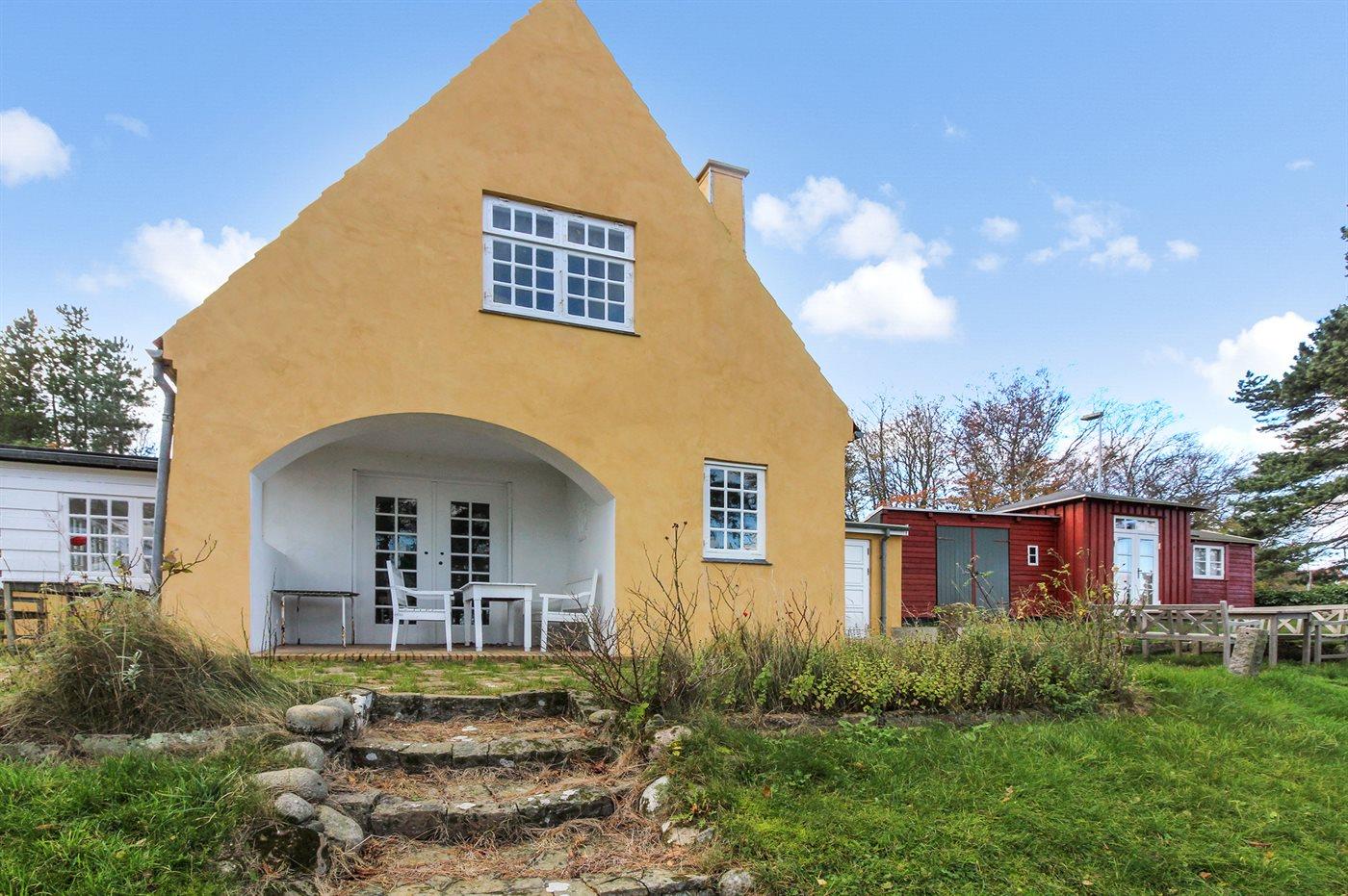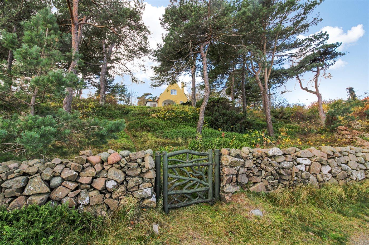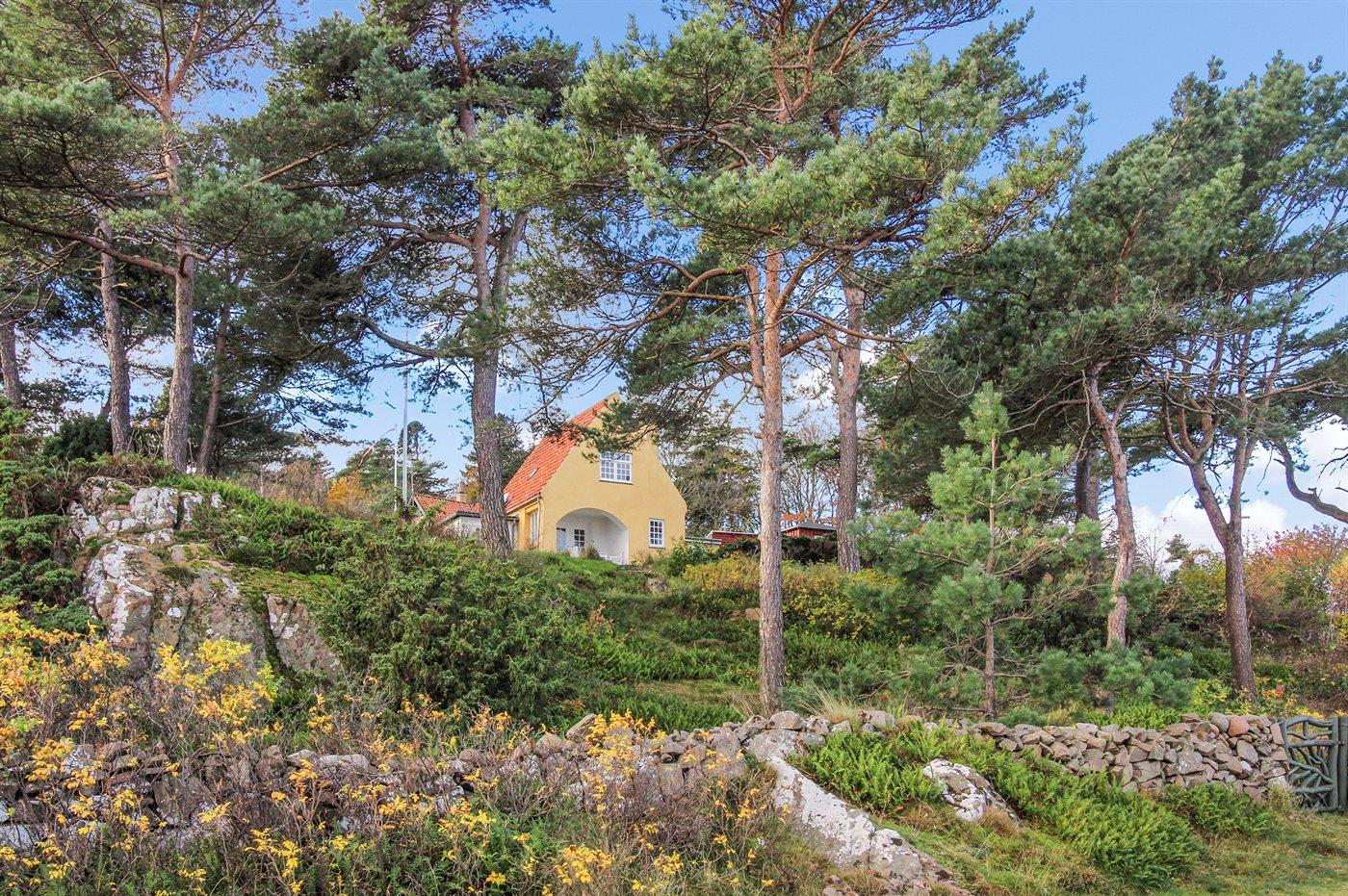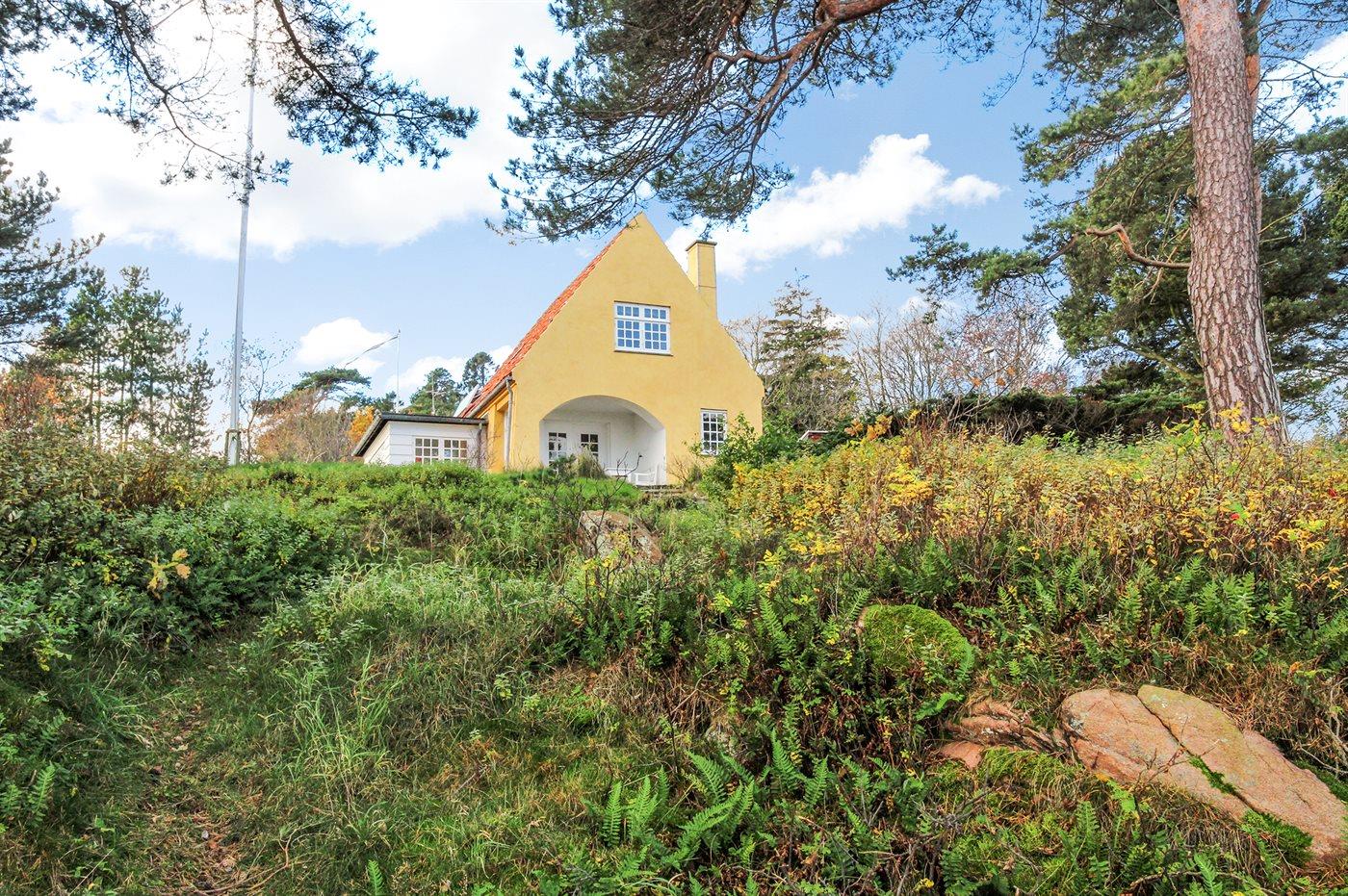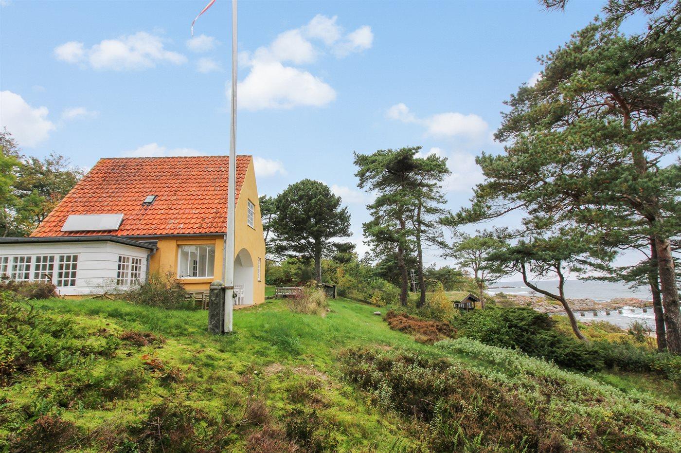 Charmantes Ferienhaus an der Felsenküste mit Meerblick und überdachter Terrasse in Allinge, Dänemark.