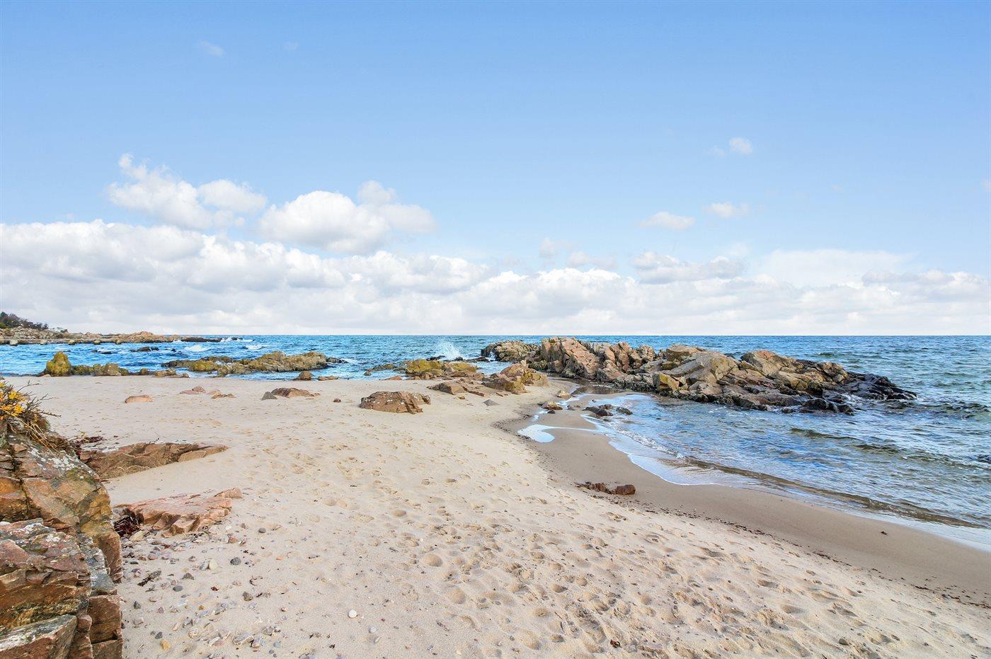 Die Ferienunterkunft liegt auf einem 2517 m² großen Naturgrundstück. Die Entfernung zum Meer beträgt 75 m. Es gibt einen Badesteg in der Nähe. Die nächste Einkaufsmöglichkeit liegt 1200 m entfernt. In einem Abstand von 8200 m gibt es einen Golfplatz. Es steht ein offenes Terrassenareal zur Verfügung. Außerdem gibt es überdachte Terrasse. Zutritt zu einem Wintergarten. Parkplatz auf dem Grundstück.