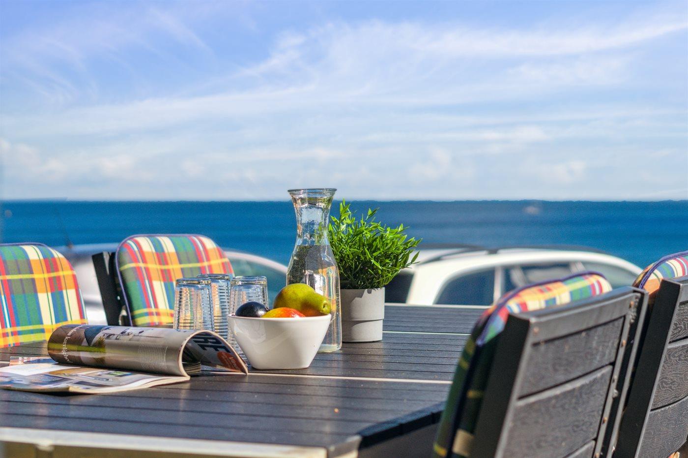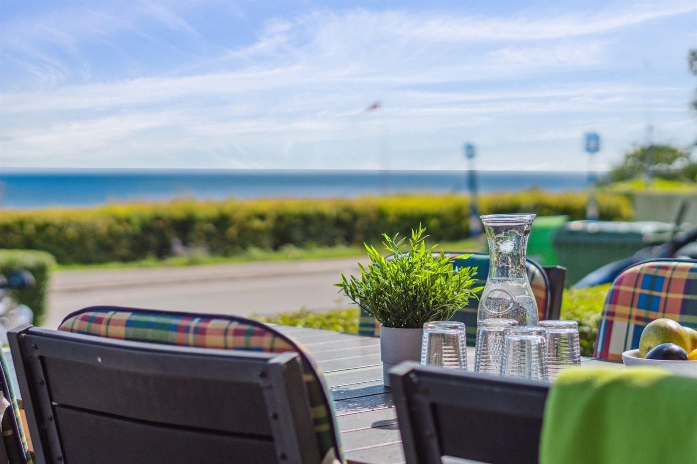 Ferienwohnung im Erdgeschoss mit fantastischem Blick auf die Ostsee vom Wohnzimmer und einem Schlafzimmer. Die Wohnung ist schön und ordentlich eingerichtet und lädt zu einem schönen Urlaub auf Nordbornholm ein.