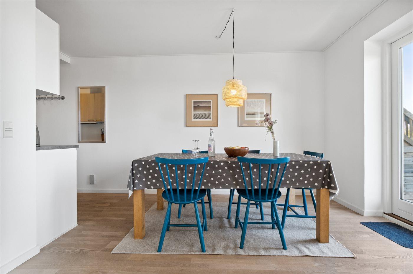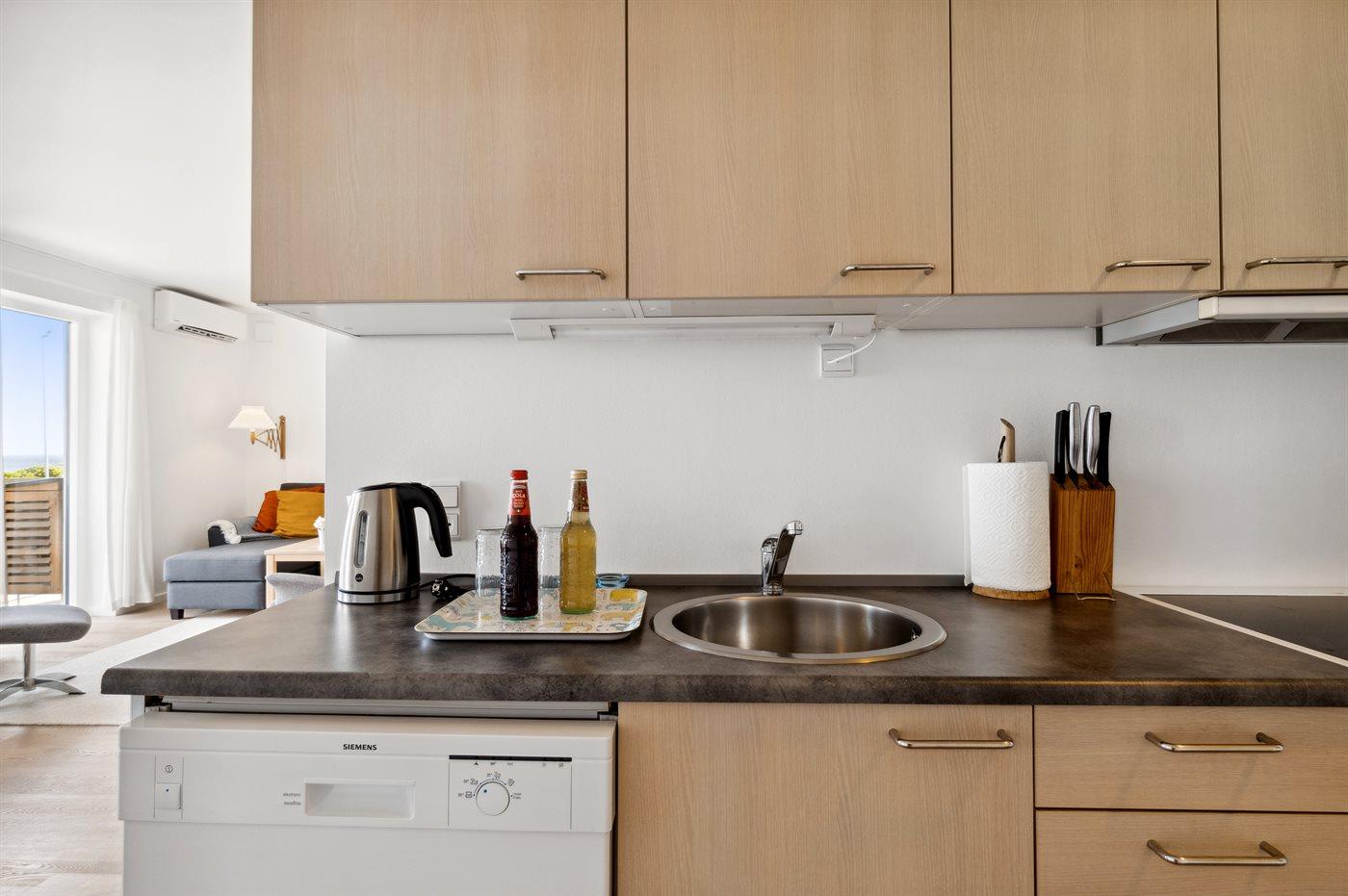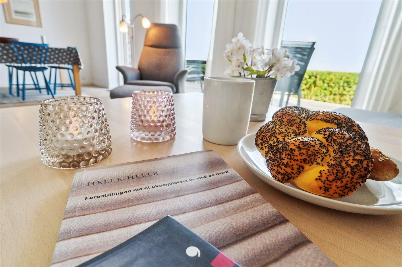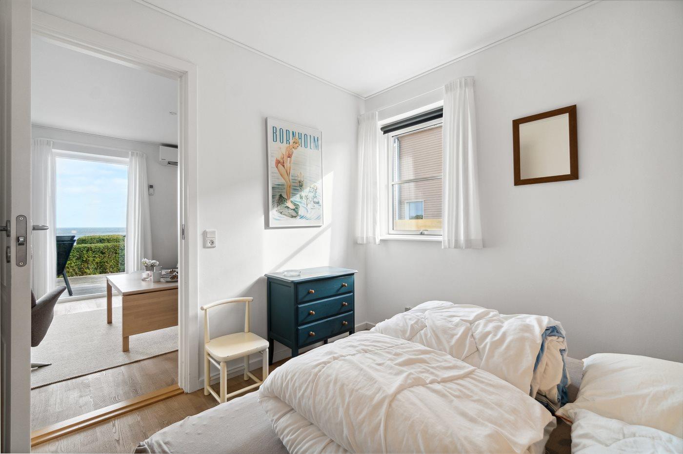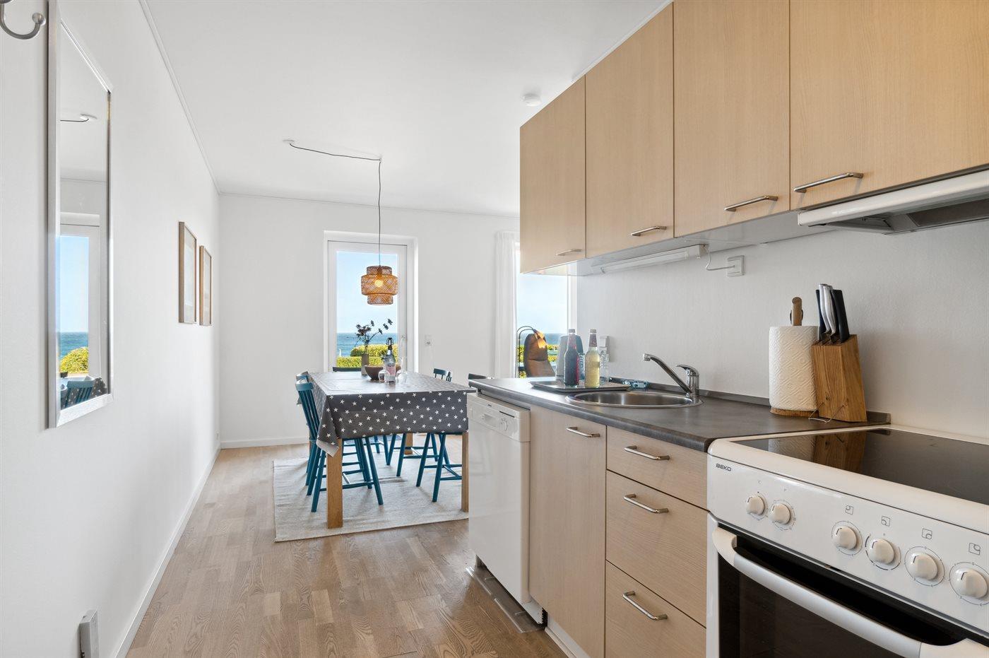 Genießen Sie eine helle Ferienwohnung mit Panoramablick auf die Ostsee und nur 75 m vom Sandstrand in Sandkås entfernt.