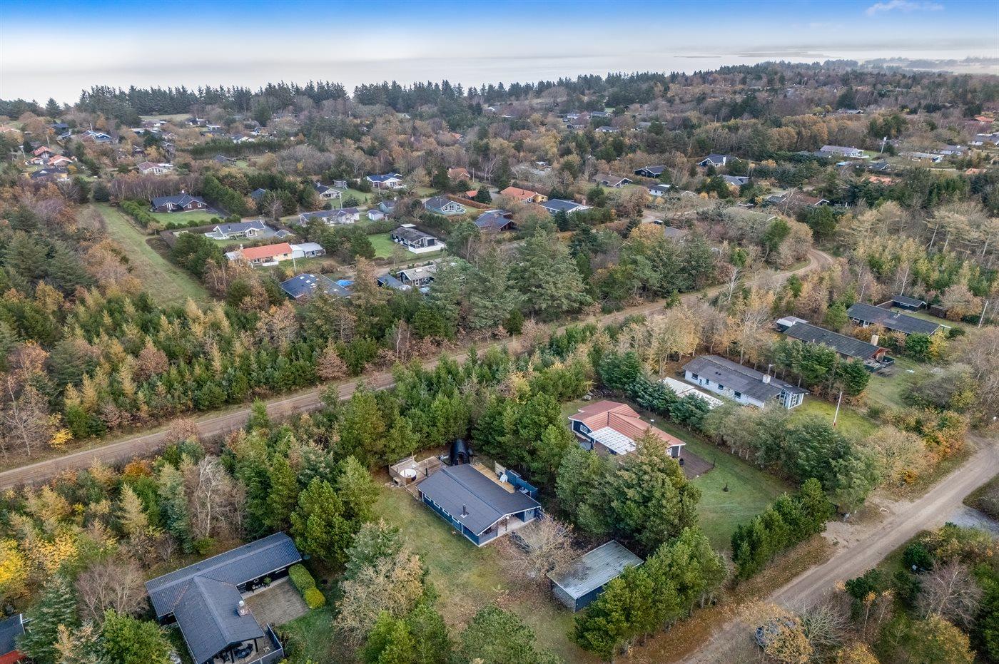 Die Ferienunterkunft liegt auf einem 986 m² großen Naturgrundstück. Das Grundstück ist eingezäunt. Die Entfernung zum Fjord beträgt 500 m. Die nächste Einkaufsmöglichkeit liegt 1200 m entfernt. Es steht ein offenes Terrassenareal zur Verfügung. Außerdem gibt es überdachte Terrasse. Außensauna. Es steht ein Carport zur Verfügung. Parkplatz auf dem Grundstück.