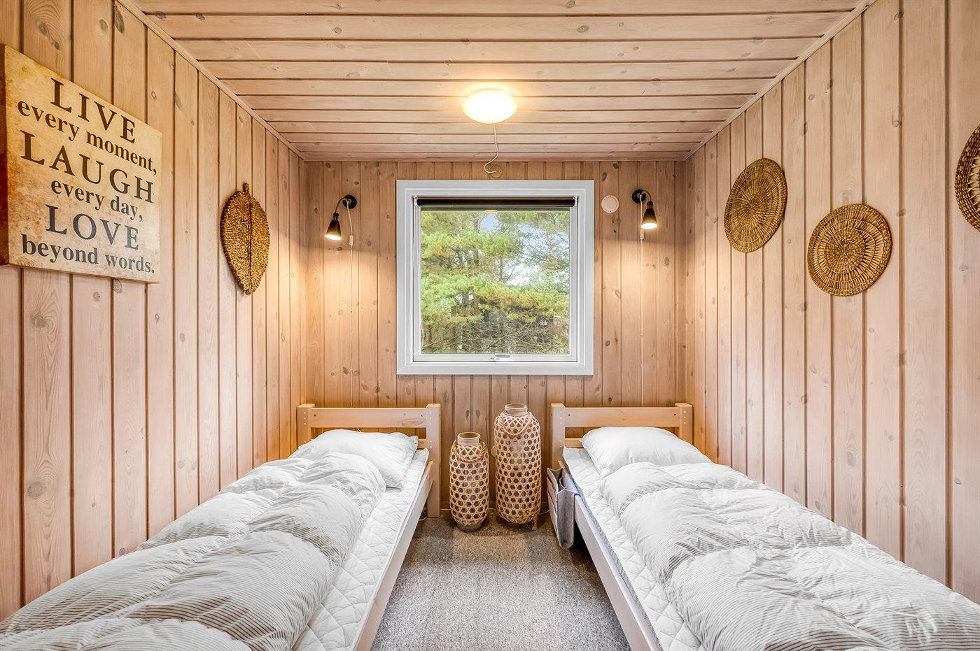 Die Schlafplätze verteilen sich auf 2 Schlafräume. 2 Schlafplätze in einem Doppelbett. 2 Schlafplätze in Einzelbetten.