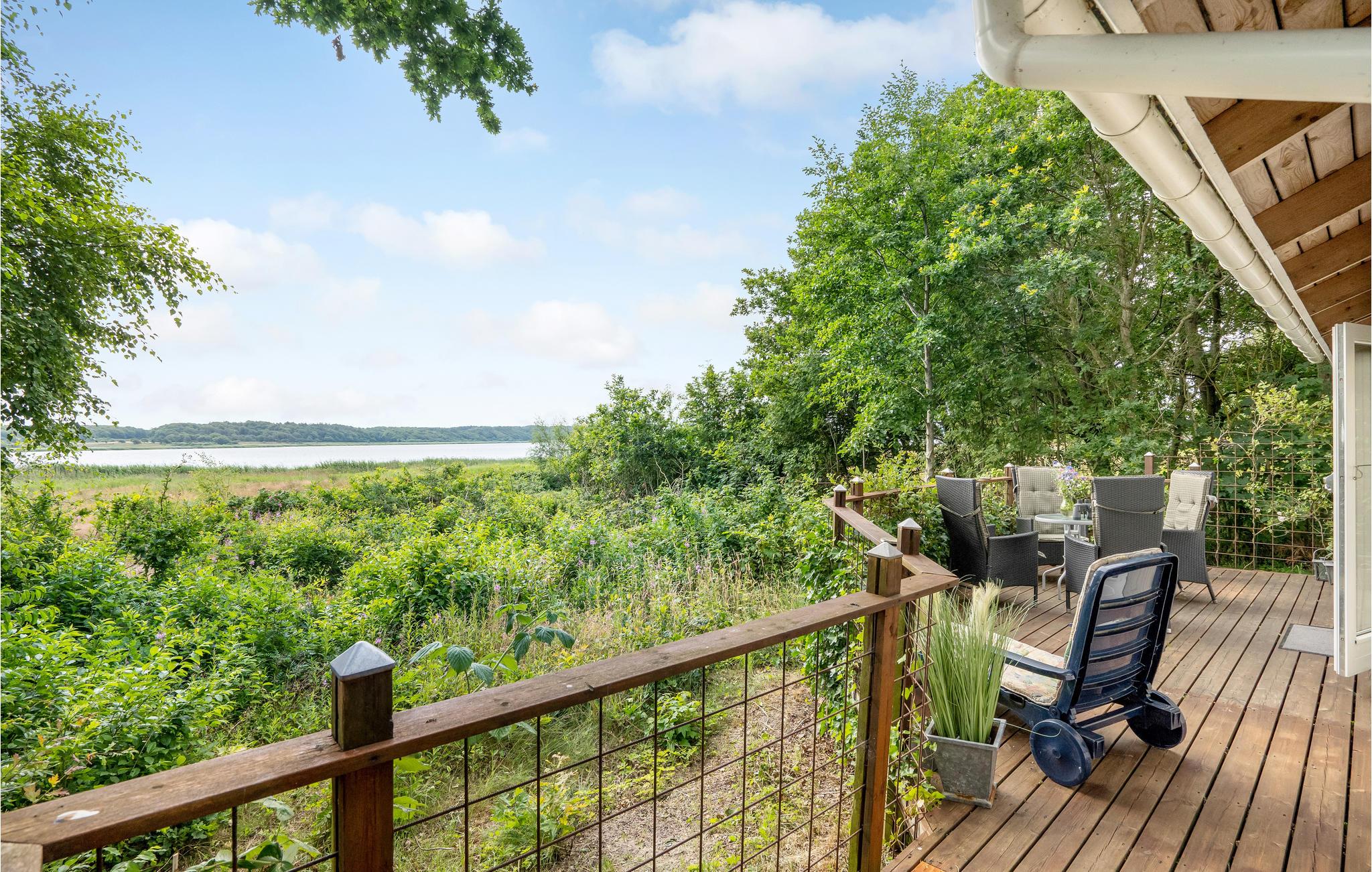 Auf der großen Holzterrasse finden Sie mehrere Ecken für entspannte Stunden im Freien. Frühstücken Sie am Gartentisch in der idyllischen Atmosphäre und lassen Sie beim Blick auf das Wasser den Tag herrlich ausklingen. Hier lässt sich das Leben in aller Ruhe genießen.