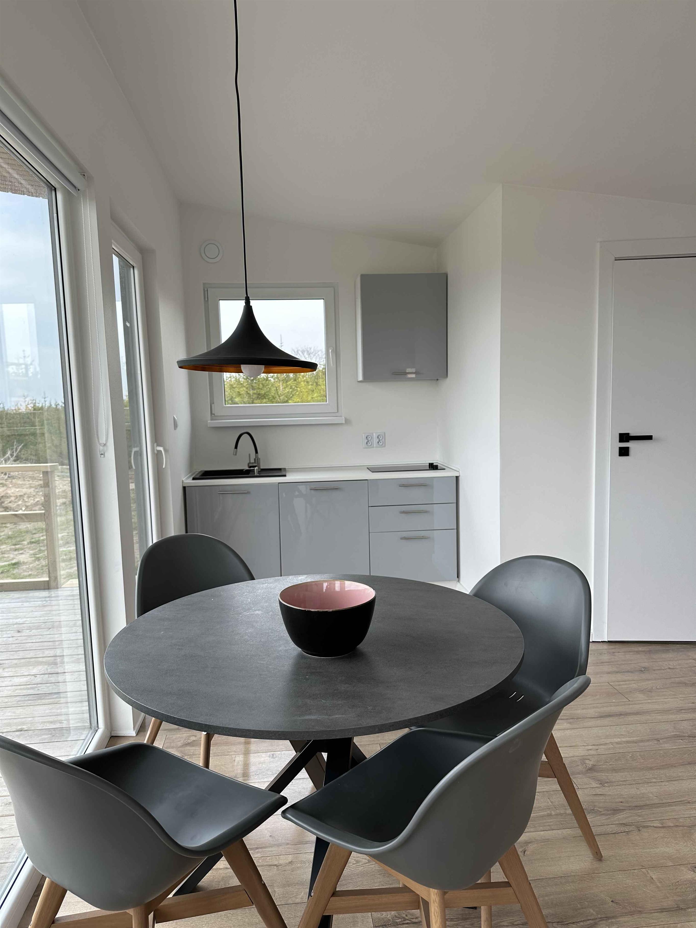 Tiny Houses auf dem Sejerø Campingplatz sind eine charmante und einzigartige Unterkunftsmöglichkeit, gelegen auf dem Pedersbjerg – einem Hügel mit spektakulärer Aussicht auf Sonnenaufgänge und Sonnenuntergänge sowie einem Panoramablick über die Hügel und das Meer. Diese neu erbauten Häuser sind so gestaltet, dass sie einen intimen und gemütlichen Aufenthalt bieten und sind ideal für Gäste, die Natur und Schönheit schätzen. Jedes Tiny House ist minimalistisch in einem einfachen Design eingerichtet und verfügt über Annehmlichkeiten wie eine private Toilette mit Dusche, Schlafmöglichkeiten für bis zu vier Personen – zwei auf einem Schlafsofa und zwei in einer Schlafkabine – sowie eine schöne Terrasse, von der aus die Gäste die atemberaubende Aussicht und Atmosphäre genießen können. Das helle und moderne Interieur schafft eine einladende Atmosphäre, die zur Entspannung und zum Genießen der umliegenden Landschaft einlädt. Ein Aufenthalt in diesen neuen Tiny Houses auf Sejerø gibt den Gästen die Möglichkeit, in die Natur einzutauchen, die Ruhe zu spüren und gleichzeitig leichten Zugang zu Naturerlebnissen und Aktivitäten auf der Insel zu haben. Die malerische Umgebung der Insel lädt zu Wanderungen, Radtouren und entspannenden Spaziergängen entlang des Strandes ein. Es gibt auch Möglichkeiten, das Kulturerbe der Insel und lokale Sehenswürdigkeiten zu erkunden, was ein tieferes Verständnis für dieses einzigartige Reiseziel vermittelt. Mit einer Kombination aus Komfort, Natur und Panoramablick ist ein Tiny House ein idyllisches Ziel für diejenigen, die ein einzigartiges und unvergessliches Erlebnis suchen. Die Tiny Houses werden inklusive Bettwäsche vermietet, jedoch exklusive Reinigung und Stromverbrauch, was den Gästen die Flexibilität gibt, ihren Aufenthalt nach ihren eigenen Bedürfnissen und Vorlieben zu planen.