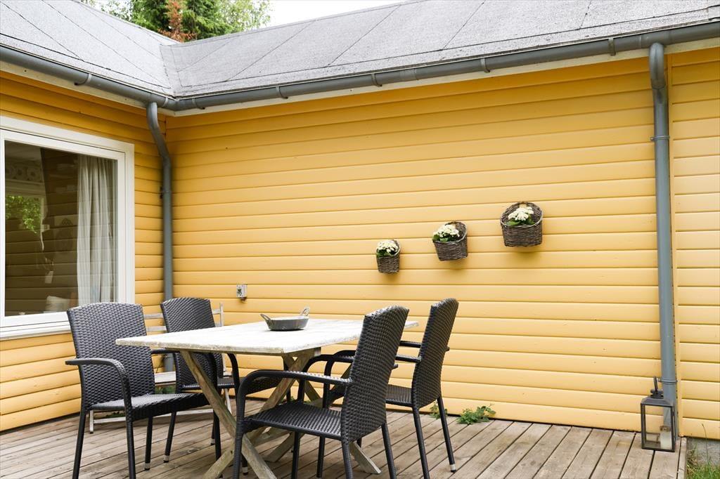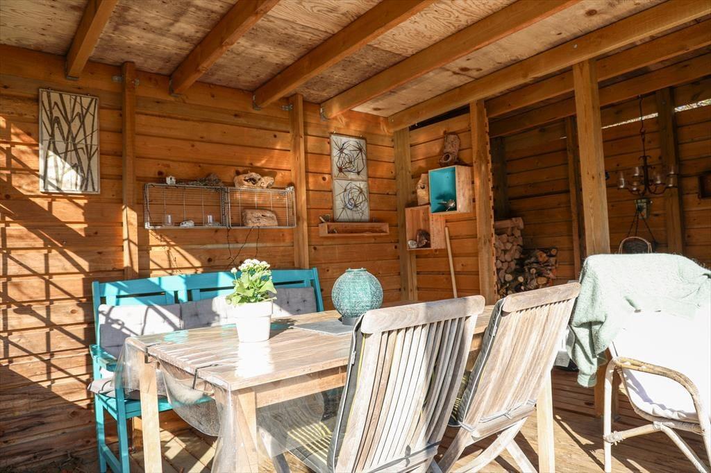 Sobald die Sonne warm vom Himmel lacht, wird es dich und deine Familie hinaus auf das Grundstück ziehen. Du darfst dich auf zwei schöne, ganz gemütliche überdachte Terrassenbereiche freuen, auf denen du mit kühlem Schatten verwöhnt wirst. Alternativ gönnst du dir auf einem der Liegestühle ein ausgedehntes Sonnenbad unter offenem Himmel. Deine Kinder werden derweil vergnügt auf der Rasenfläche umhertollen und sich mit euren mitgebrachten Outdoor-Spielen die Zeit vertreiben. Lange, erlebnisreiche Urlaubstage solltet ihr am besten mit einem Abendessen im Licht der untergehenden Sonne ausklingen lassen.