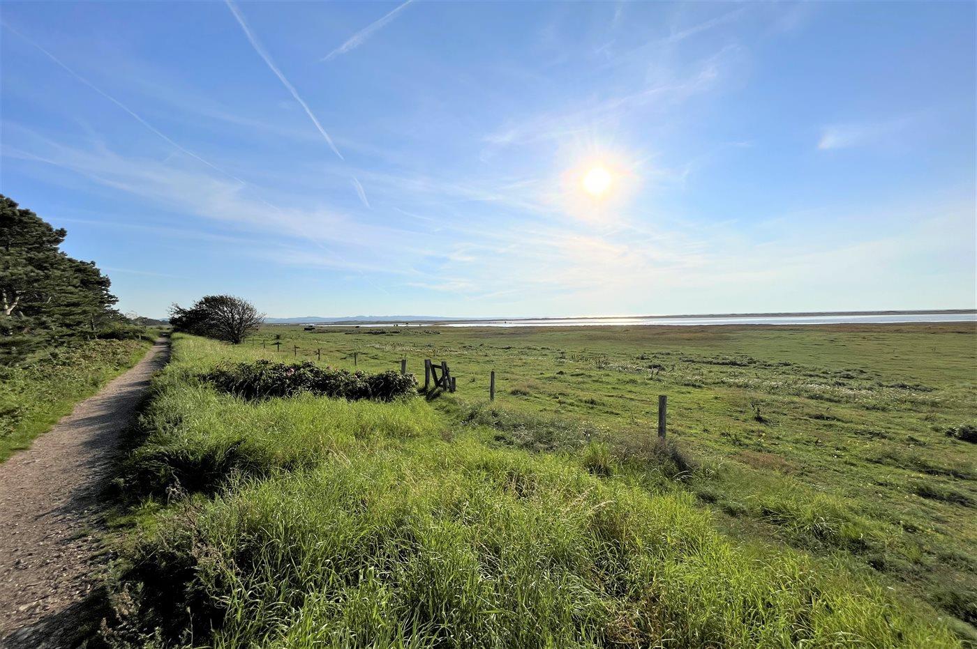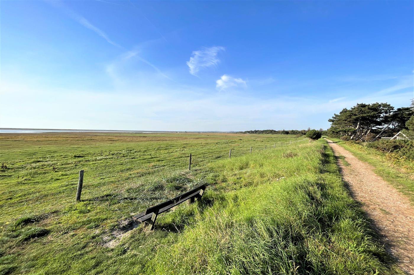 Das Ferienhaus liegt auf einem Naturgrundstück, auf dem ein Teil des Grases wachsen darf, und es gibt Bereiche mit Heidekraut.